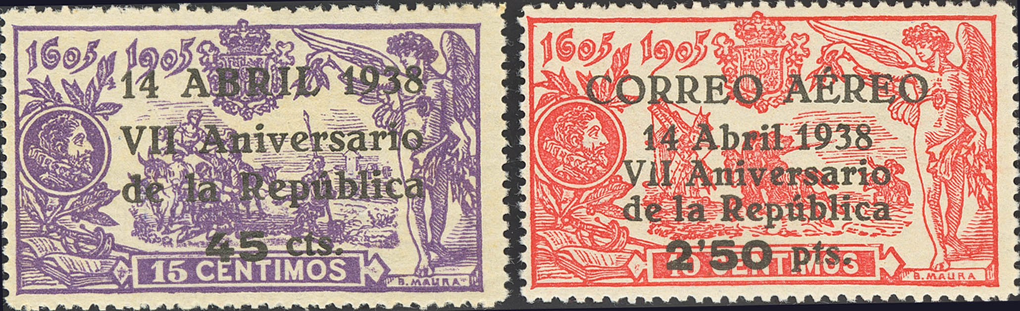 ★★ 755, 756. 1938. 45 cts sobre 15 cts violeta y 2´50 pts sobre 10 cts rojo. MAGNIFICOS. Edifil 2024: 170 Euros
