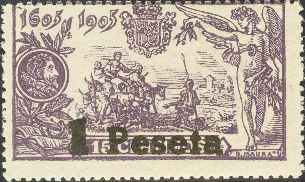 ★★ 762hpa. 1938. 1 pts sobre 15 cts violeta. (NºA033855). Sobrecarga 1 PESETA, omitido el resto de la sobrecarga. MAGNIFICO Y RARO. Edifil 2020: 235 Euros