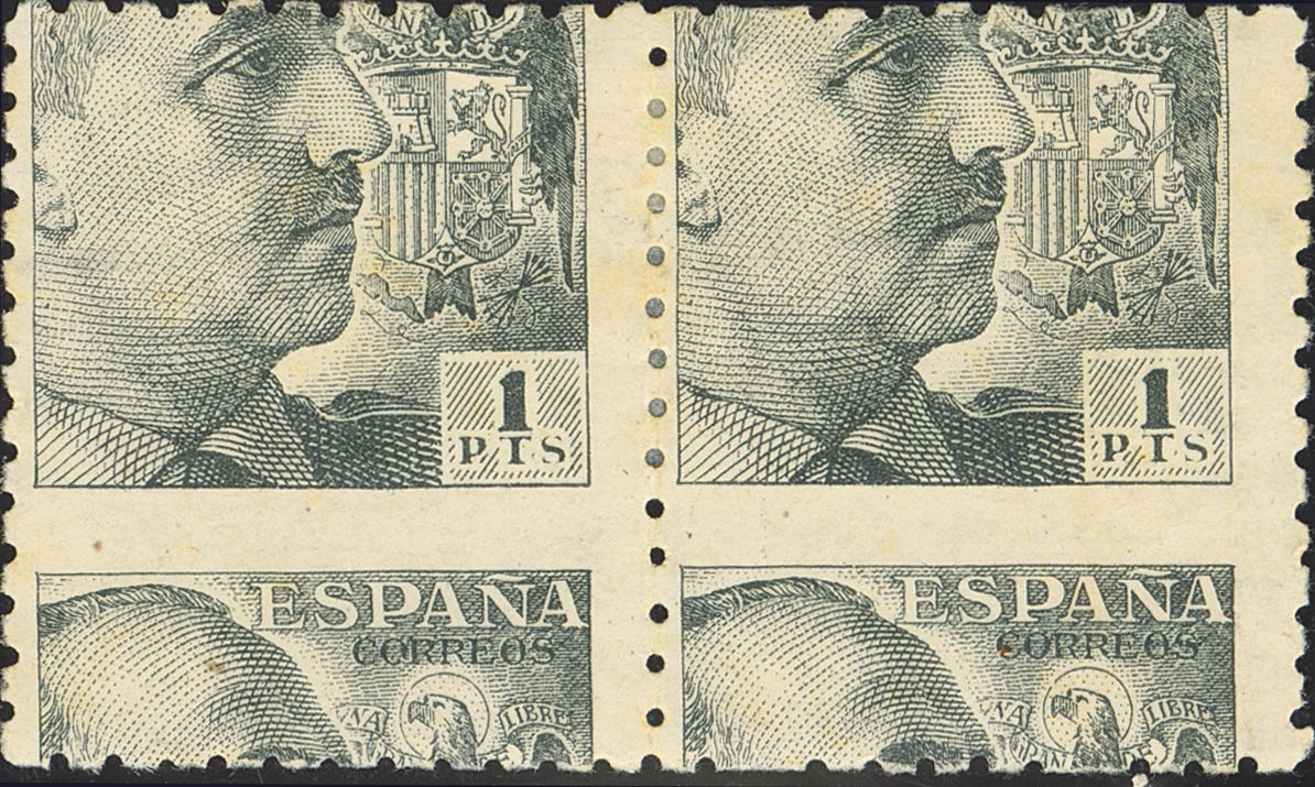 ★ 931dh(2). 1939. 1 pts gris negro, pareja. DENTADO HORIZONTAL DESPLAZADO. MAGNIFICA. Edifil 2021: 250 Euros