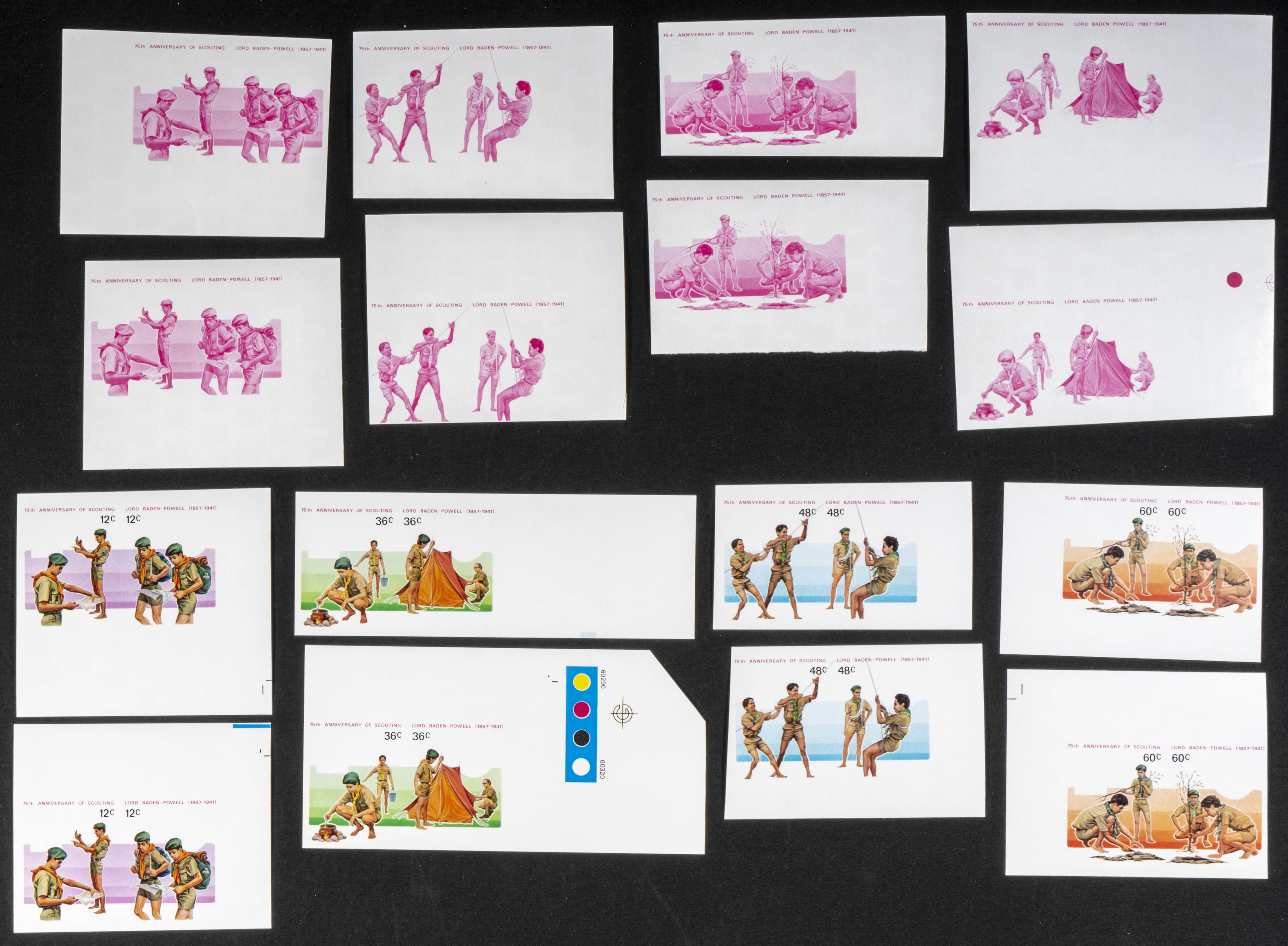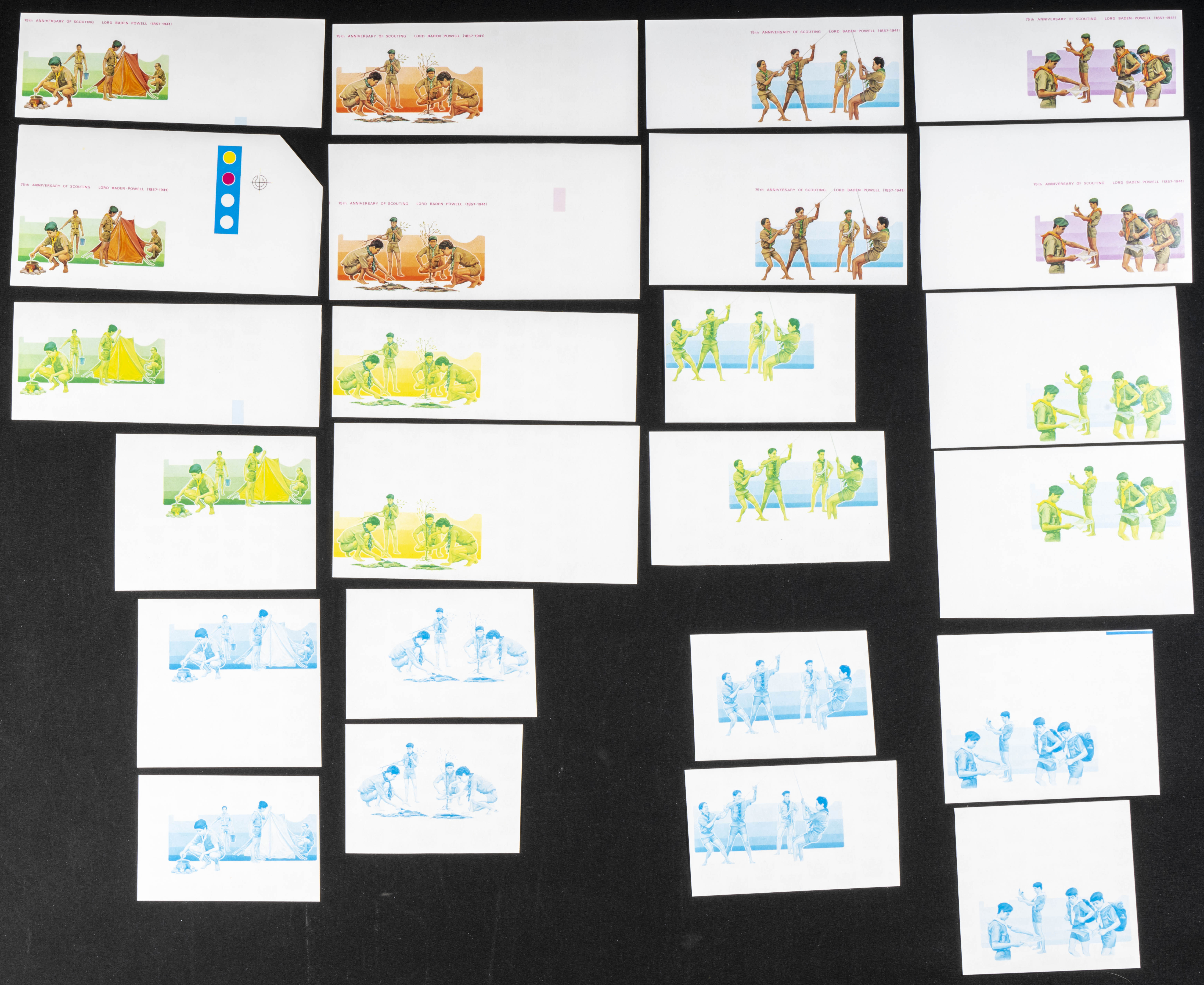 ★★Yvert 694/01. 1983. Scouting. Group of progressive plate proofs of the set. TO EXAM.