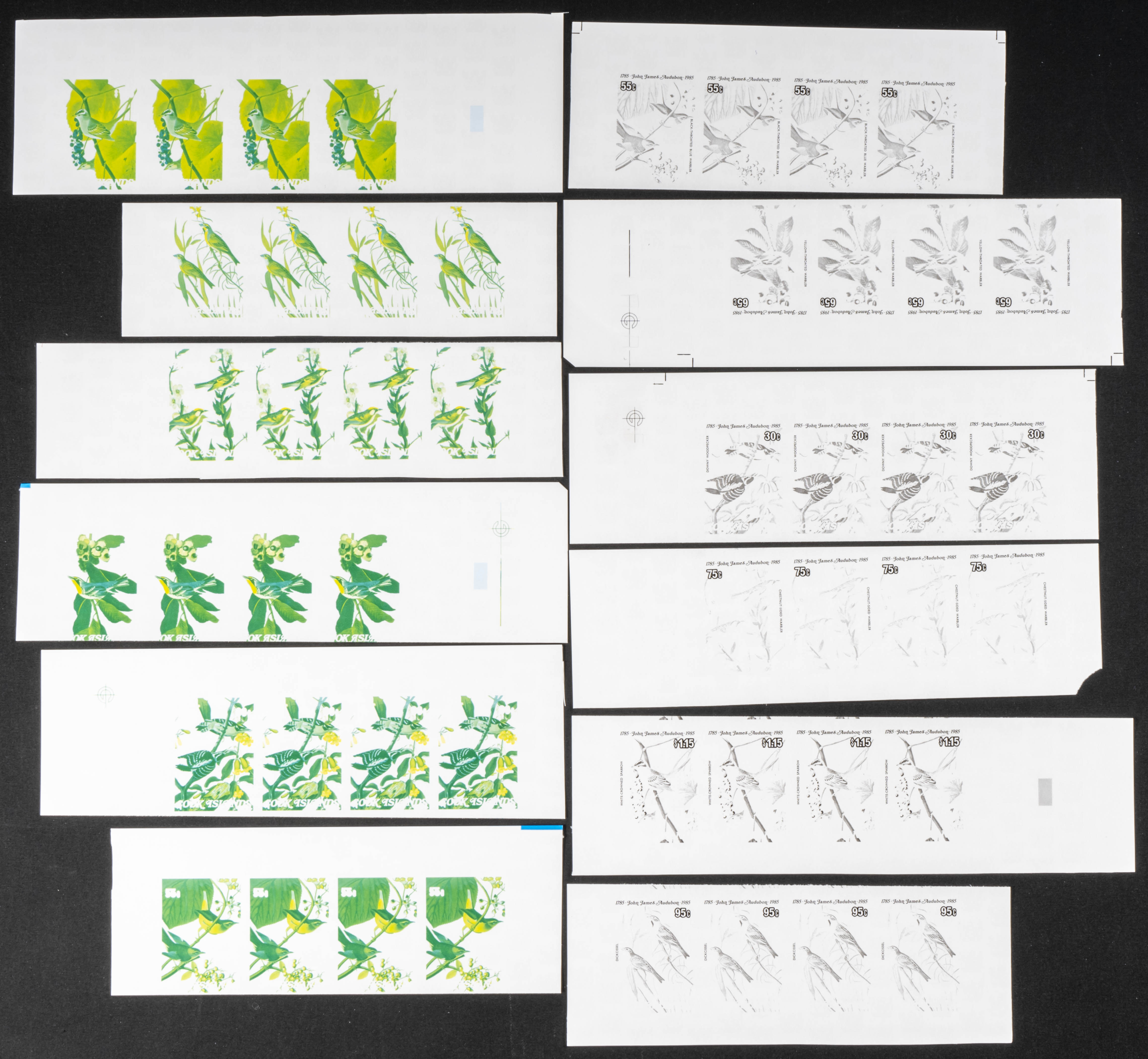 ★★Yvert 815/20. 1985. J.J. Audubon. Group of progressive plate proofs of the set. TO EXAM.