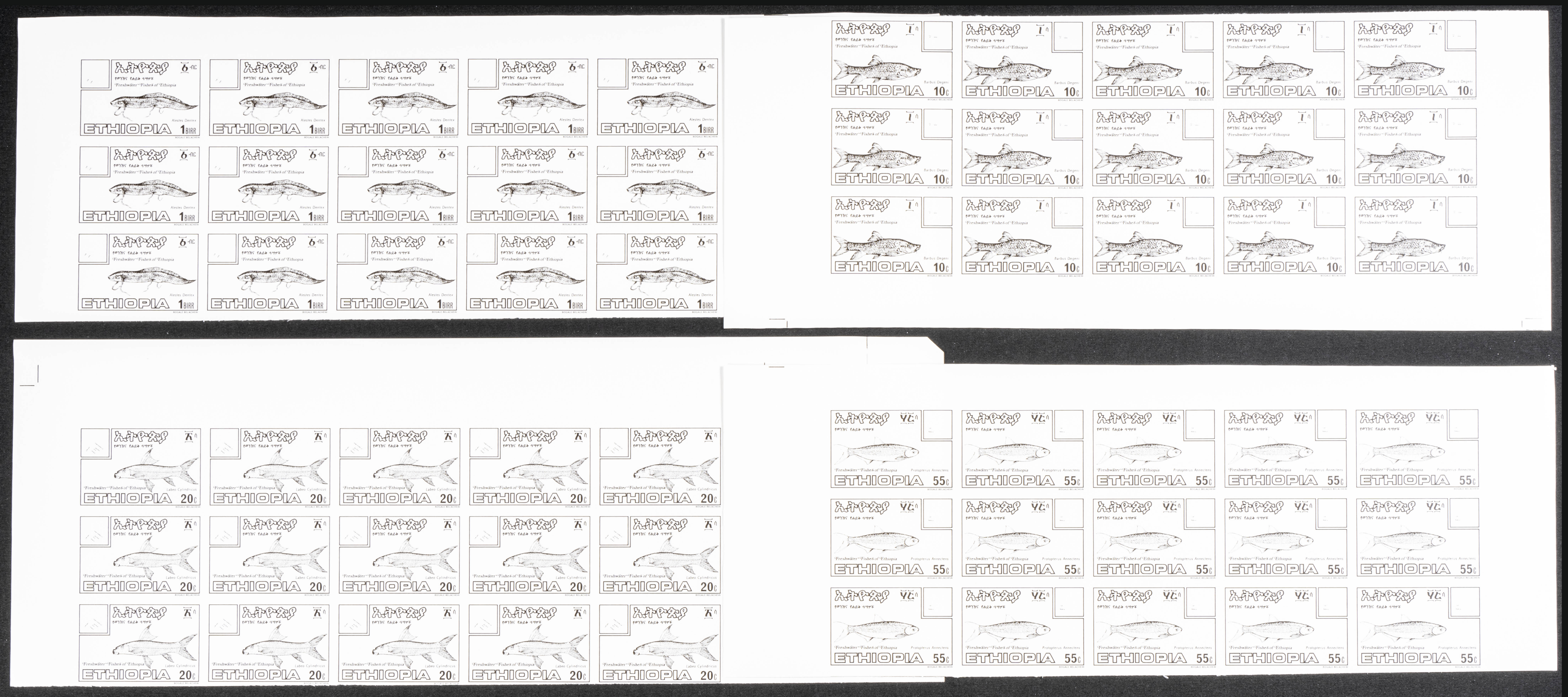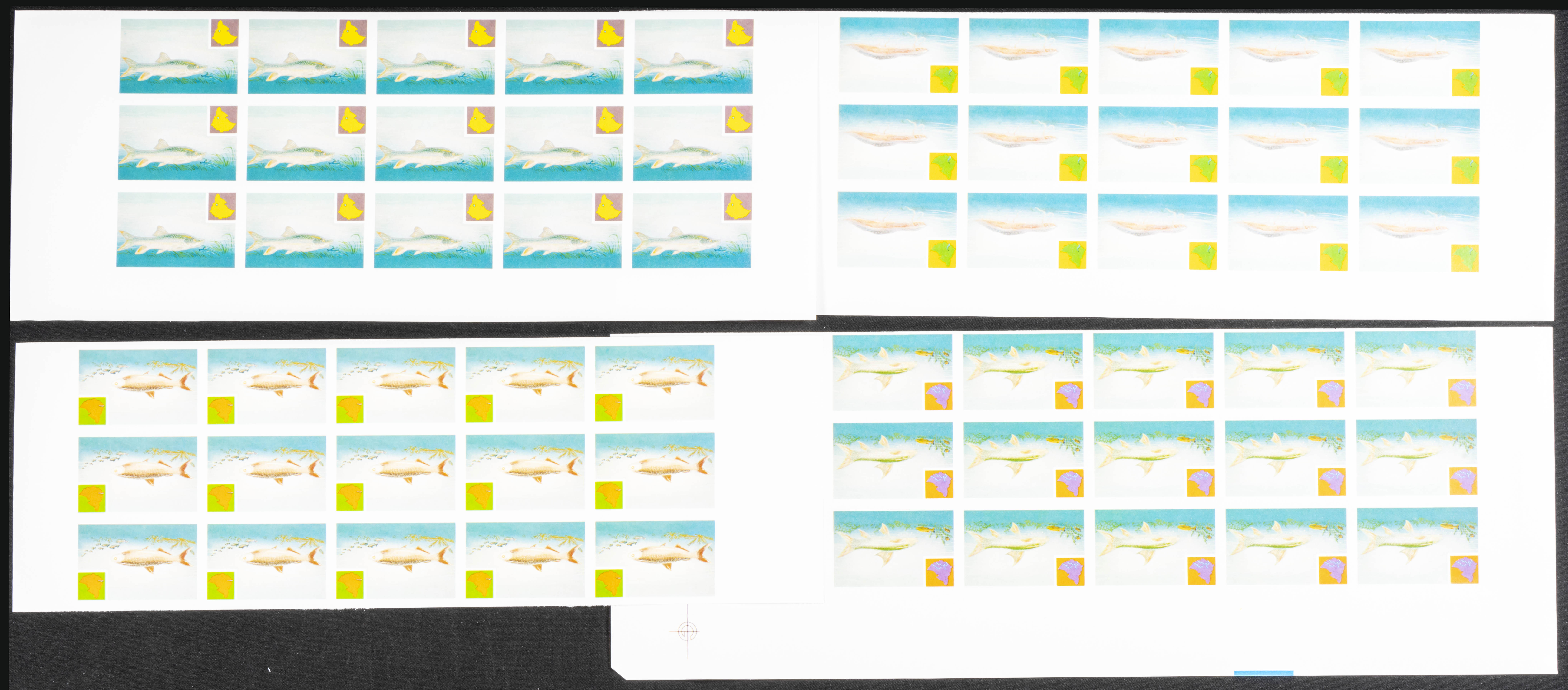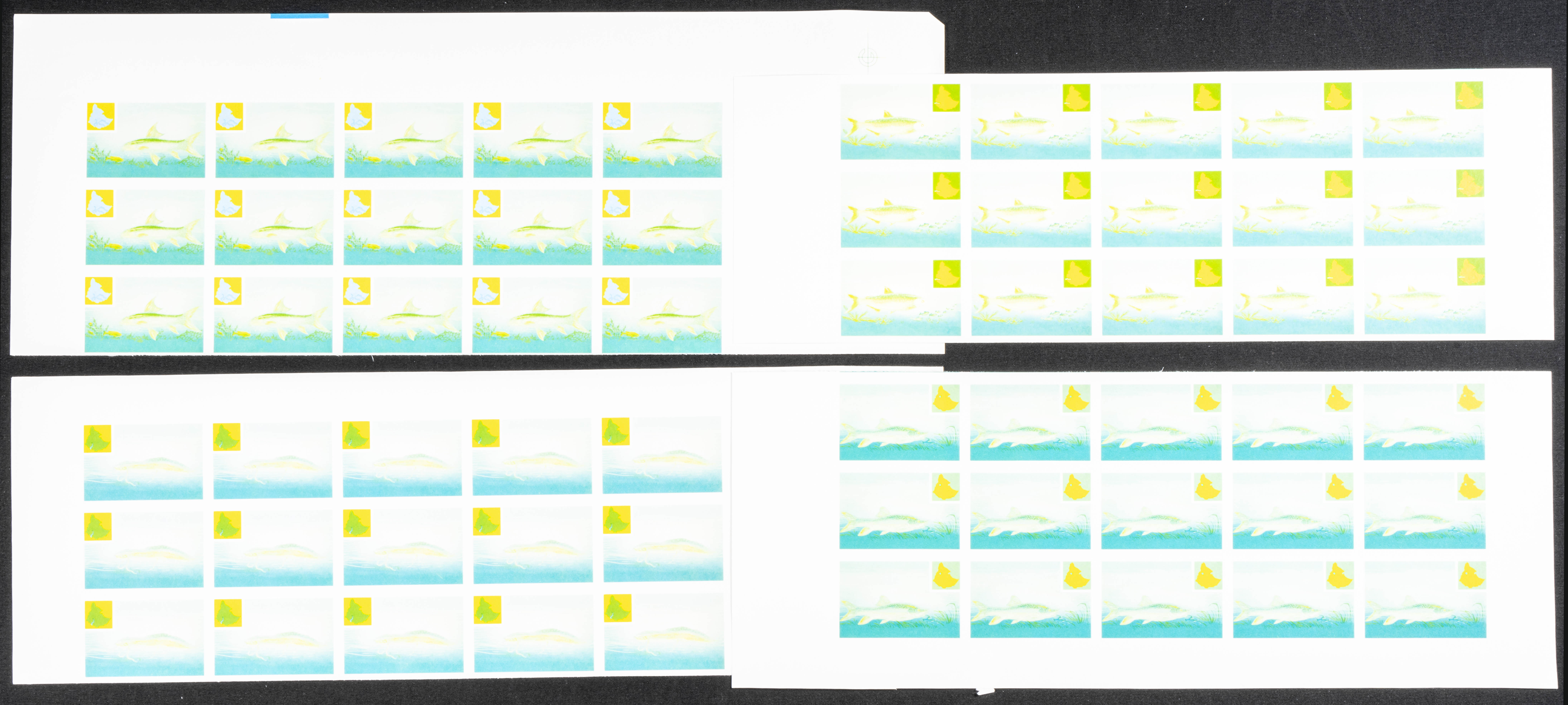 ★★Yvert 1123/26. 1985. Fresh water fish. Group of progressive plate proofs of the set. TO EXAM.