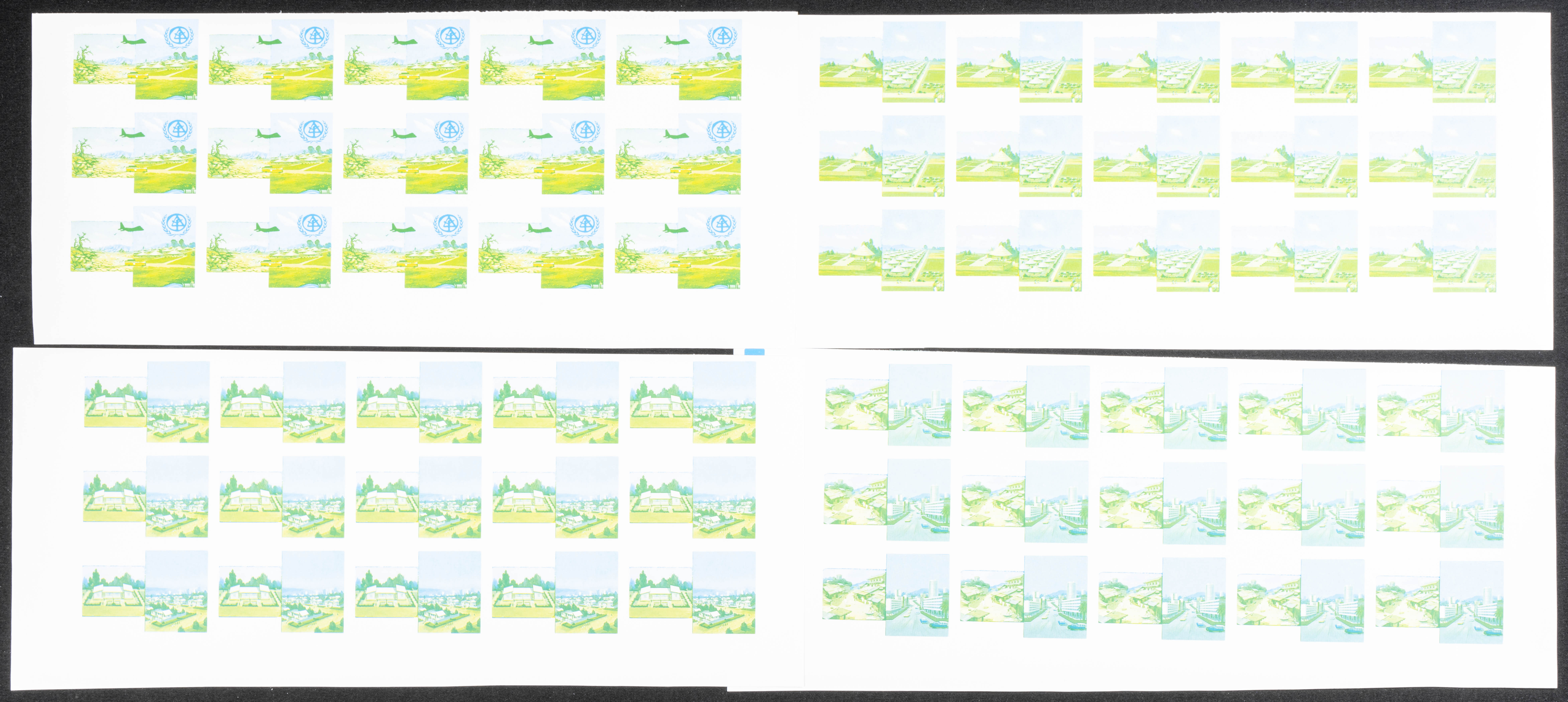 ★★Yvert 1200/03. 1988. Habitation year. Group of progressive plate proofs of the set. TO EXAM.