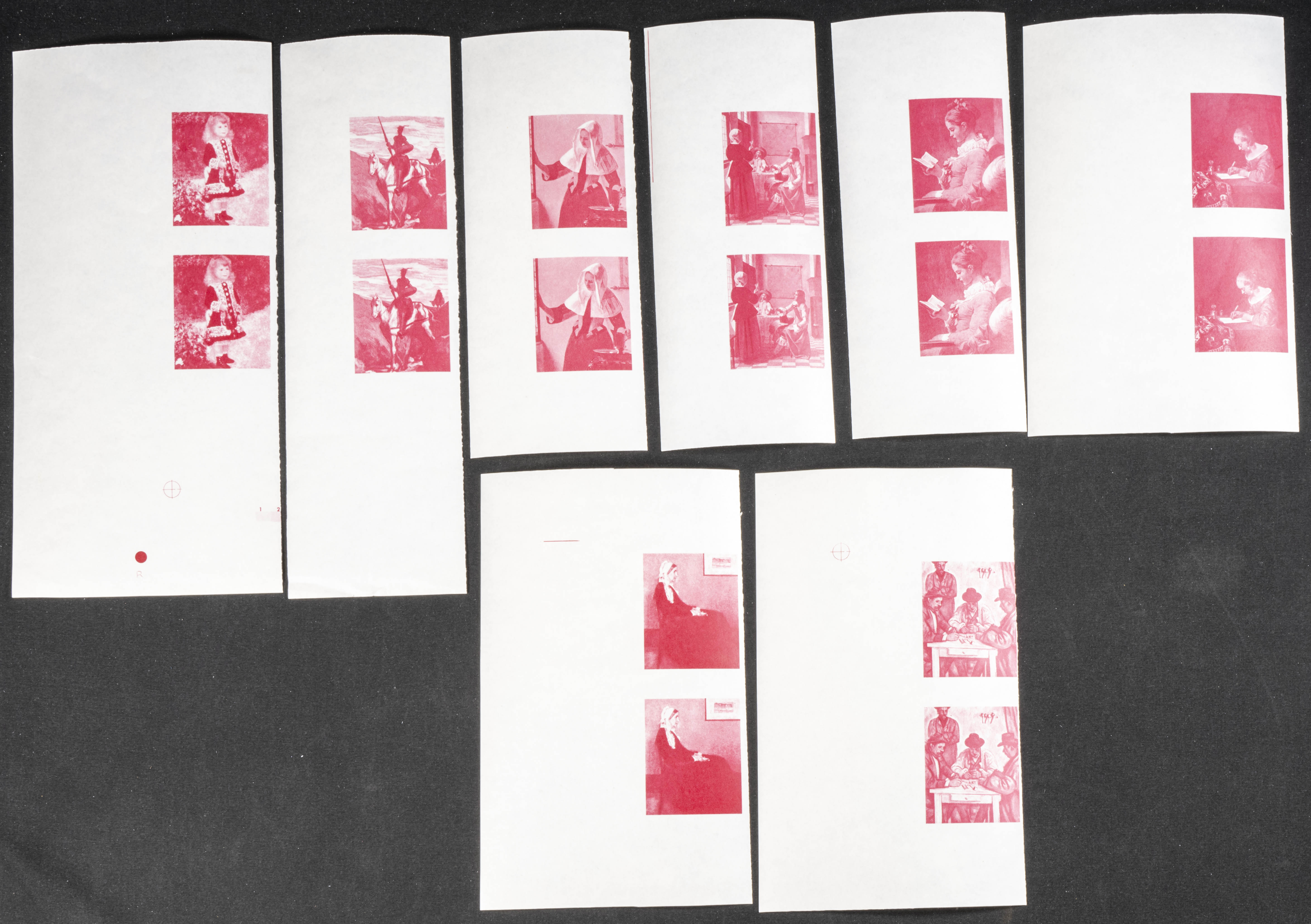 ★★1967. Paintings. Group of progressive plate proofs of the set. (Michel: 198/05). TO EXAM.