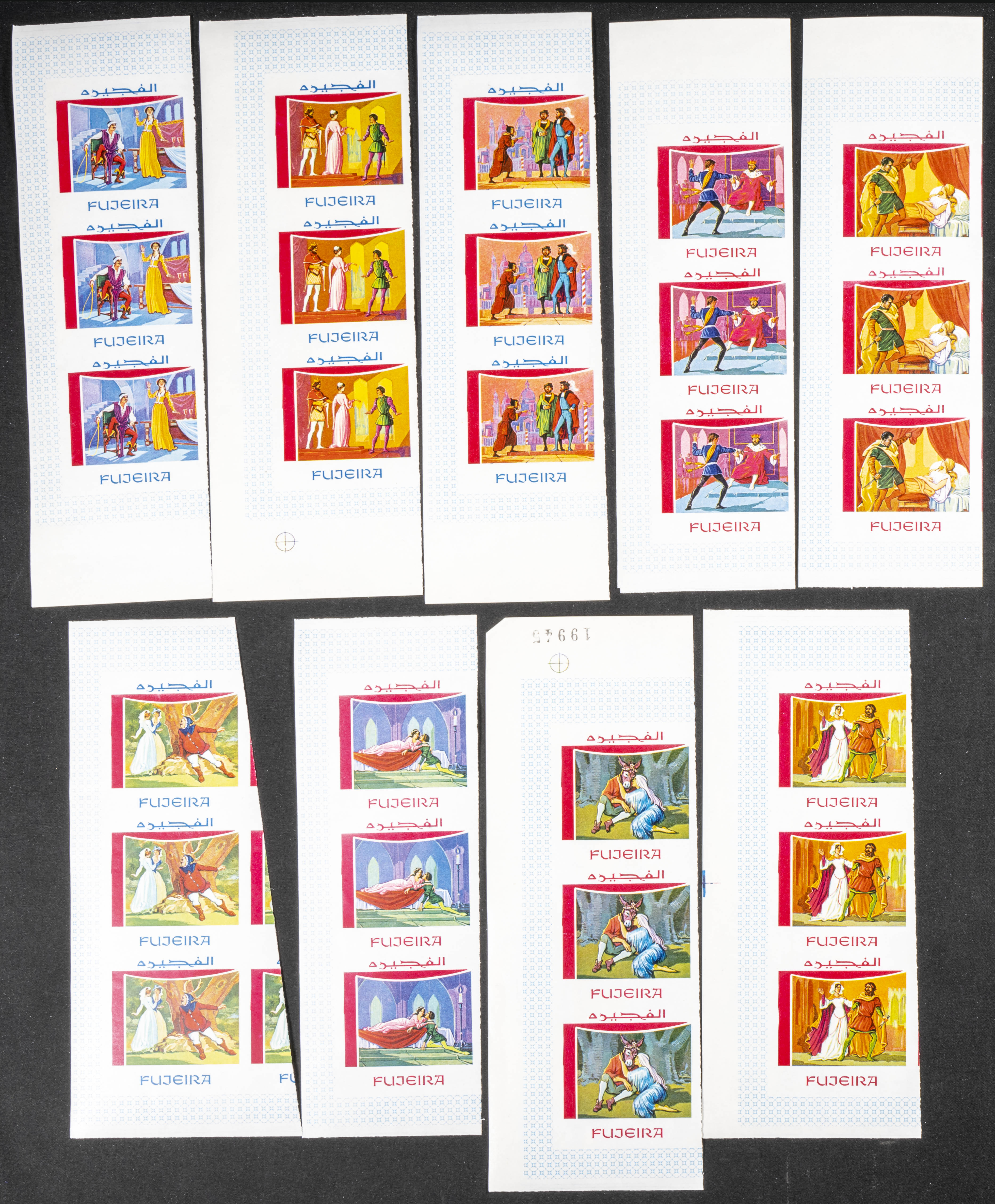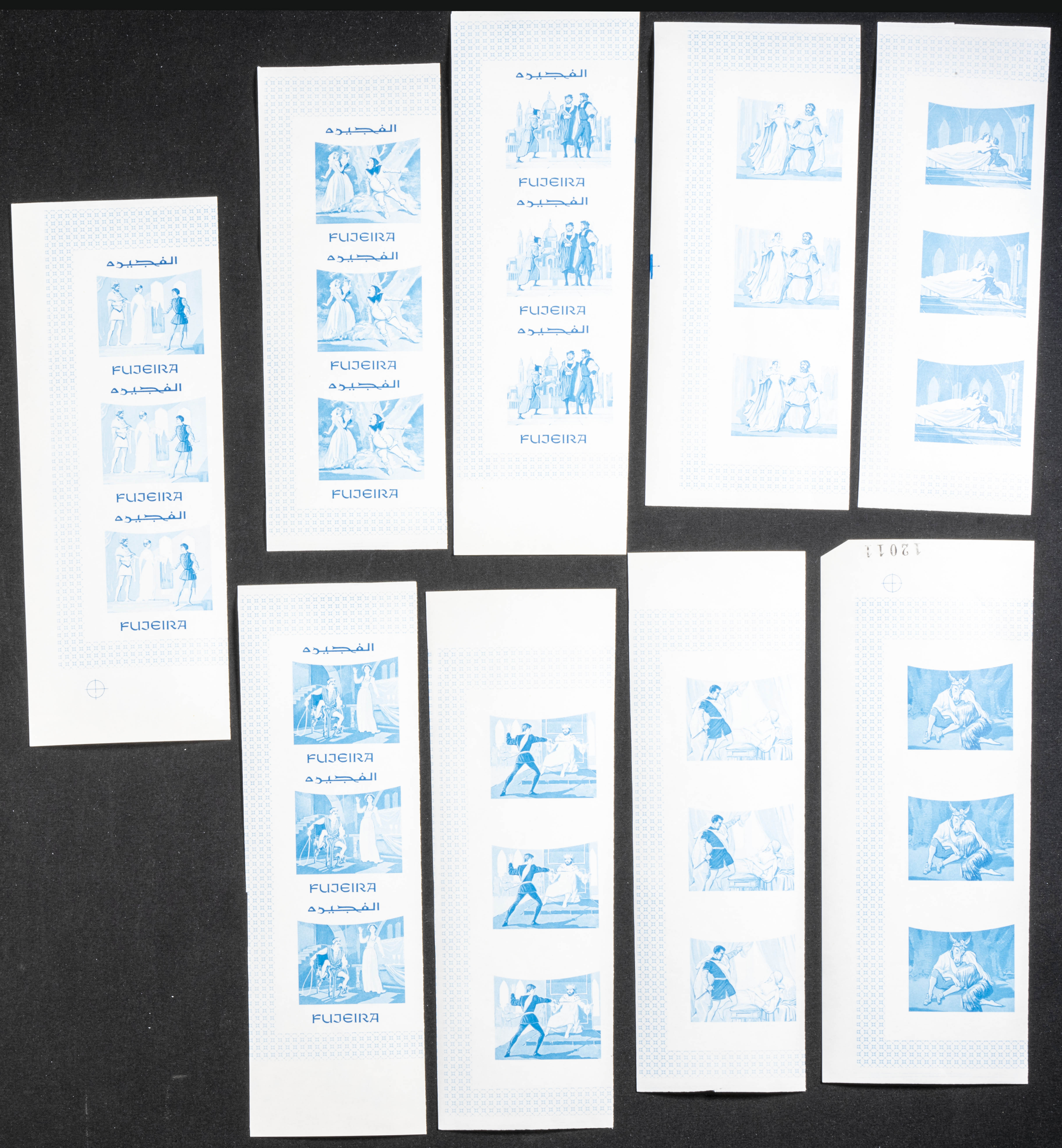 ★★1969. Shakespeare plays. Group of progressive plate proofs of the set. (Michel: 311/19). TO EXAM.