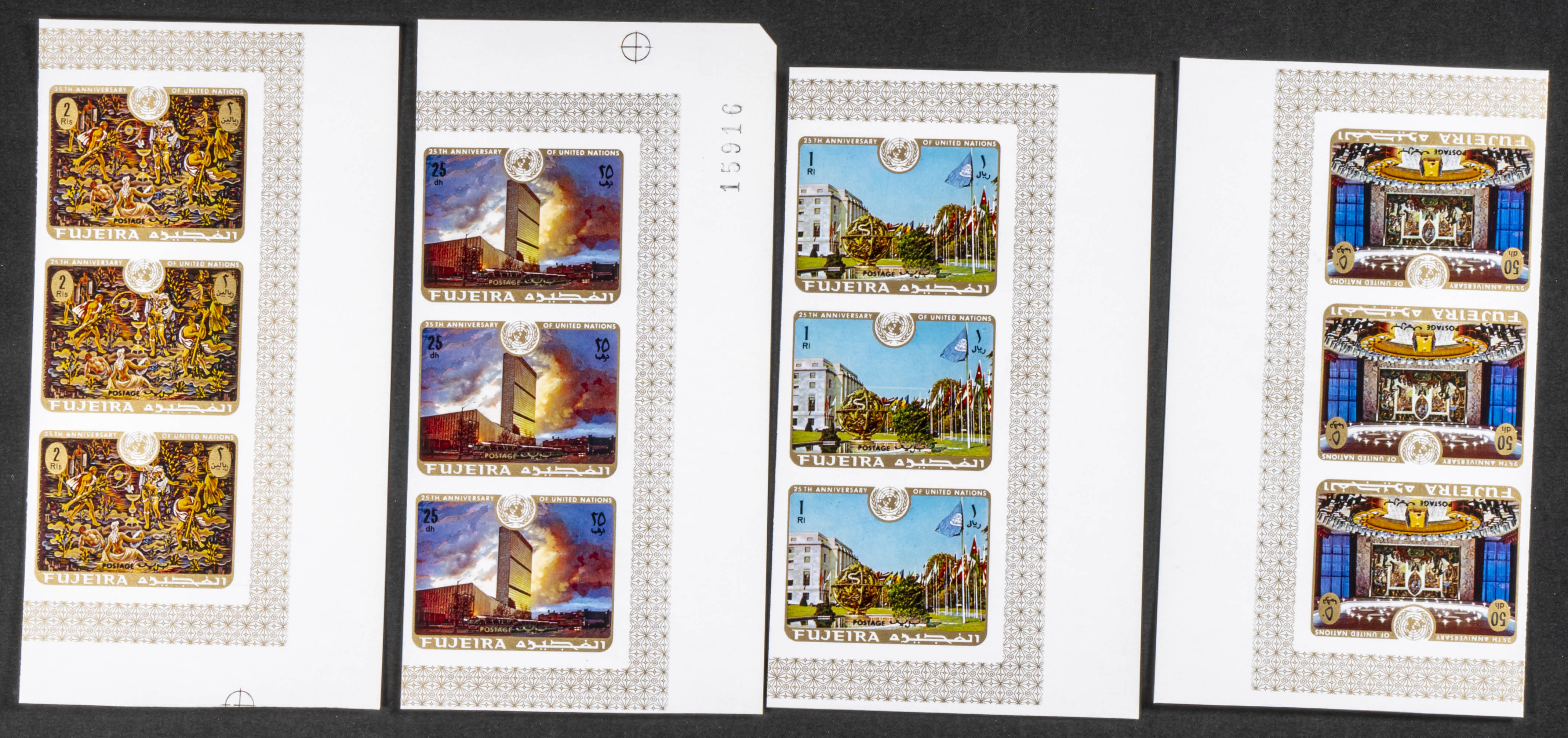 ★★1970. 25 years UNO. Group of IMPERFORATED sets. (Michel: 505/08). TO EXAM.