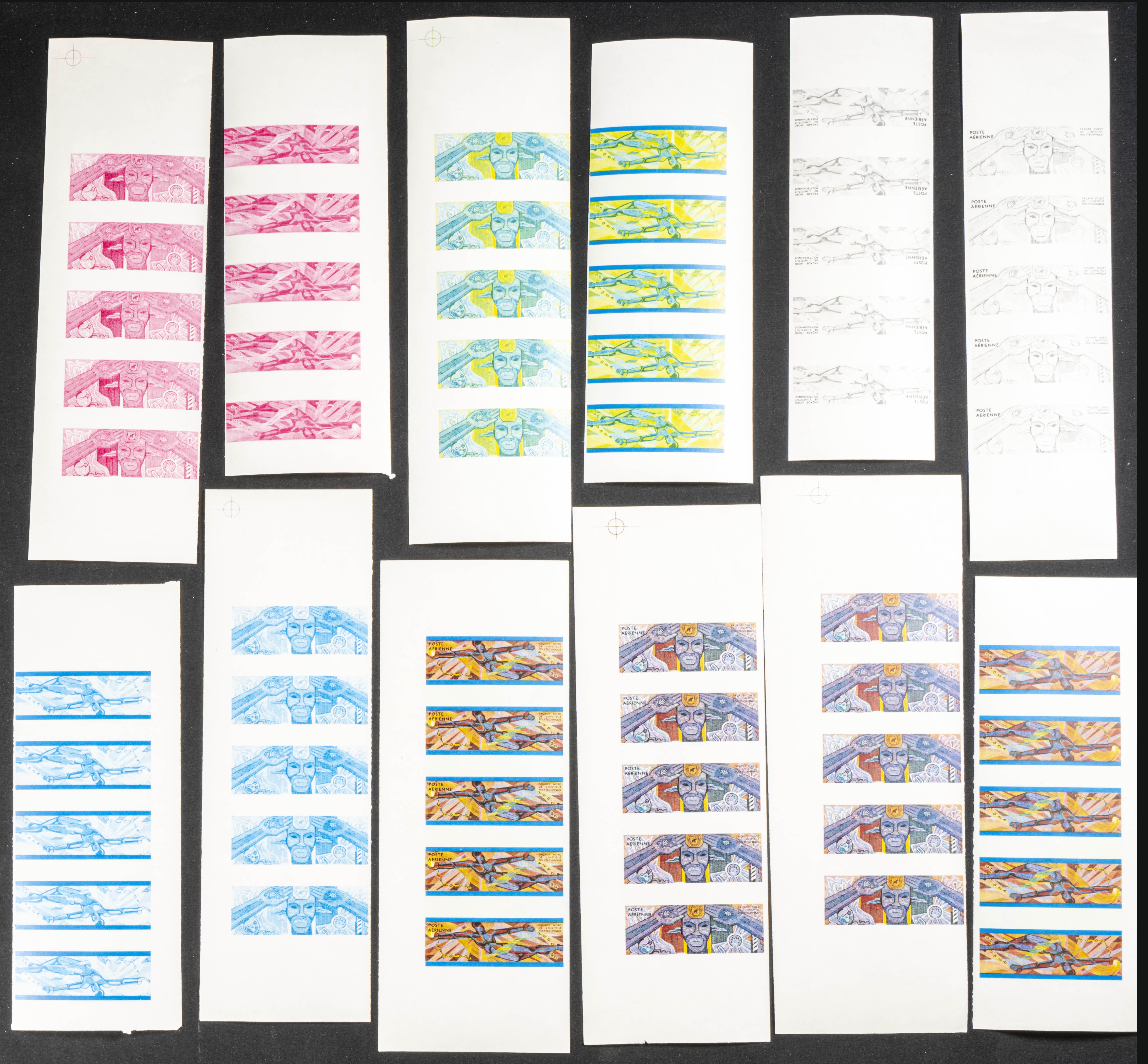 ★★Yvert A57/58. 1966. UNESCO. Group of progressive plate proofs of the set. TO EXAM.