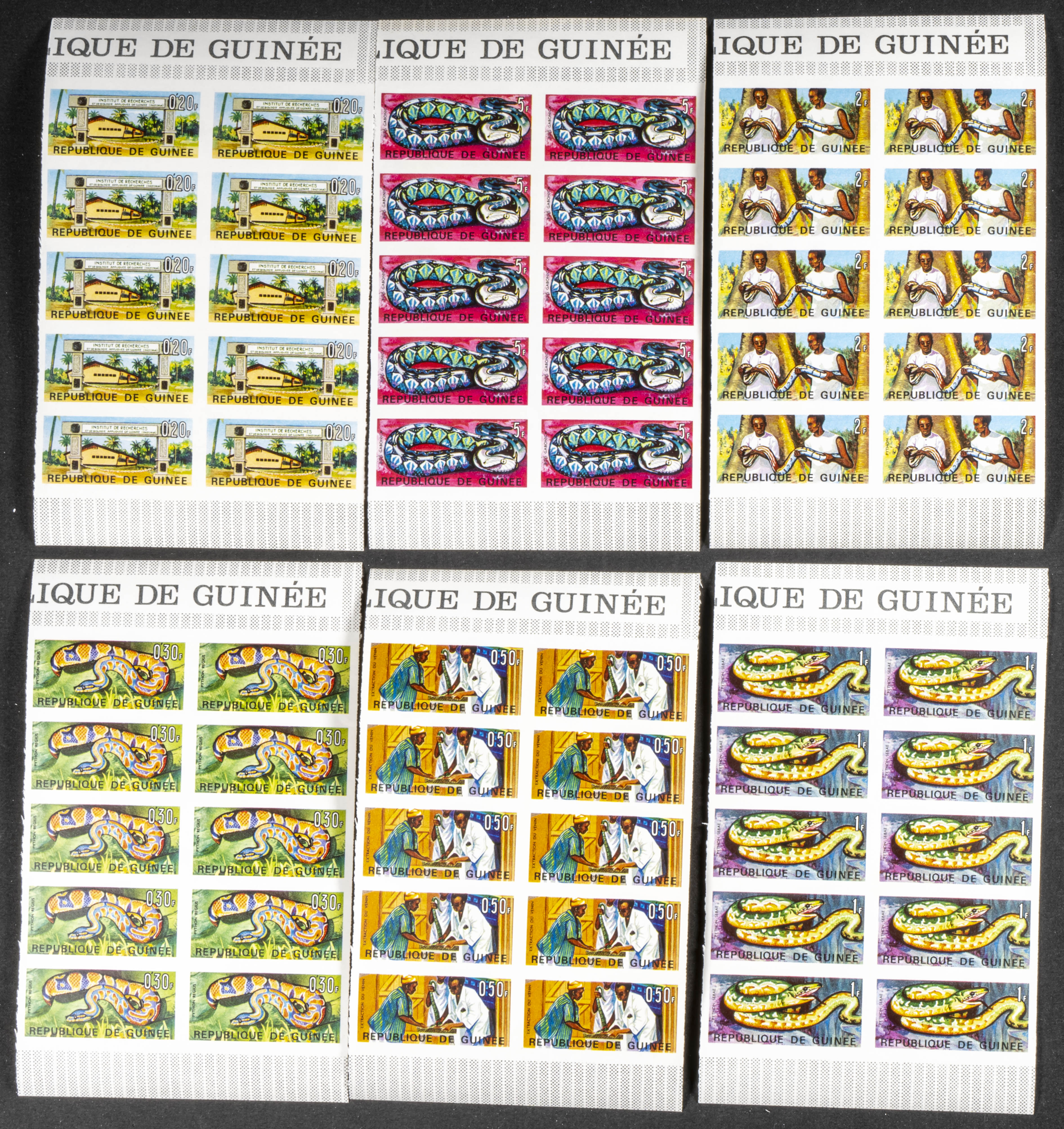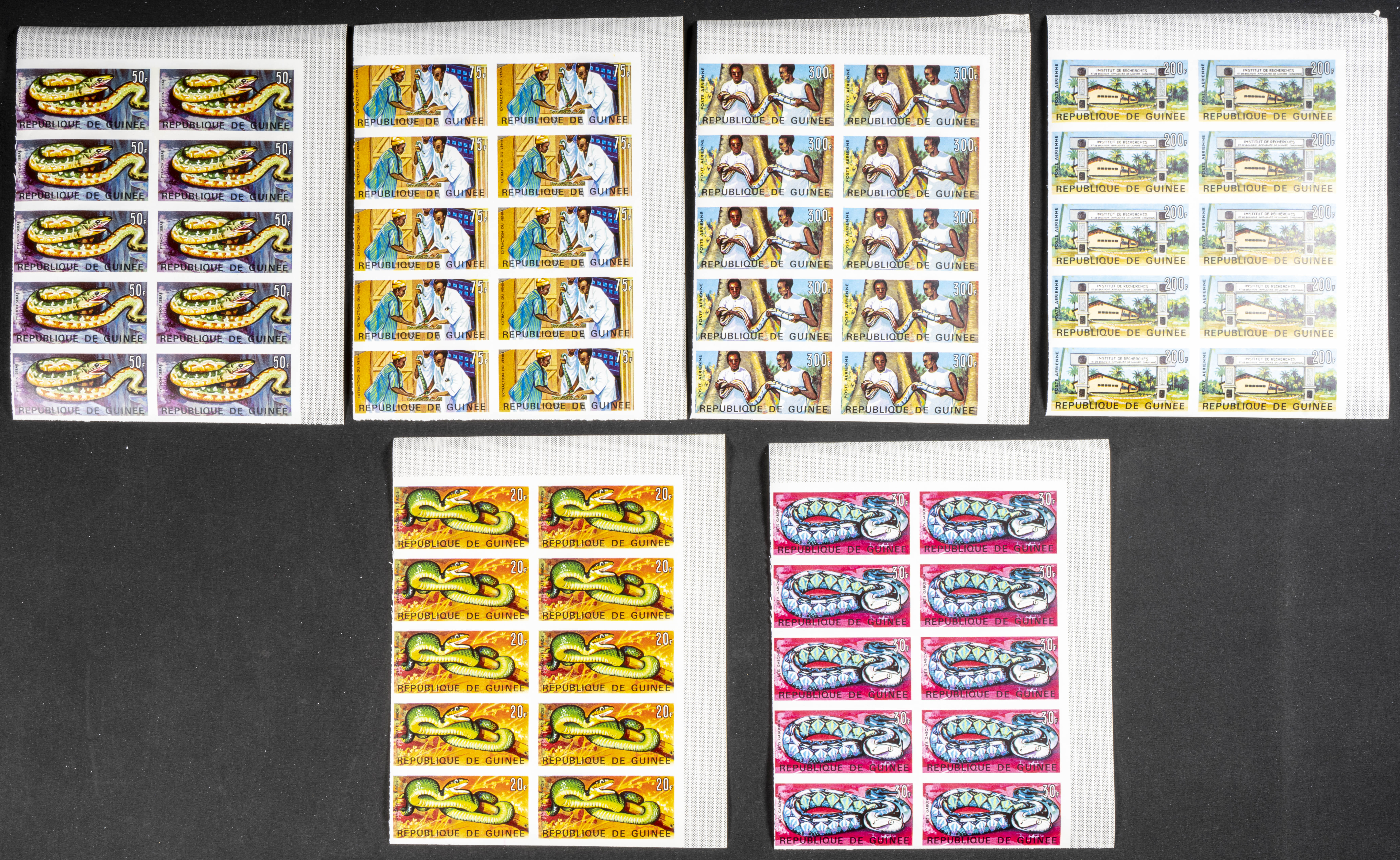 ★★Yvert 316/25. 1967. Snake research. Group of IMPERFORATED sets. TO EXAM.