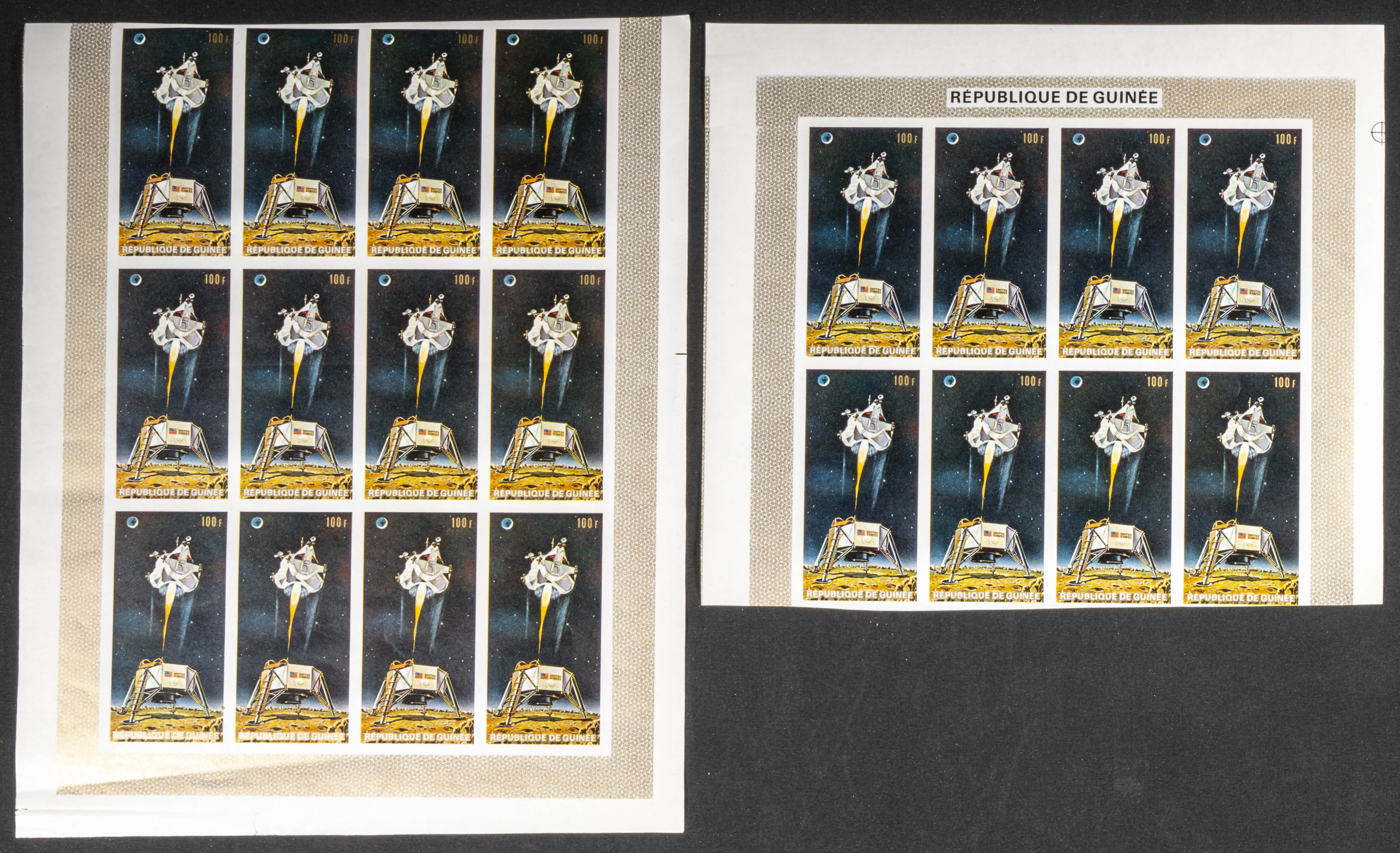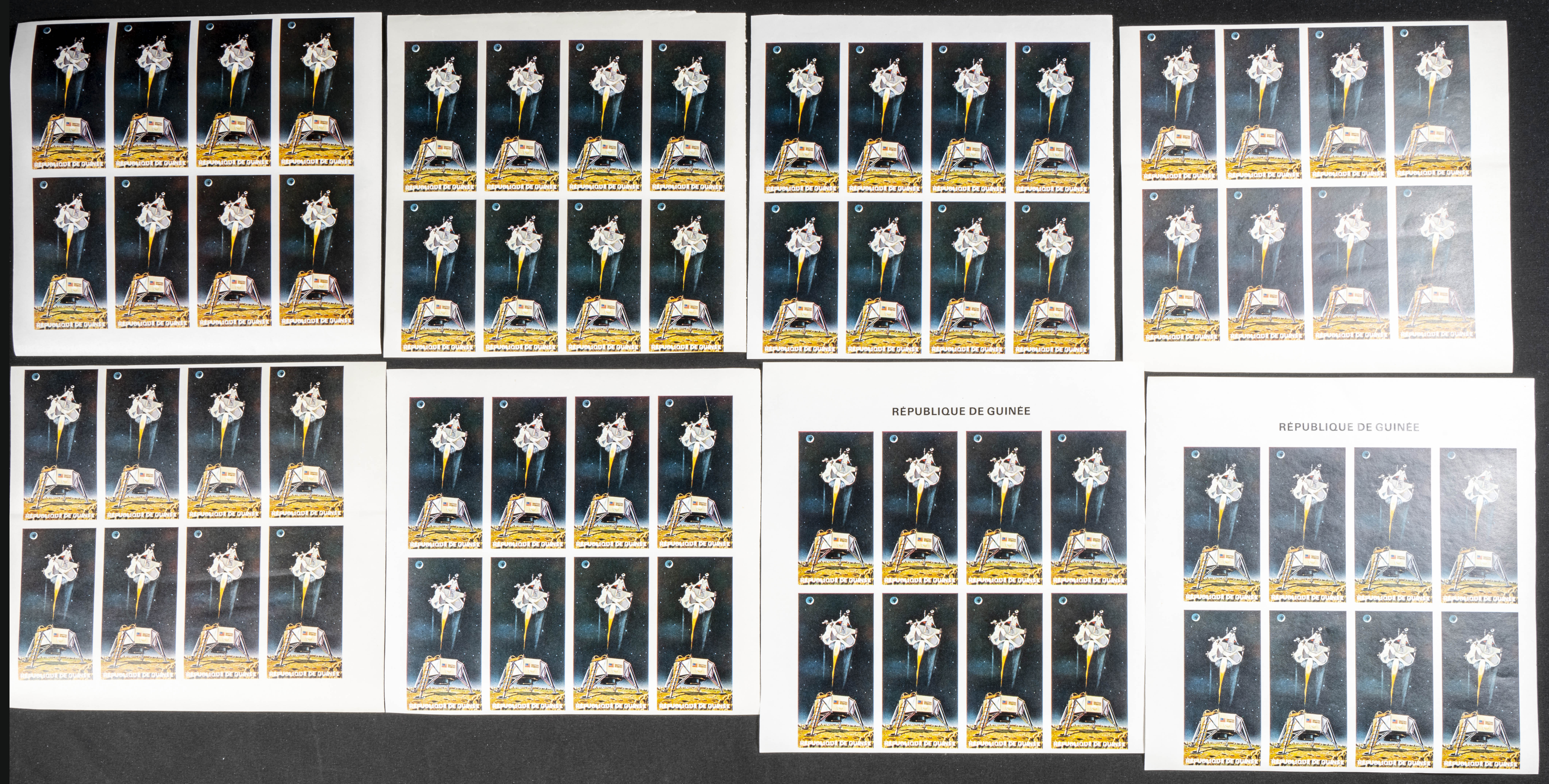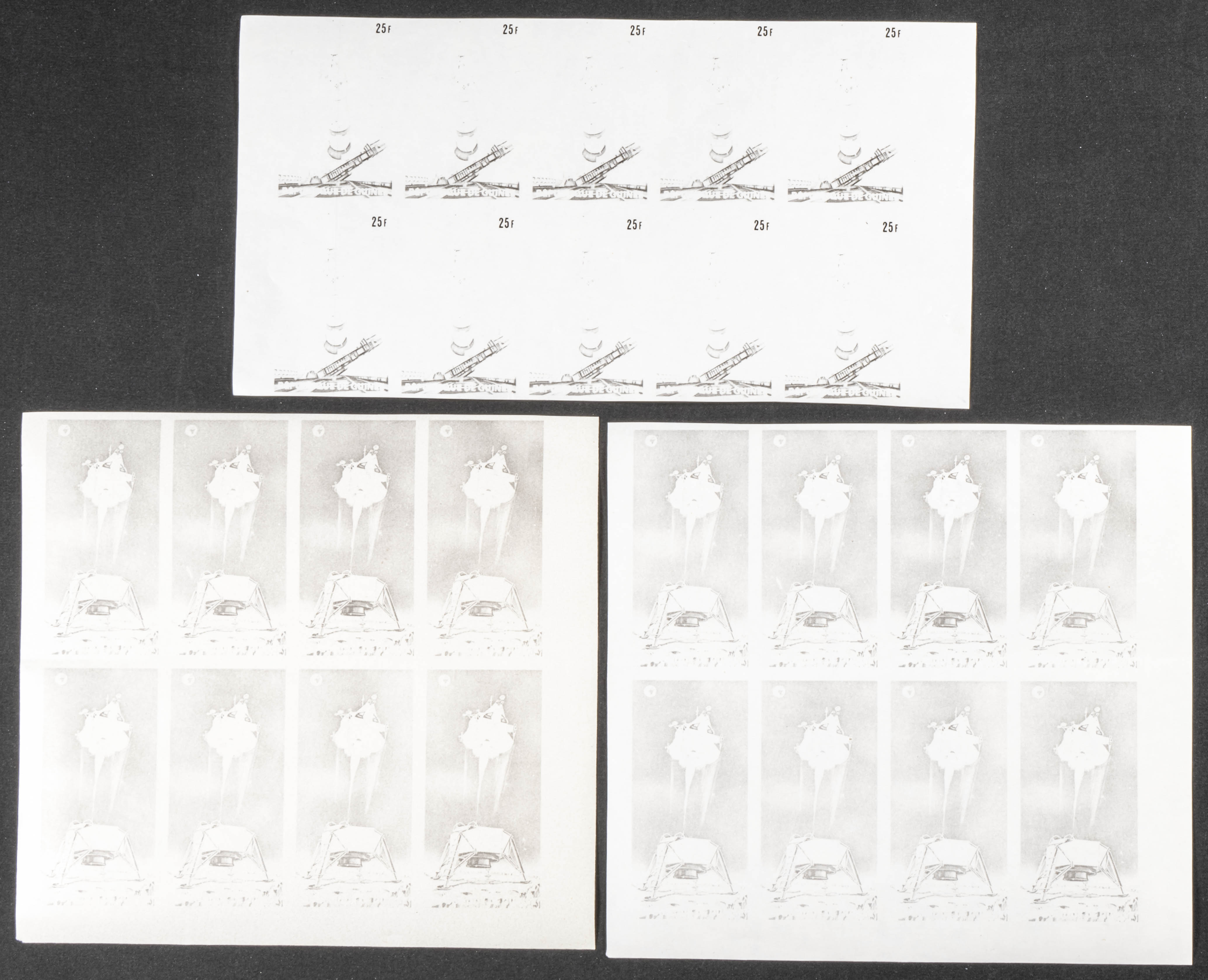 ★★Yvert 392/05. 1969. Moonlanding. Group of progressive plate proofs of the set. TO EXAM.