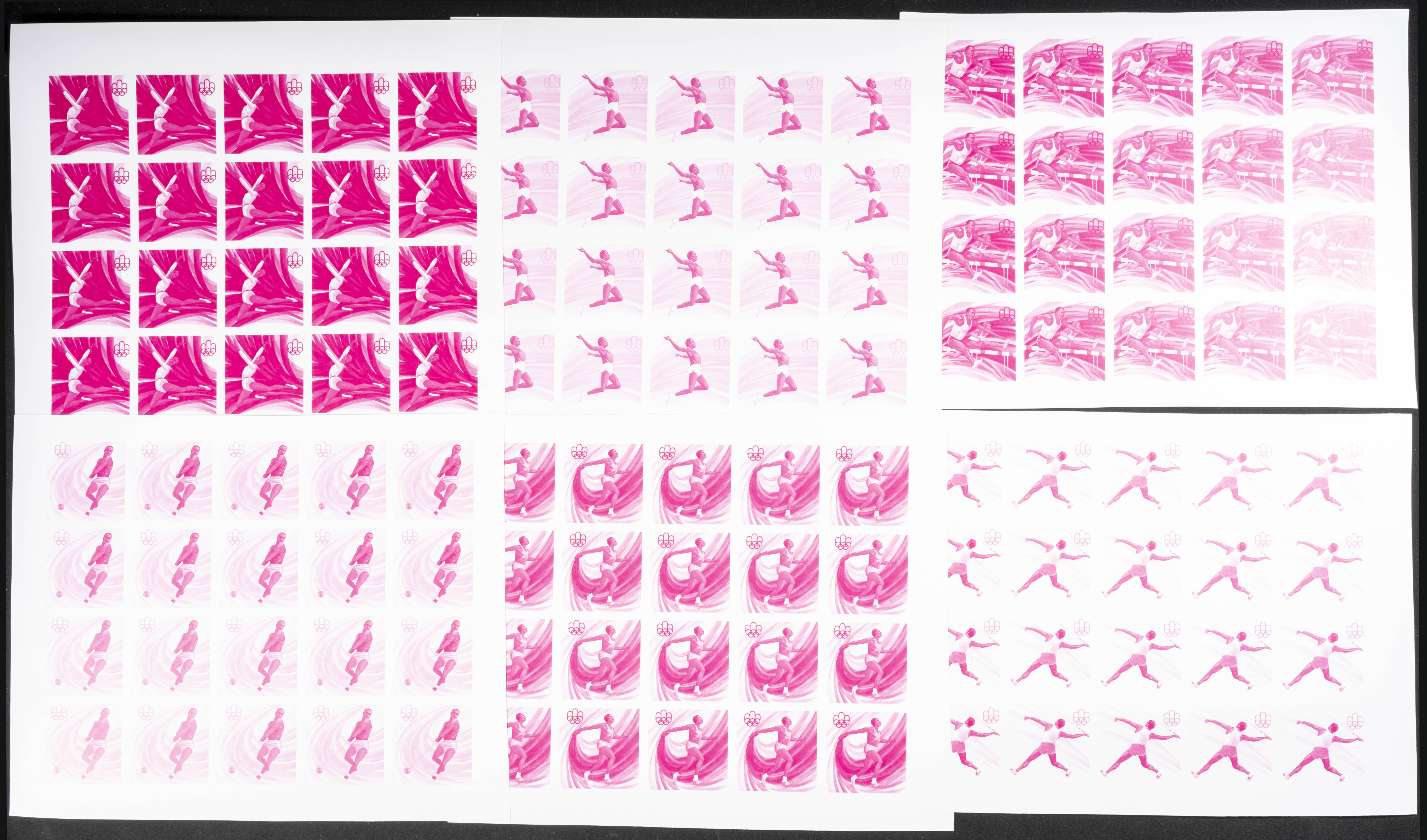 ★★Yvert 560/71. 1976. Olympic games. Group of progressive plate proofs of the set. TO EXAM.