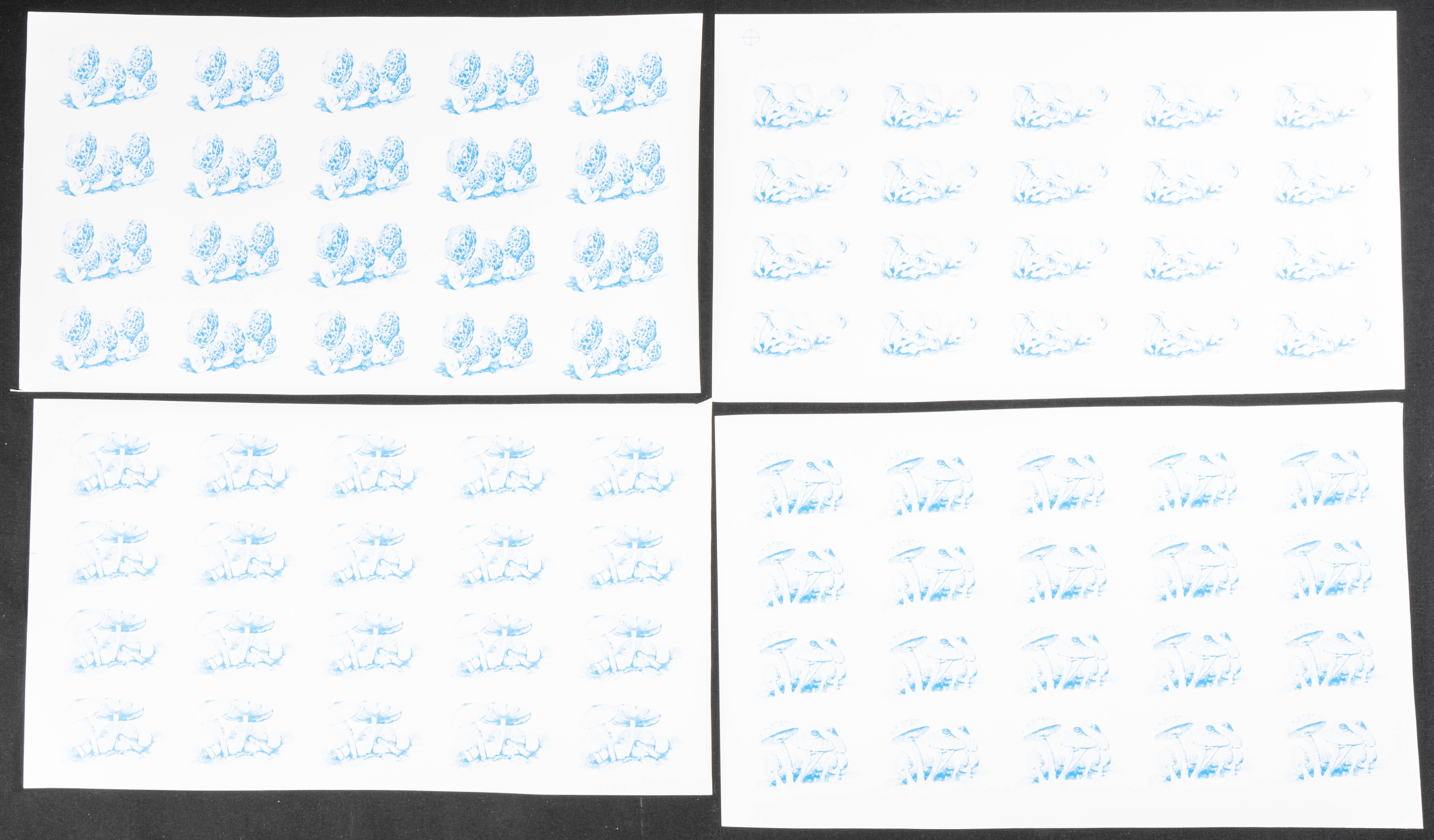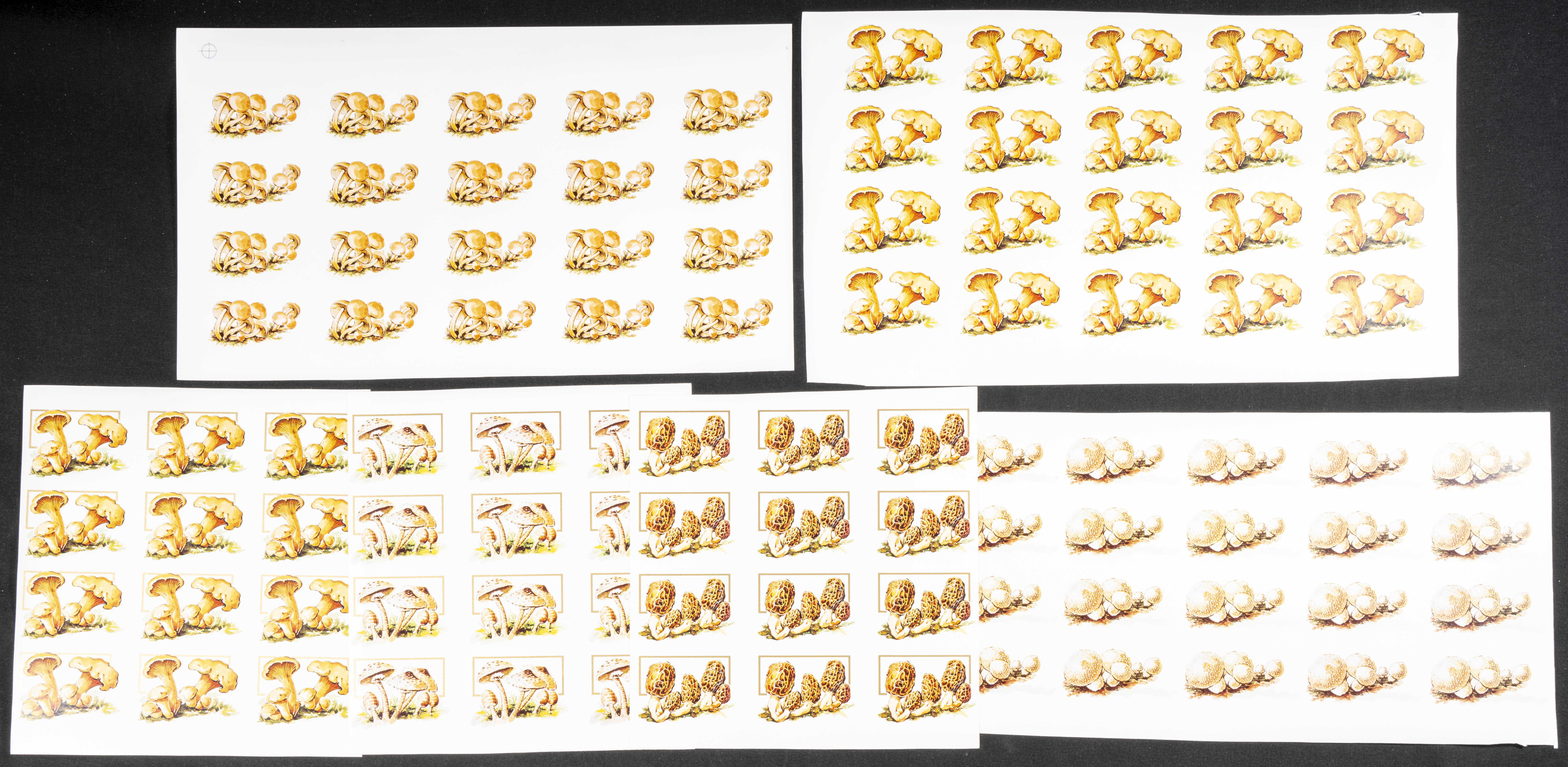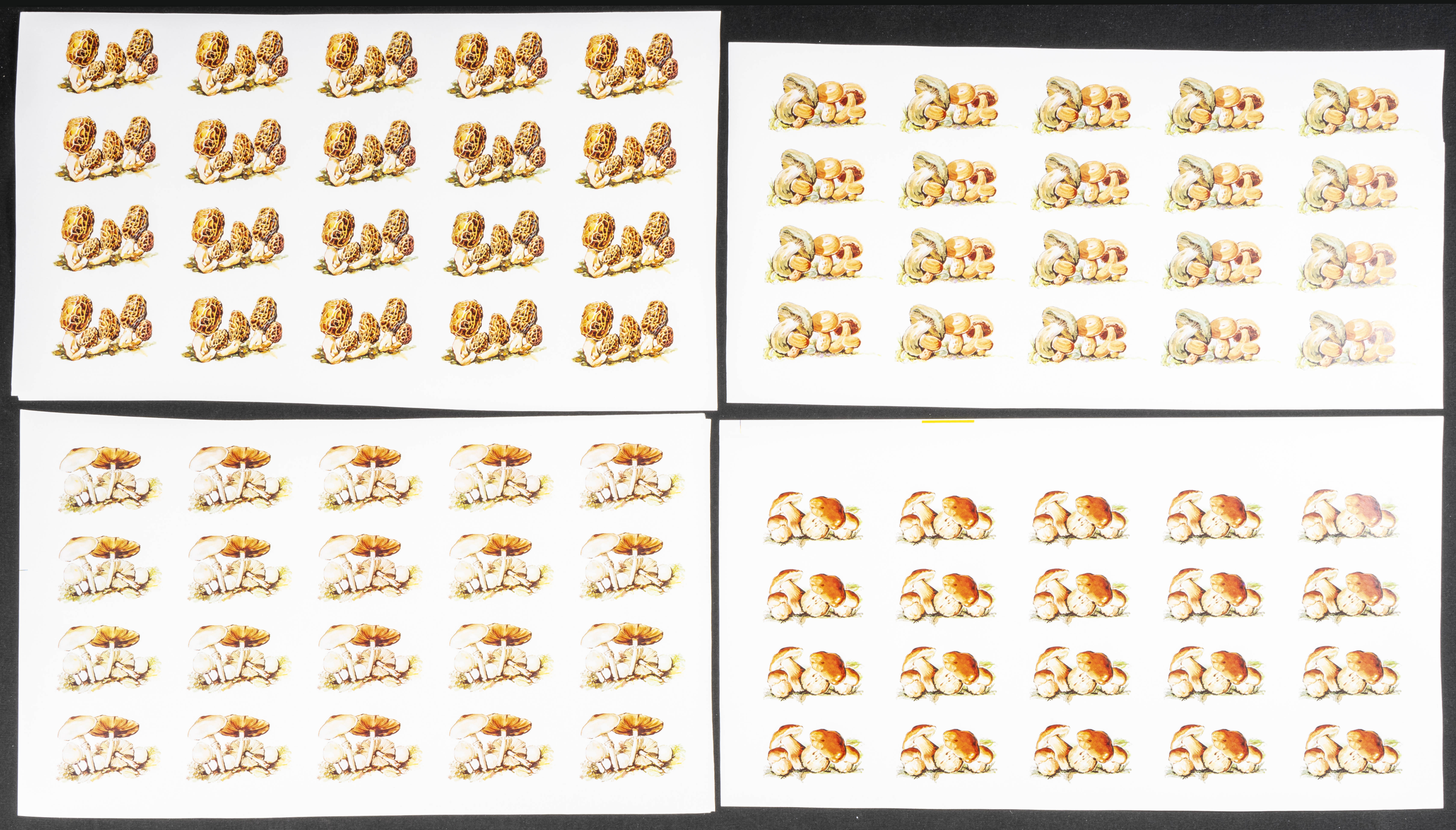 ★★Yvert 576/80. 1977. Mushrooms. Group of progressive plate proofs of the set. TO EXAM.