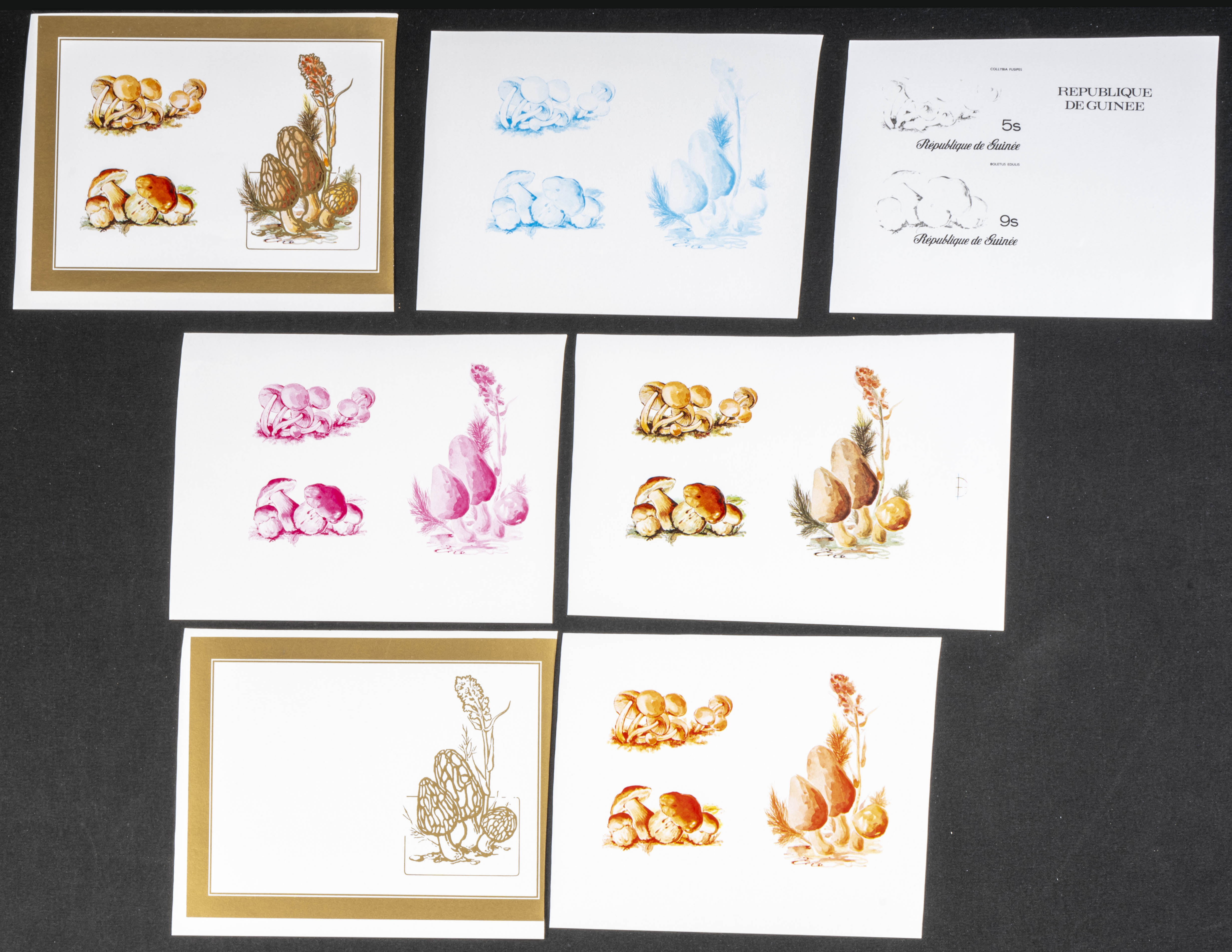 ★★Yvert B36. 1977. Mushrooms. Group of progressive plate proofs of the set. TO EXAM.
