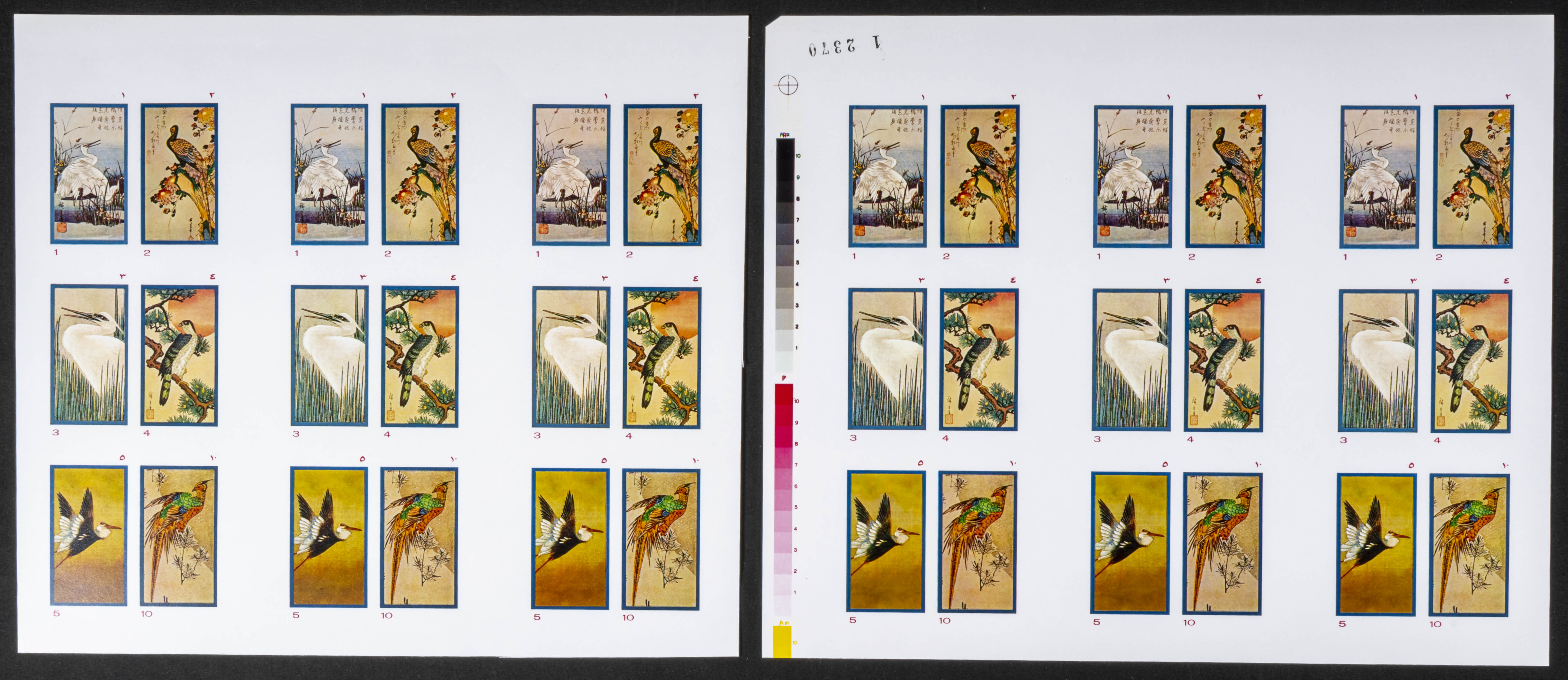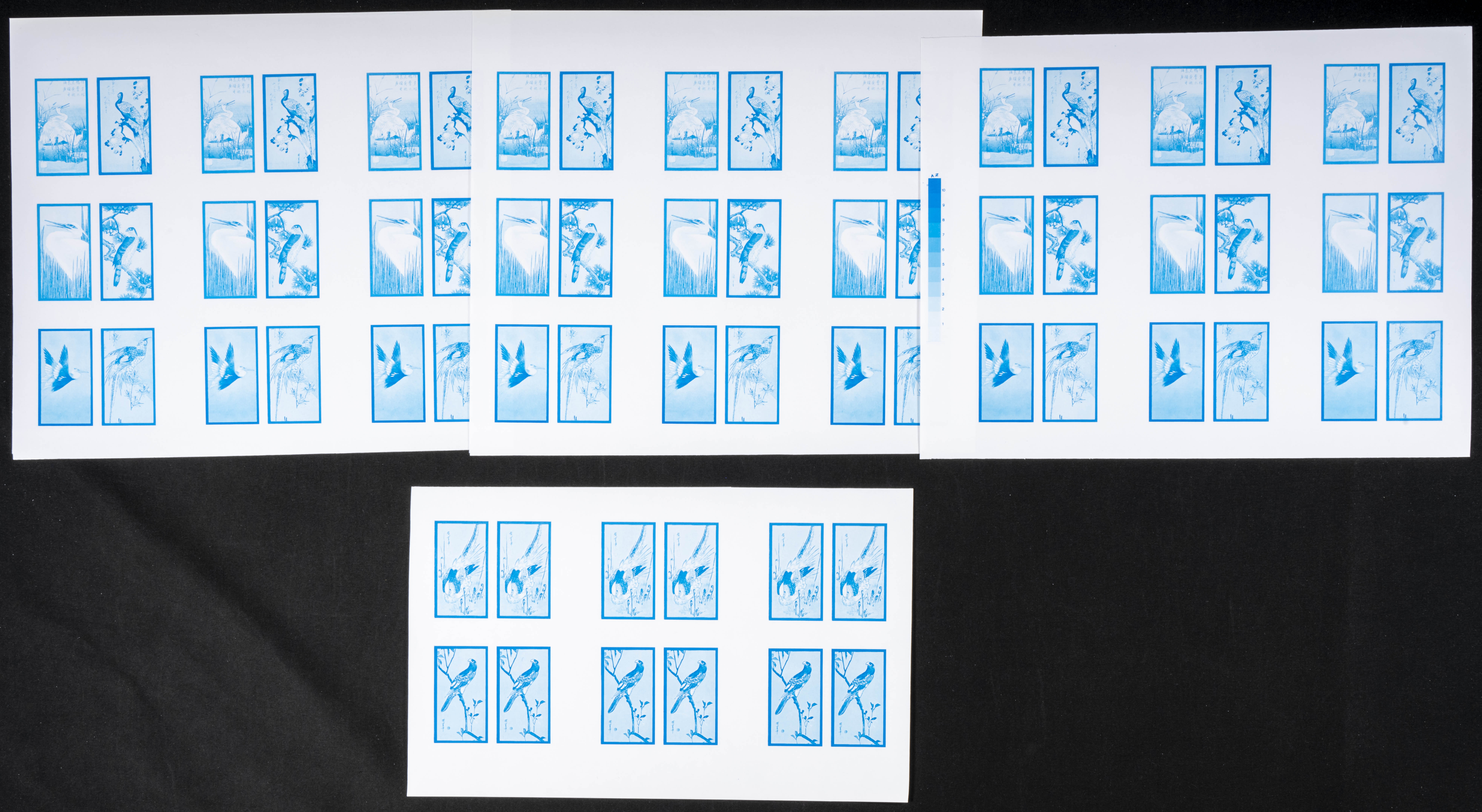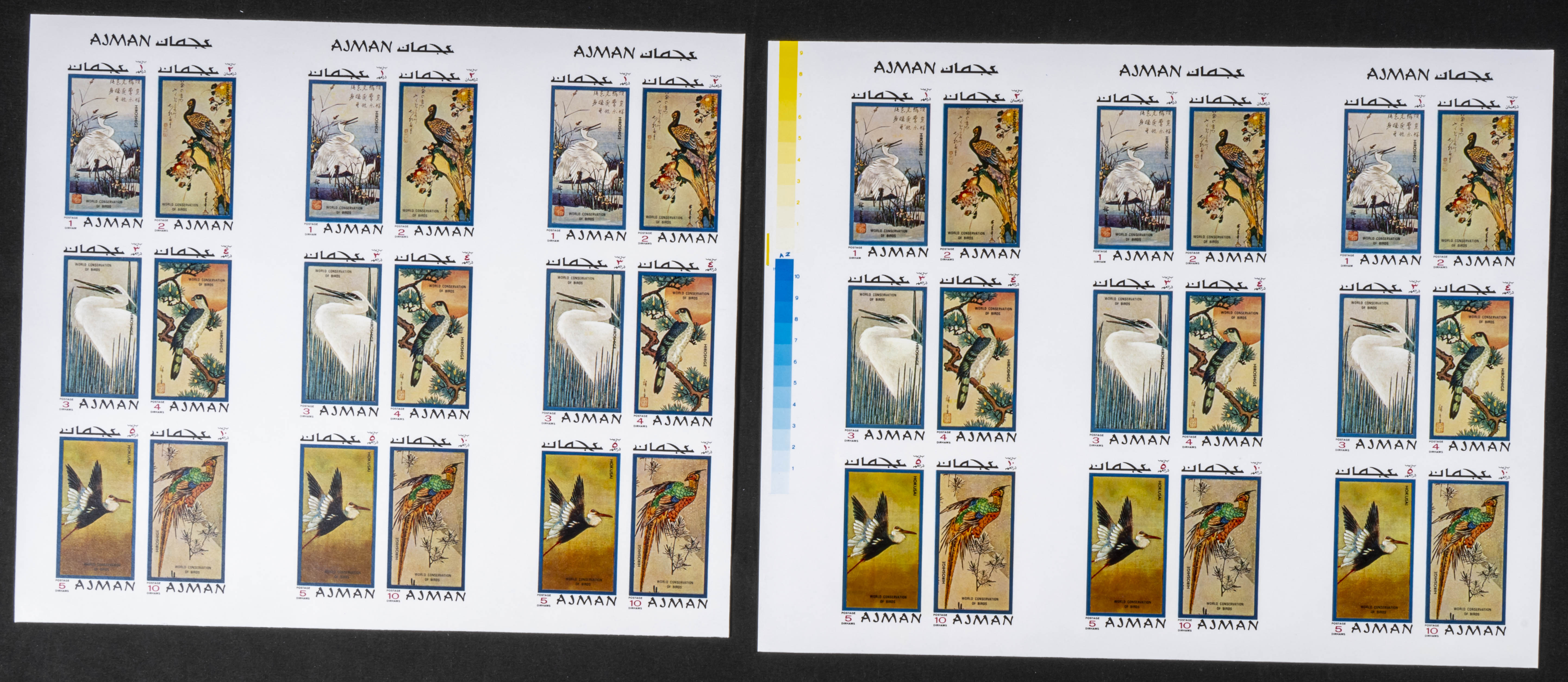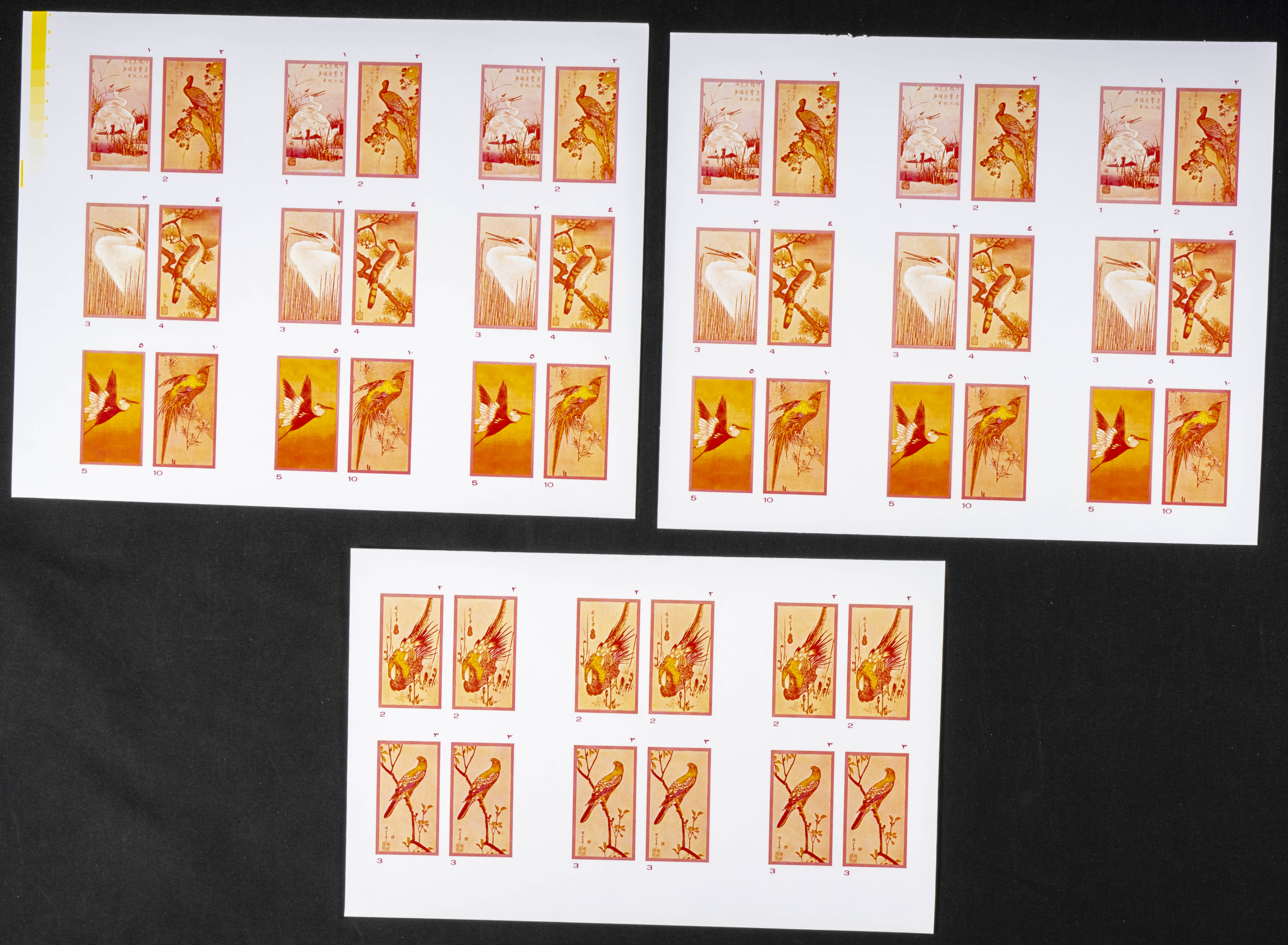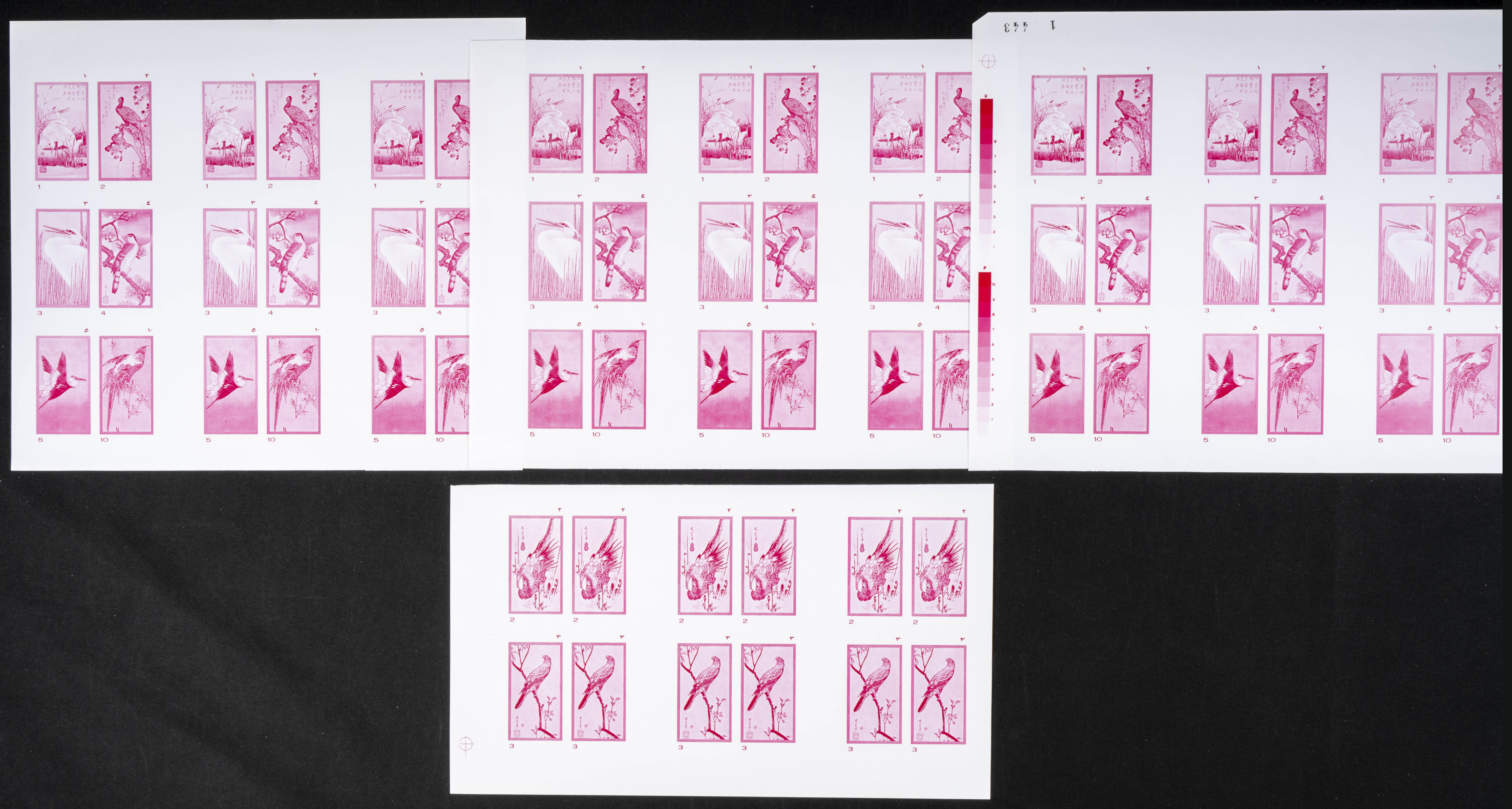 ★★ . 1971. Exotic birds, paintings. Group of progressive plate proofs of the set. (Michel: 809/16). TO EXAM.