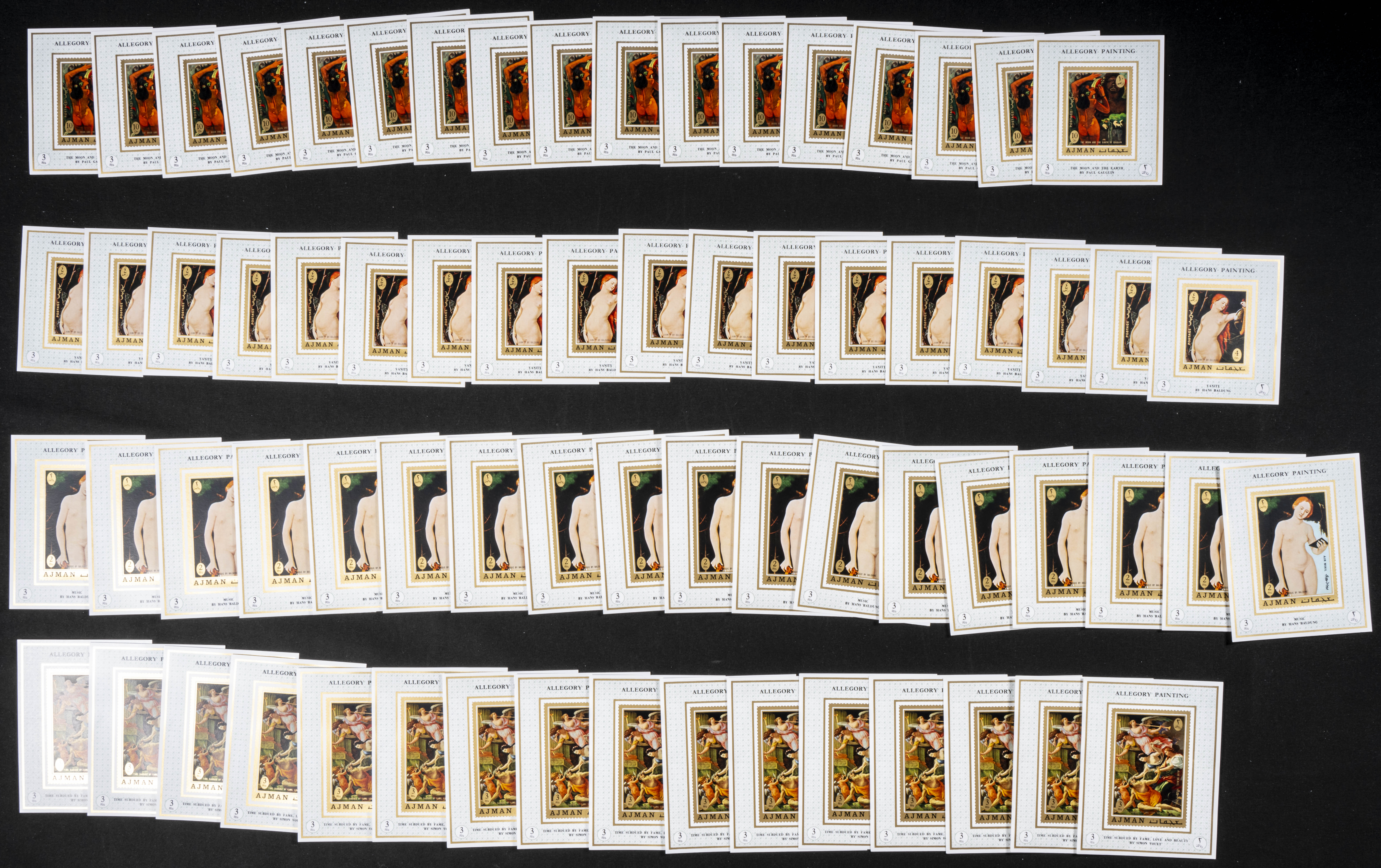 ★★ . 1971. Paintings. Group of complete set IMPERFORATED on individual sheets. (Michel: 826/33). TO EXAM.