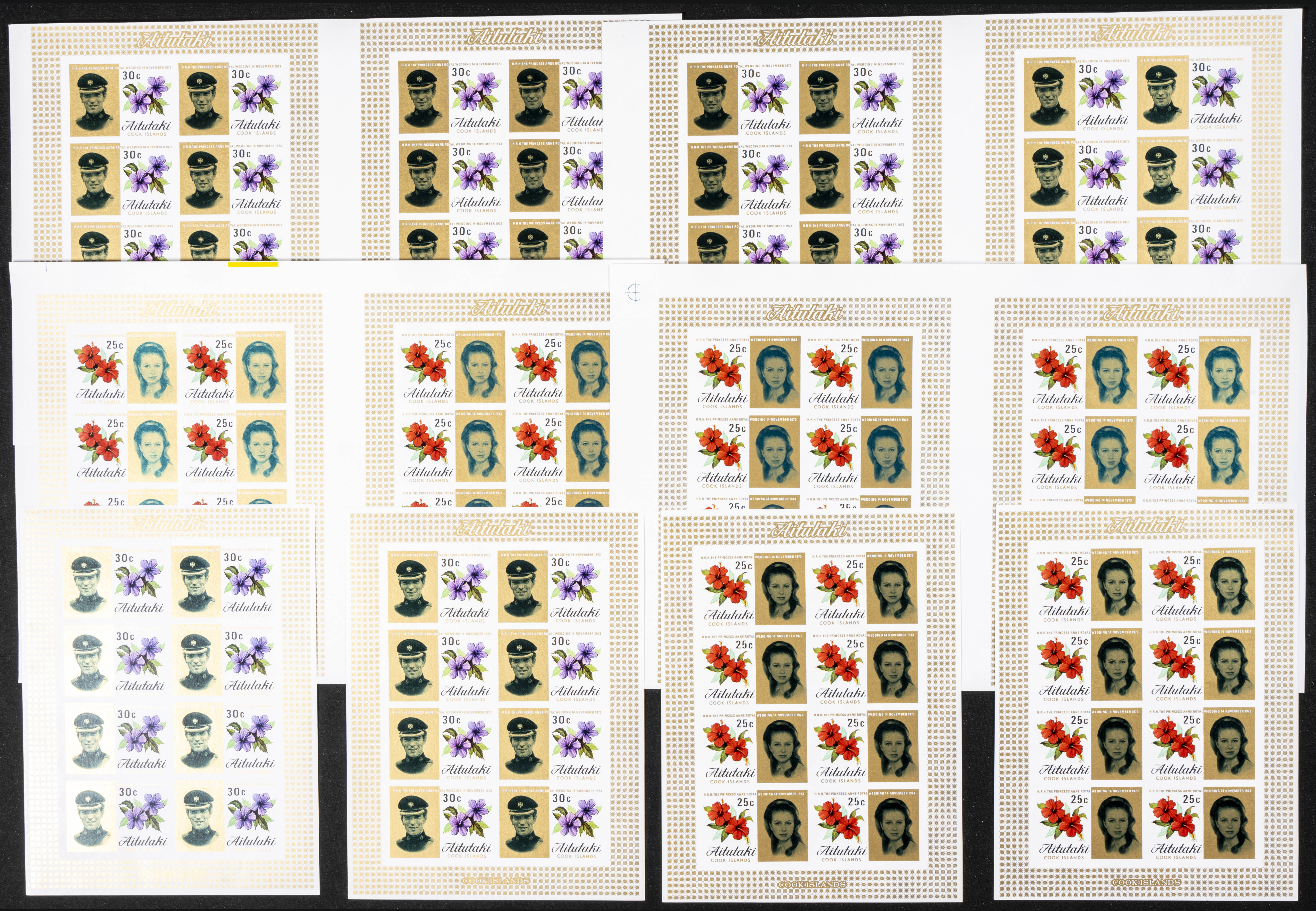 ★★Yvert 81/82. 1973. Royal wedding, flowers. Group of IMPERFORATED sets. TO EXAM.