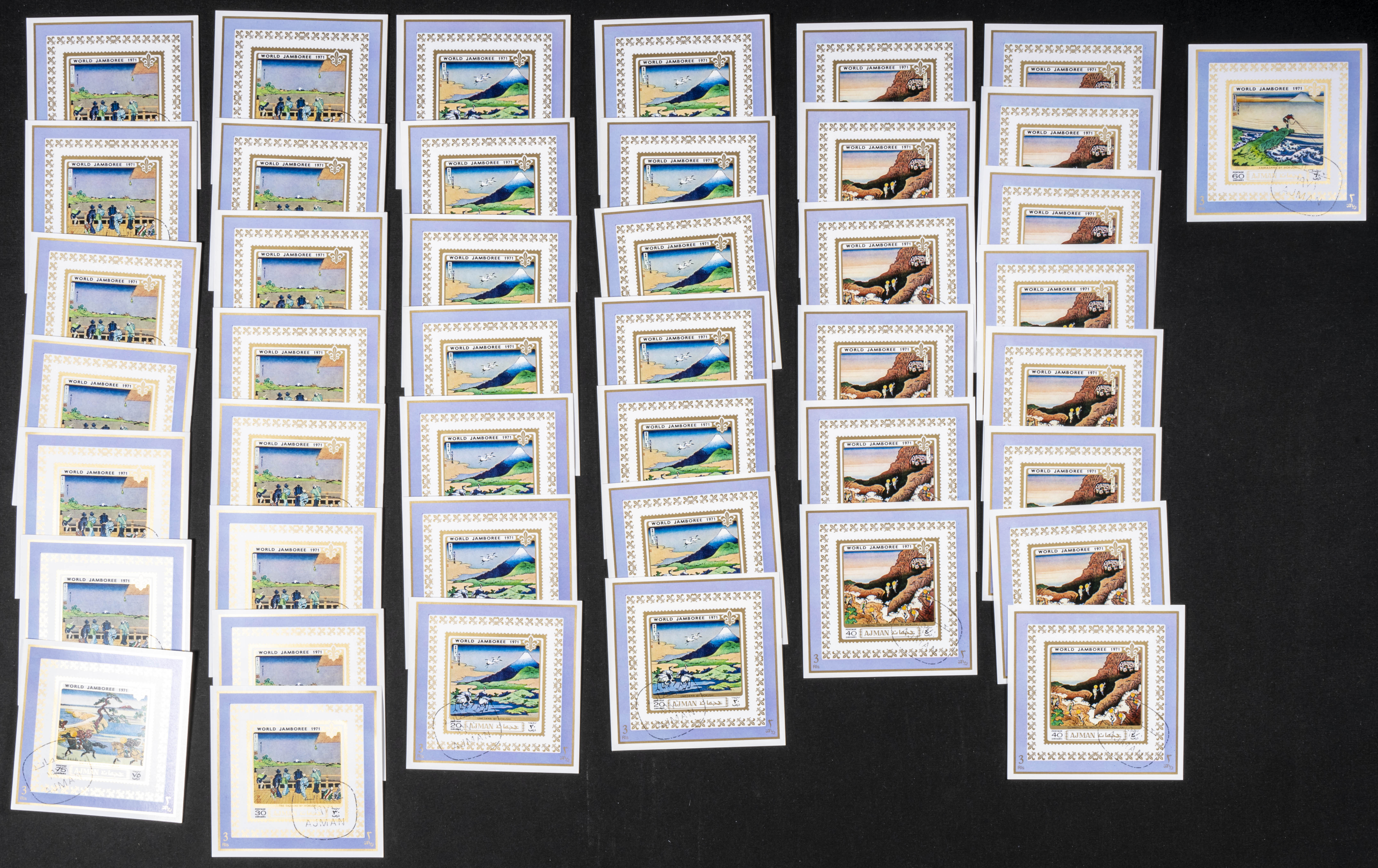 . 1971. World jamboree. Group of complete set IMPERFORATED on individual sheets. (Michel: 933/38). TO EXAM.