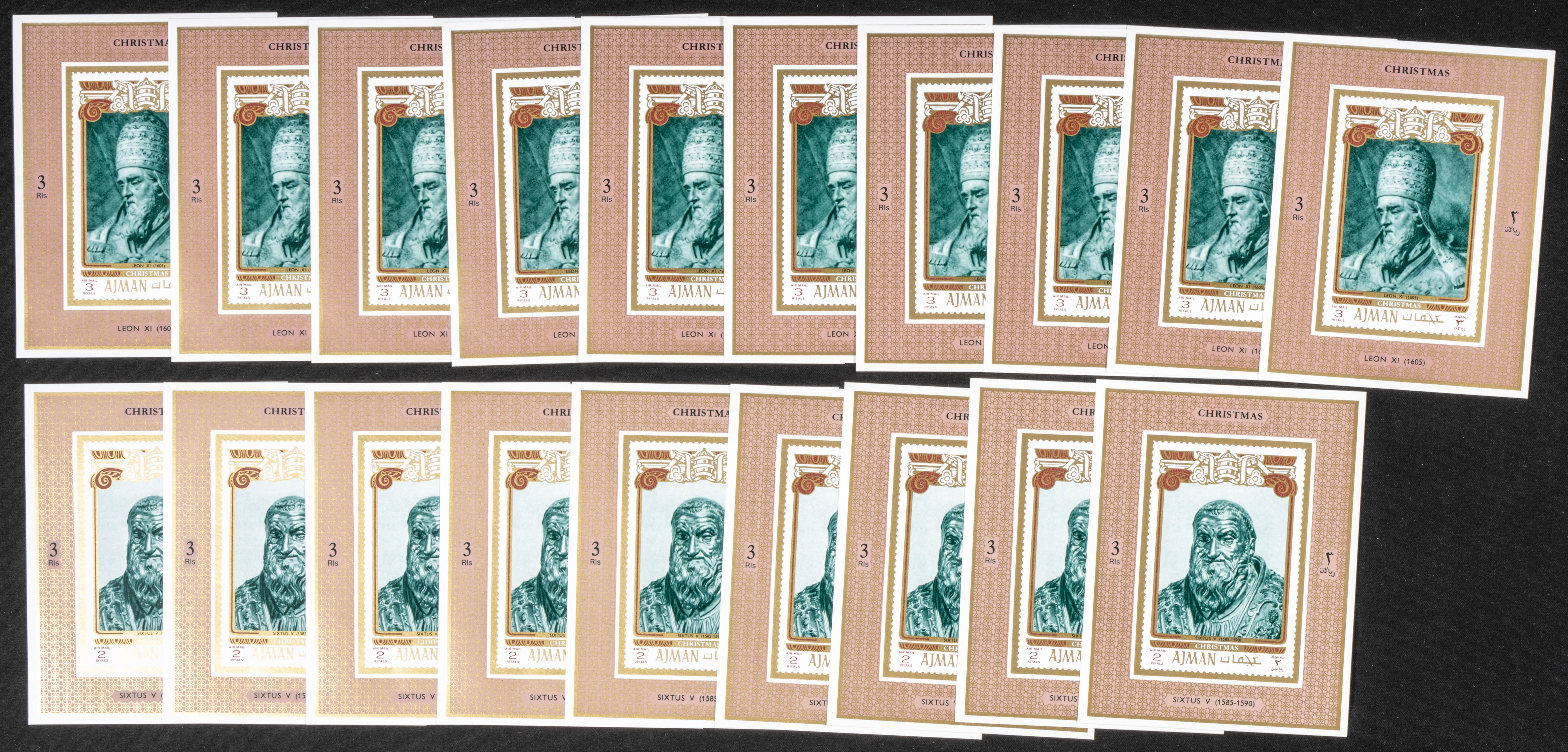 ★★Yvert 1001/08. 1971. Christmas, Popes. Group of complete set IMPERFORATED on individual sheets. TO EXAM.