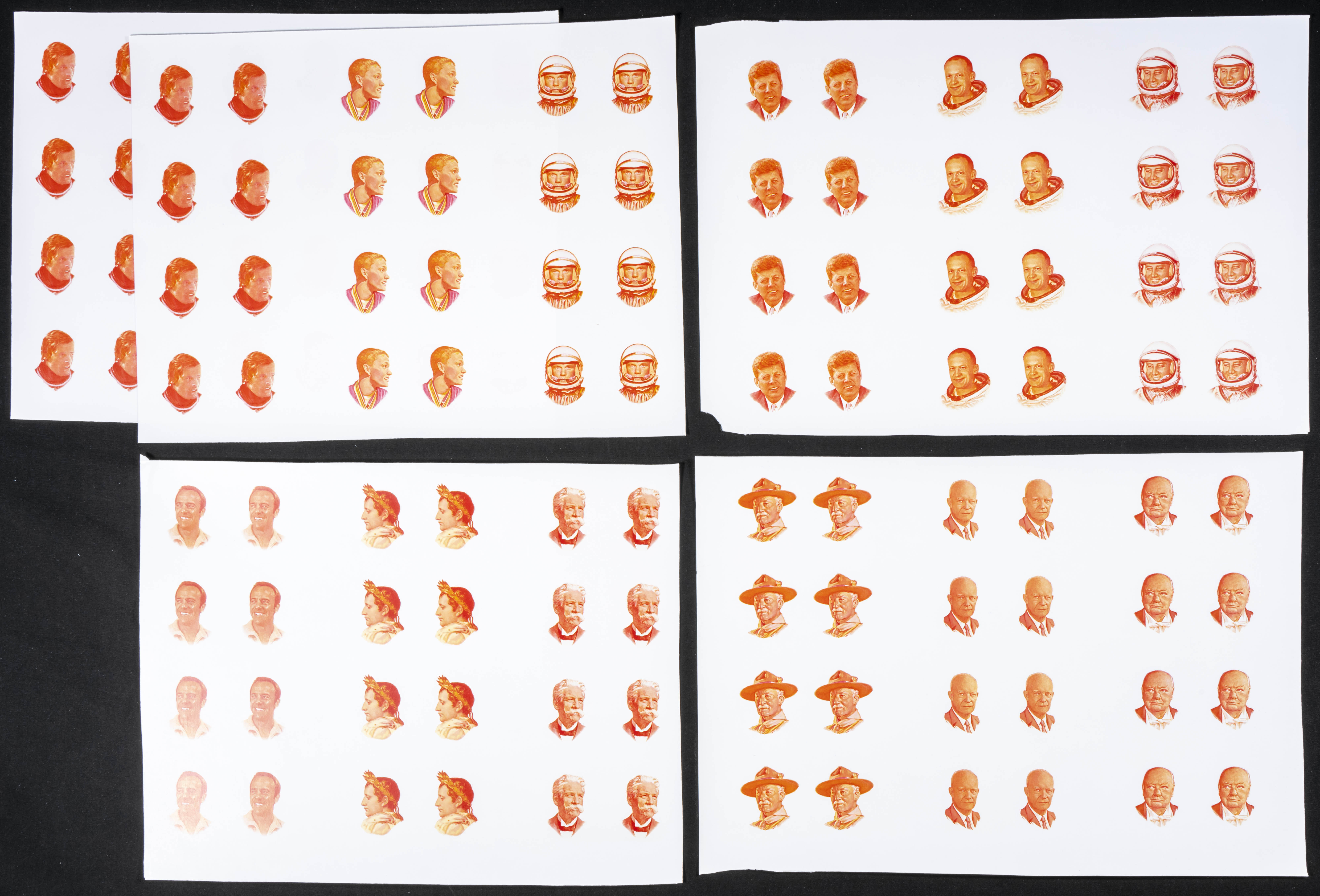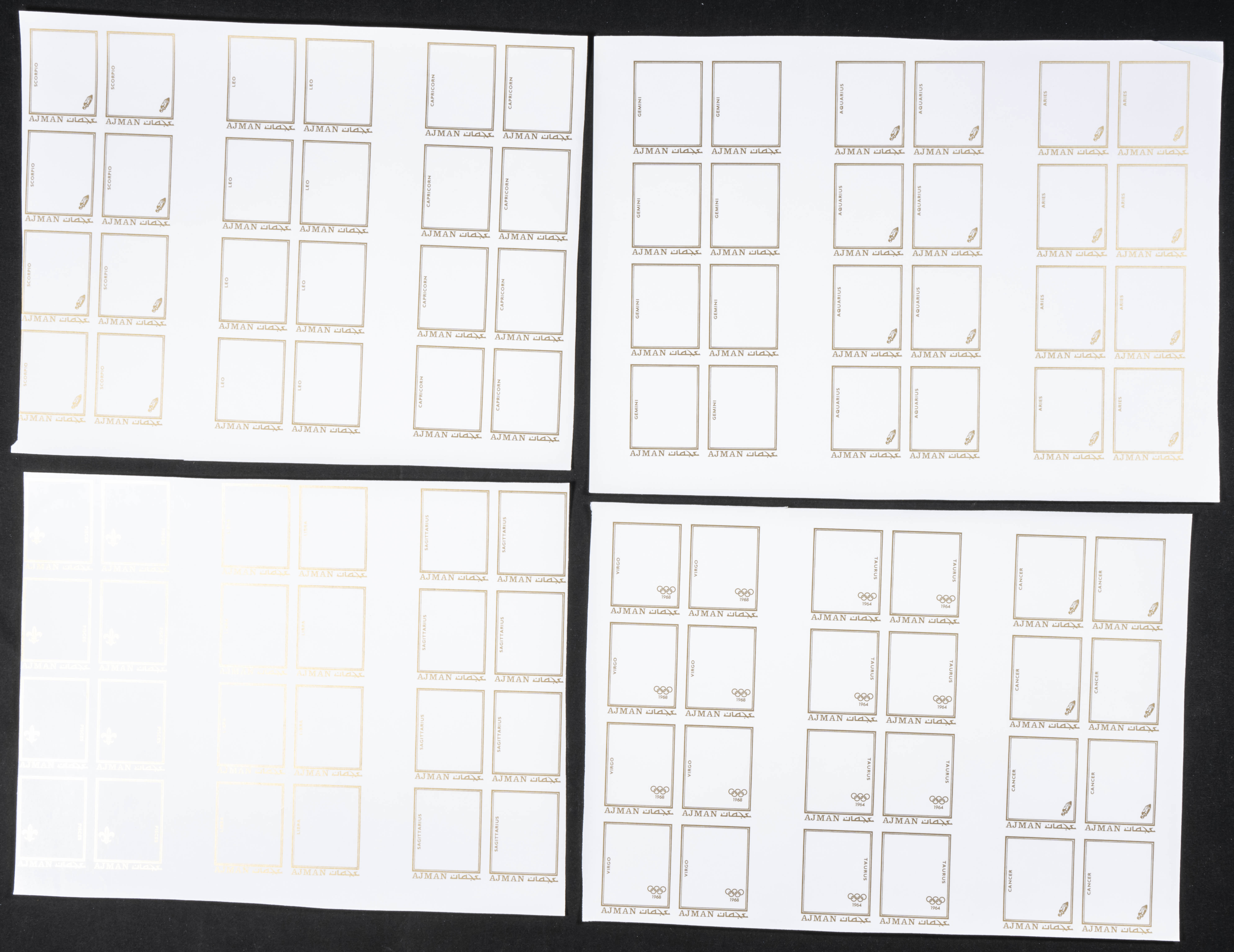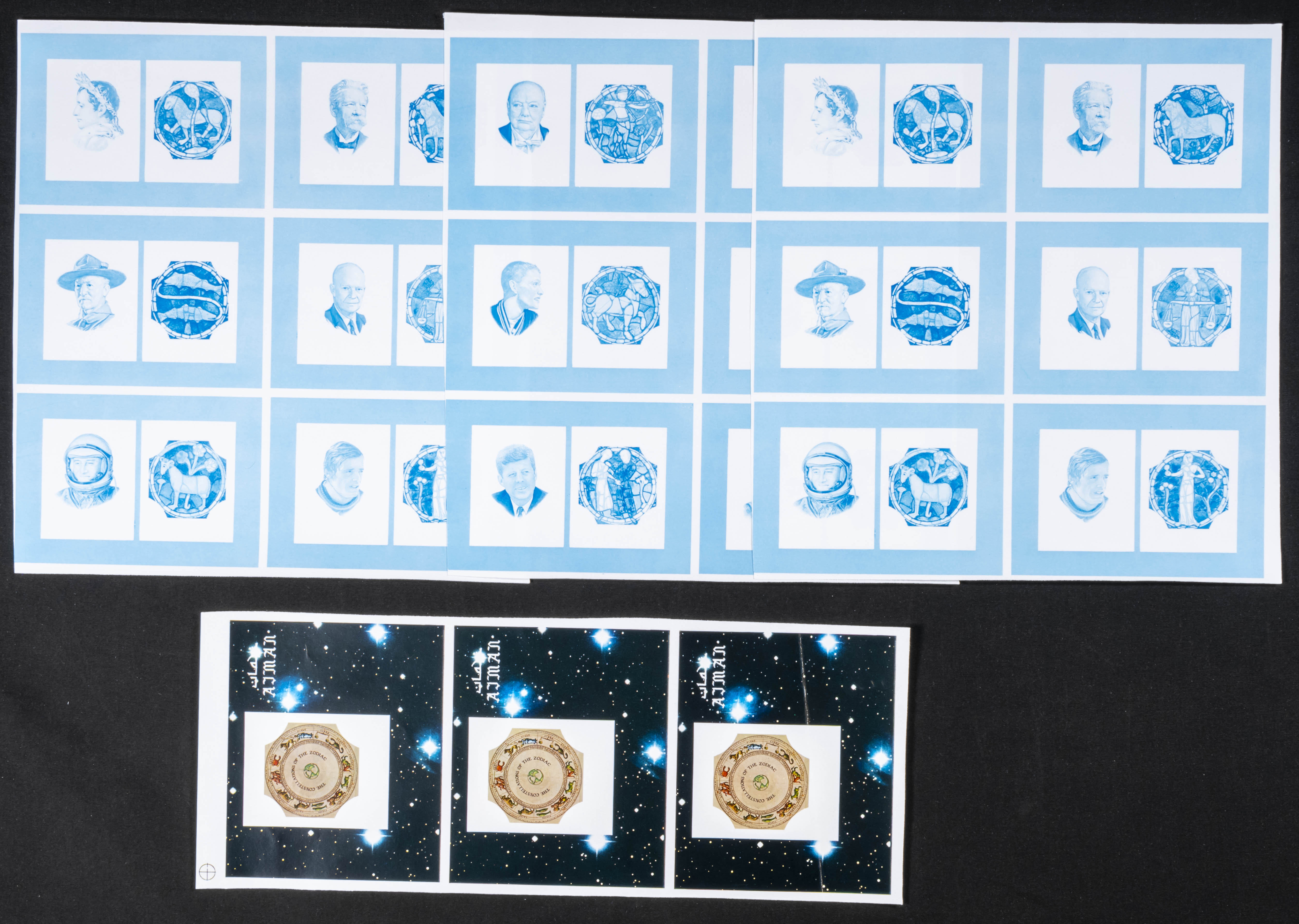 ★★Yvert . 1971. Personalities and Their Zodiac Signs. Group of progressive plate proofs of the set. (Michel: B257/68). TO EXAM.
