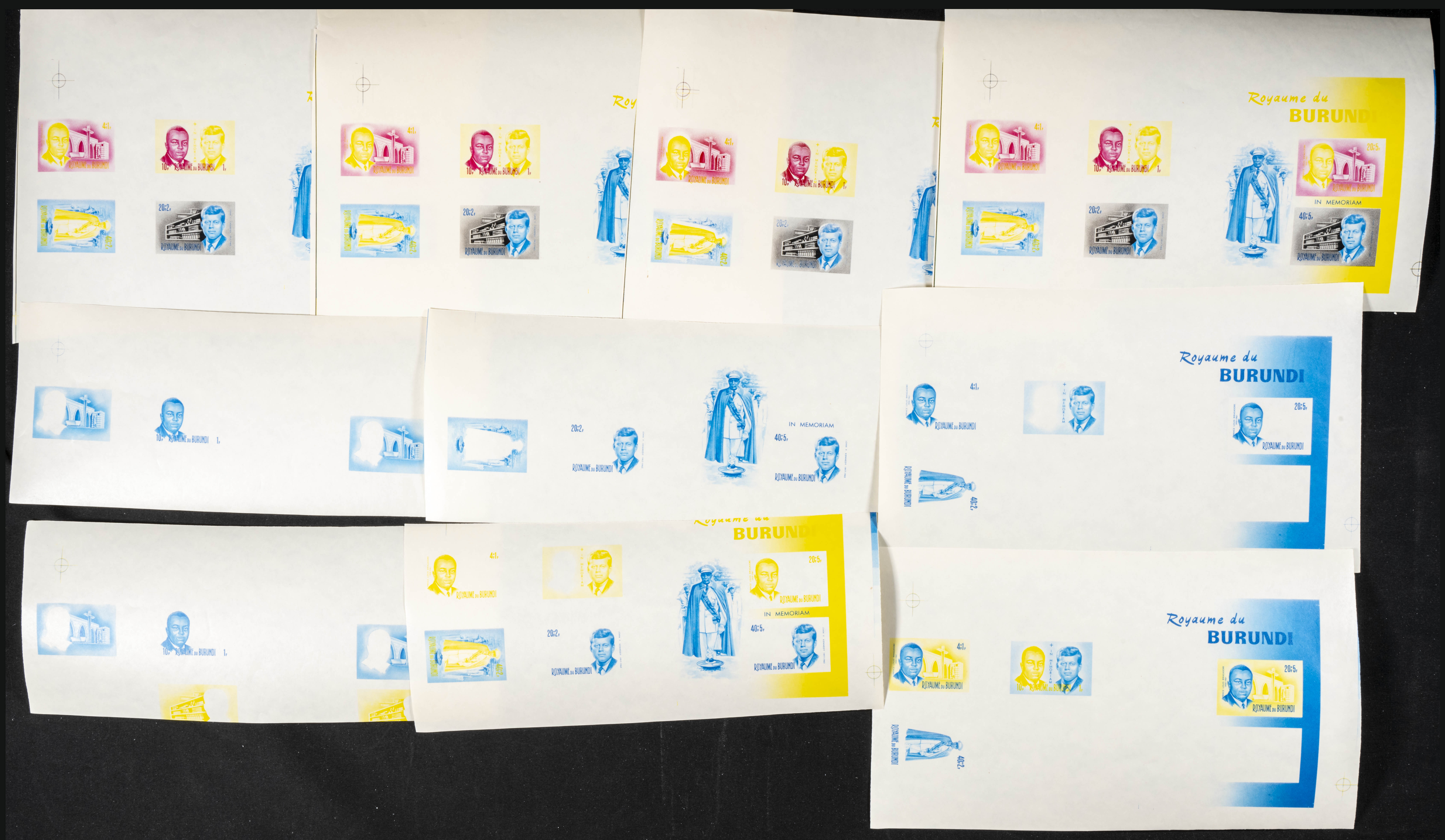 ★★Yvert B10. 1966. J.F. Kennedy. Group of progressive plate proofs of the set. TO EXAM.