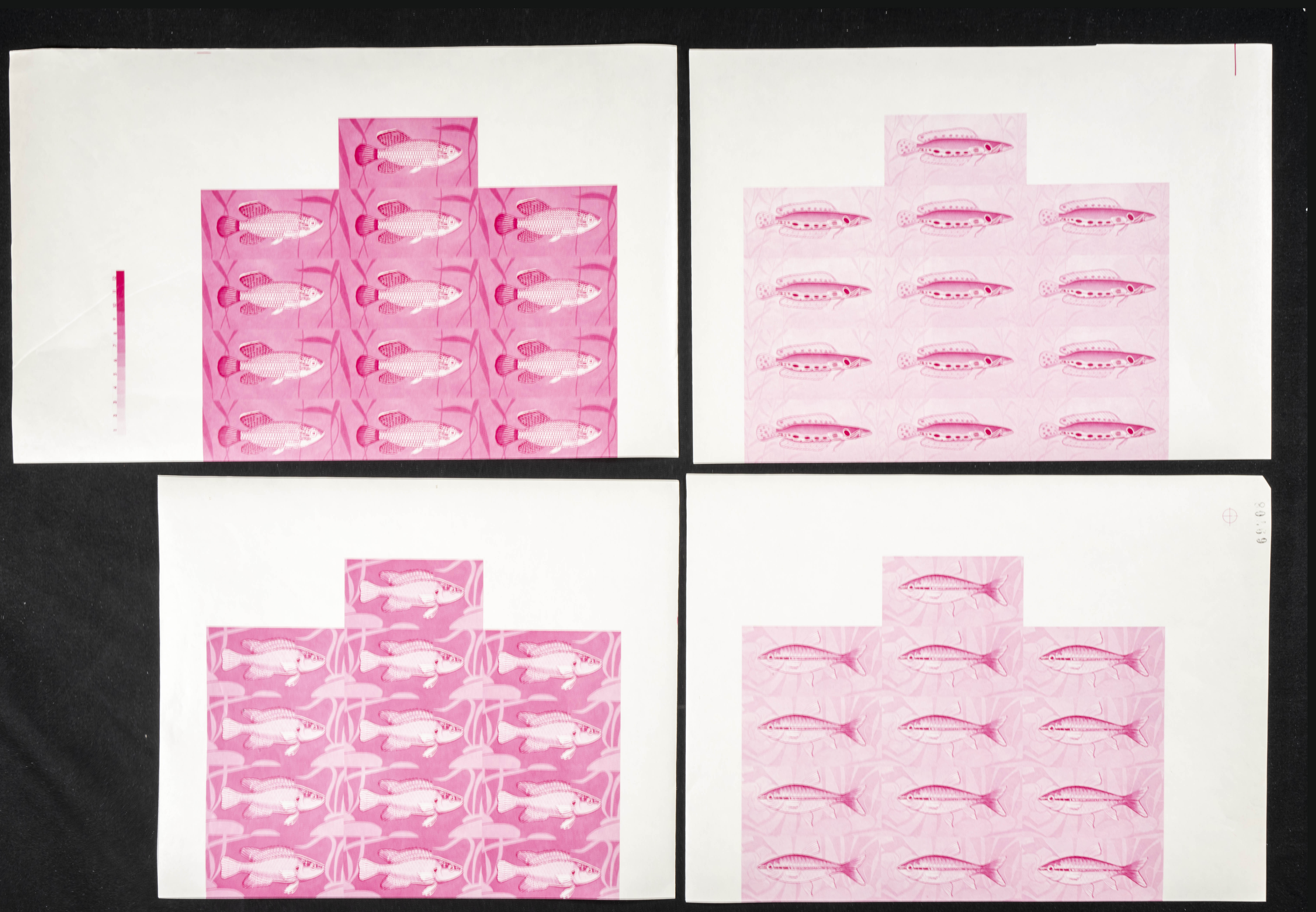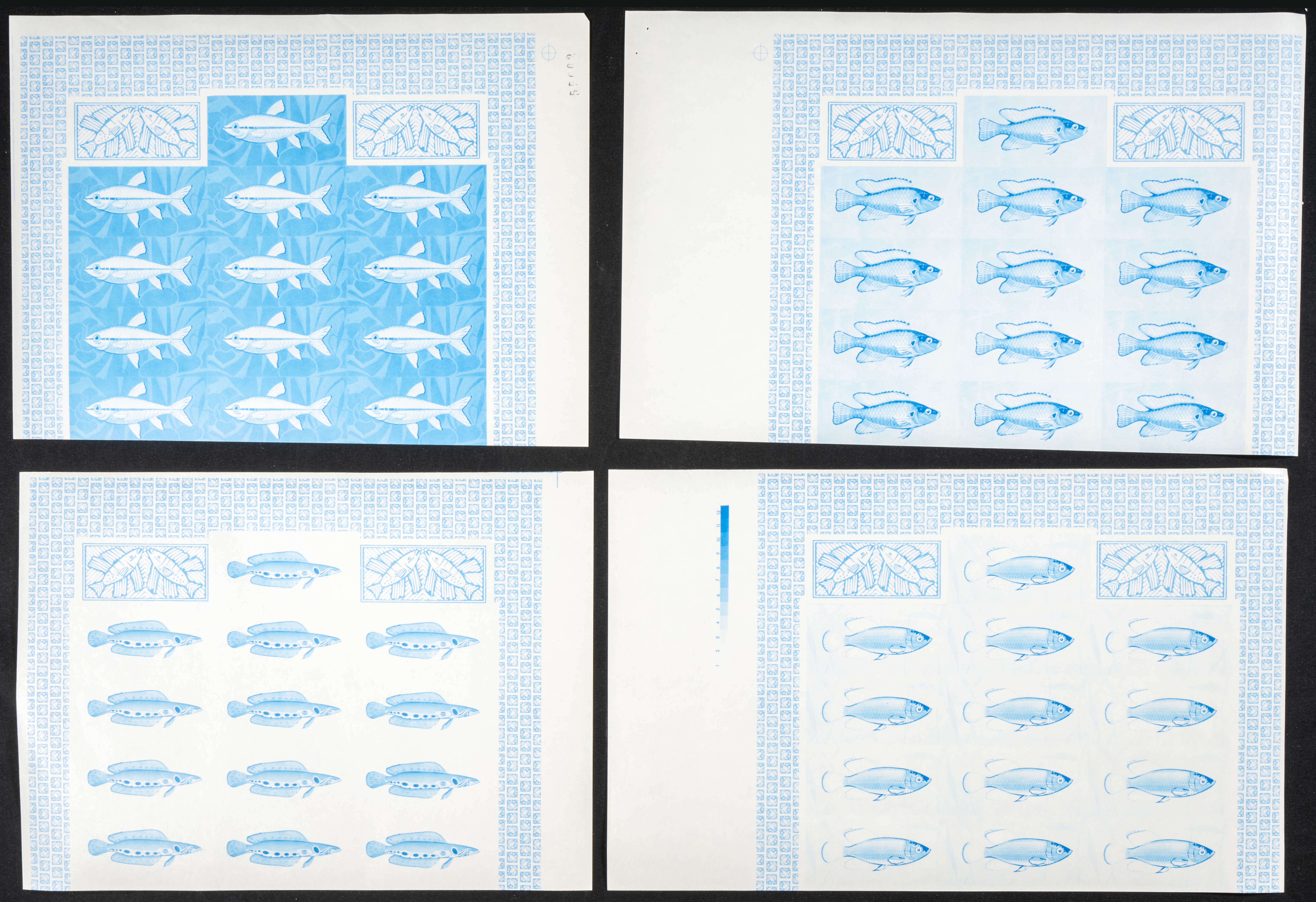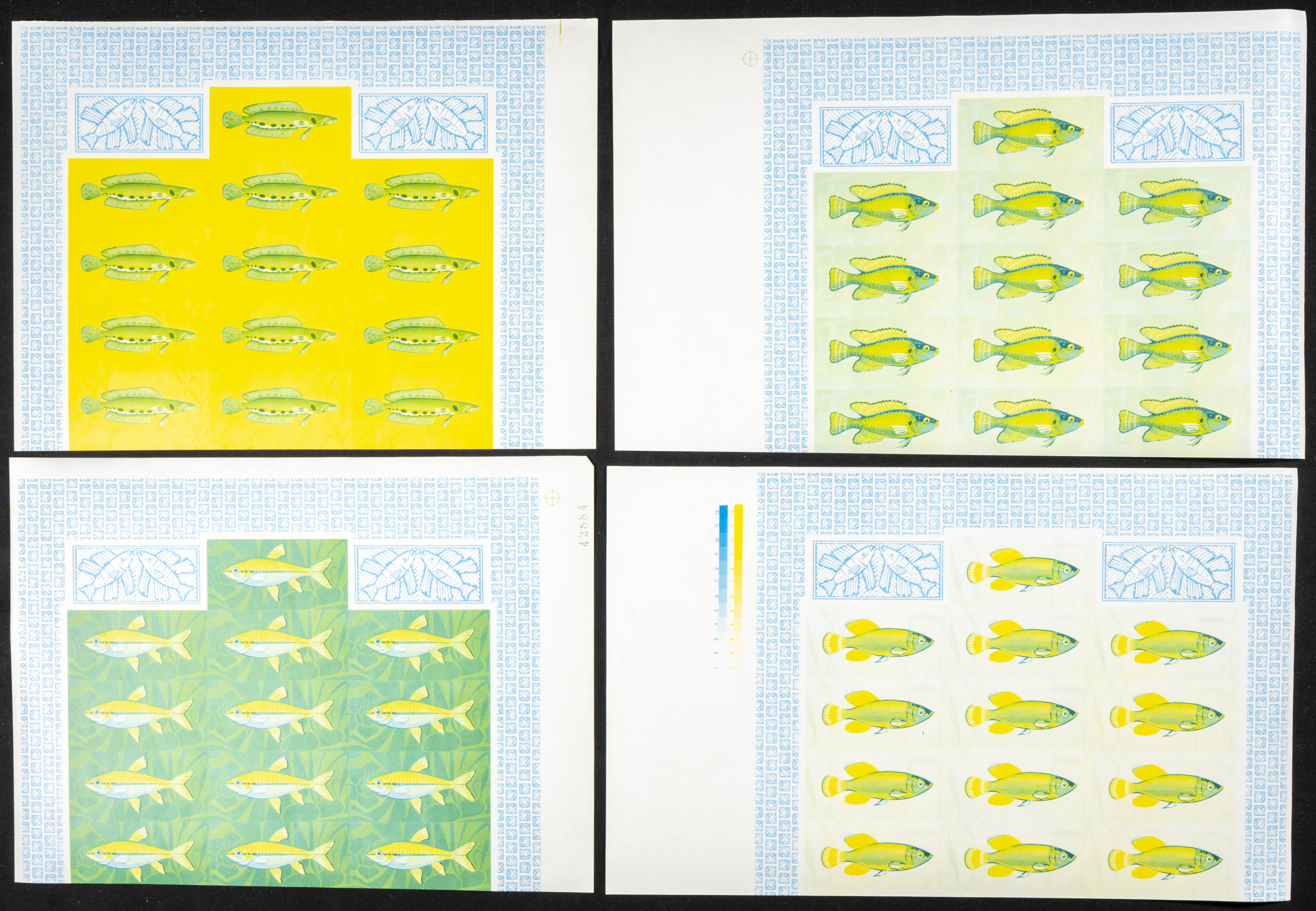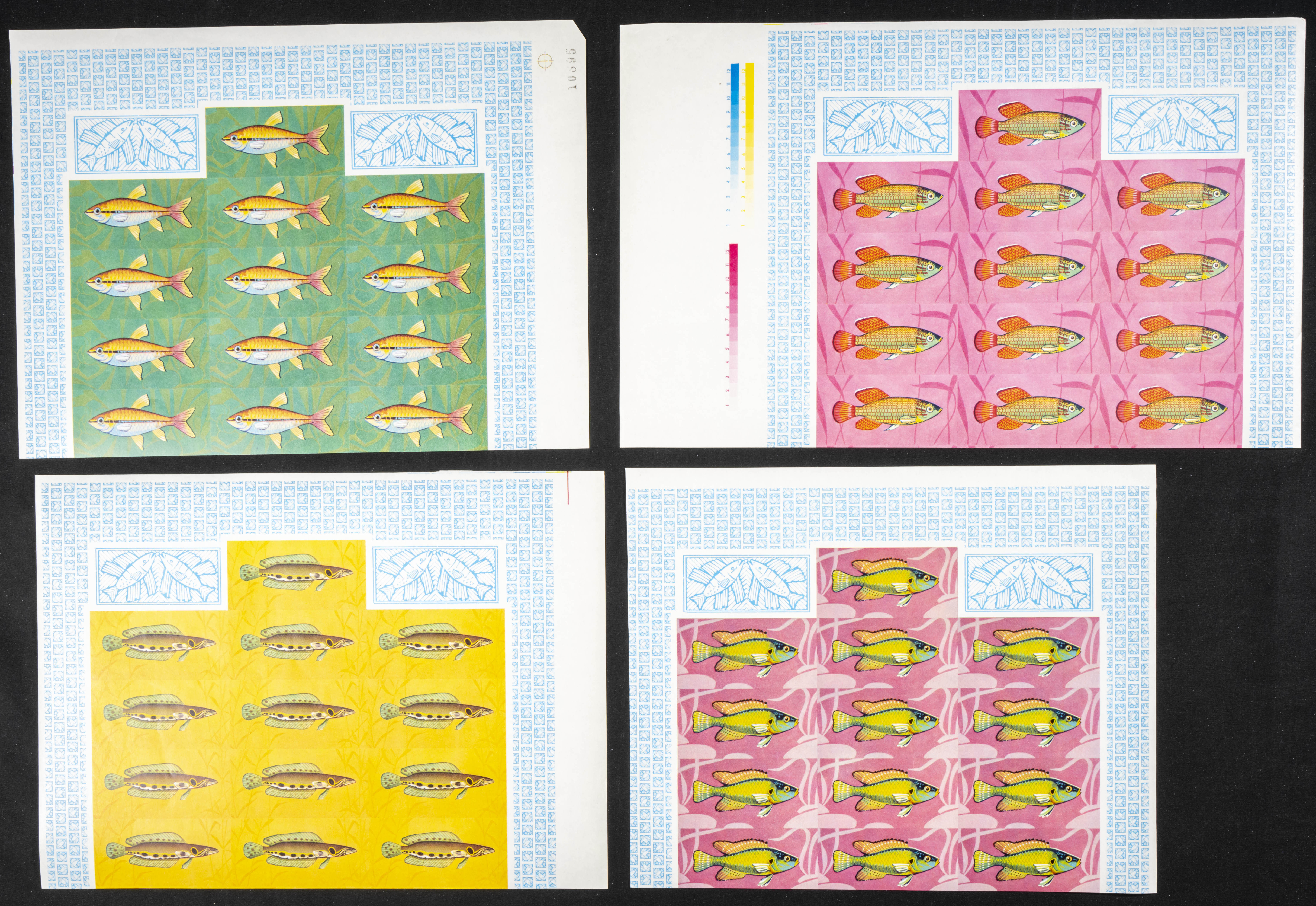 ★★Yvert 229/32. 1968. Fish. Group of progressive plate proofs of the set. TO EXAM.