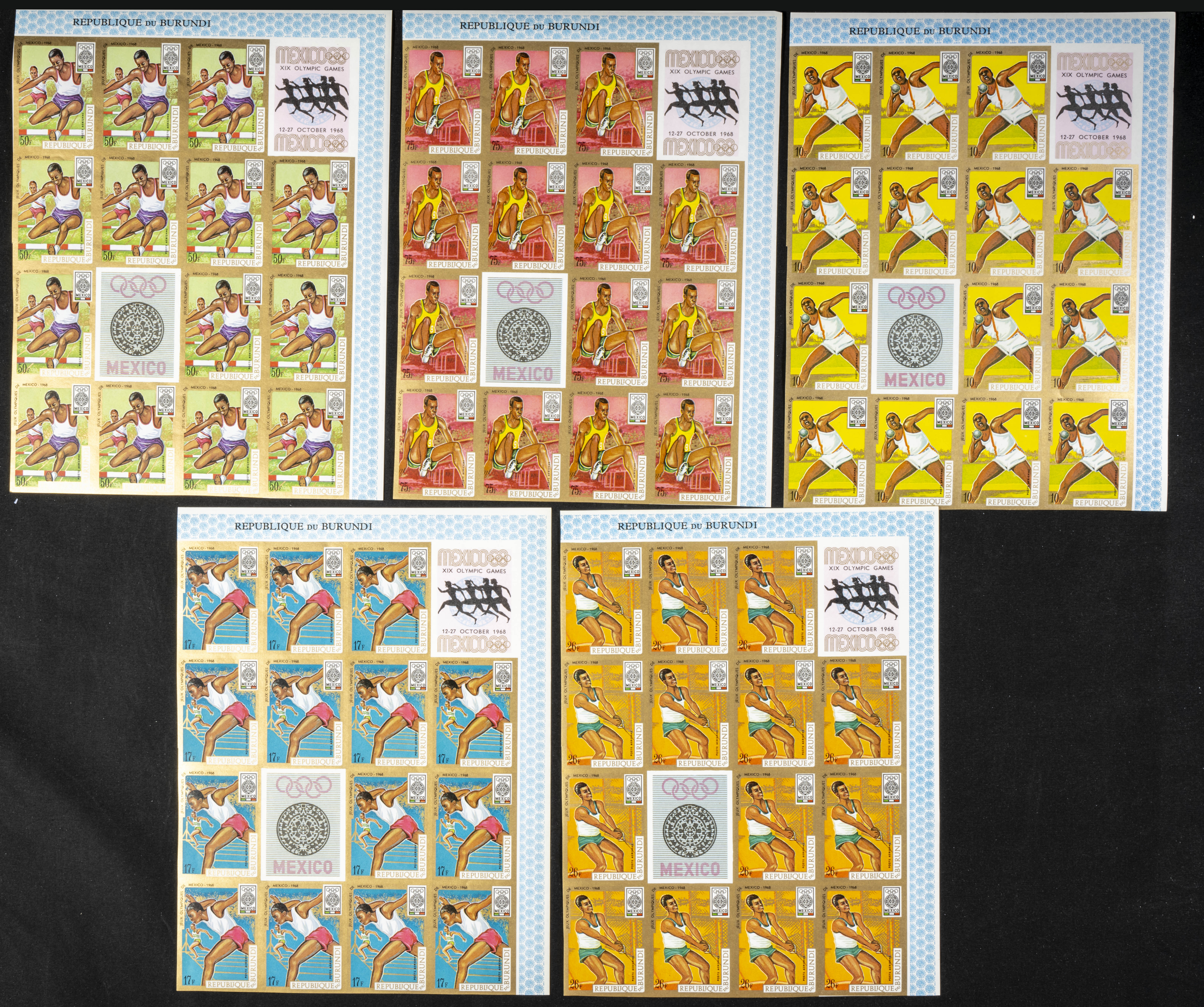 ★★Yvert 294/98. 1968. Olympic games-Mexico ’68. Group of IMPERFORATED sets. TO EXAM.