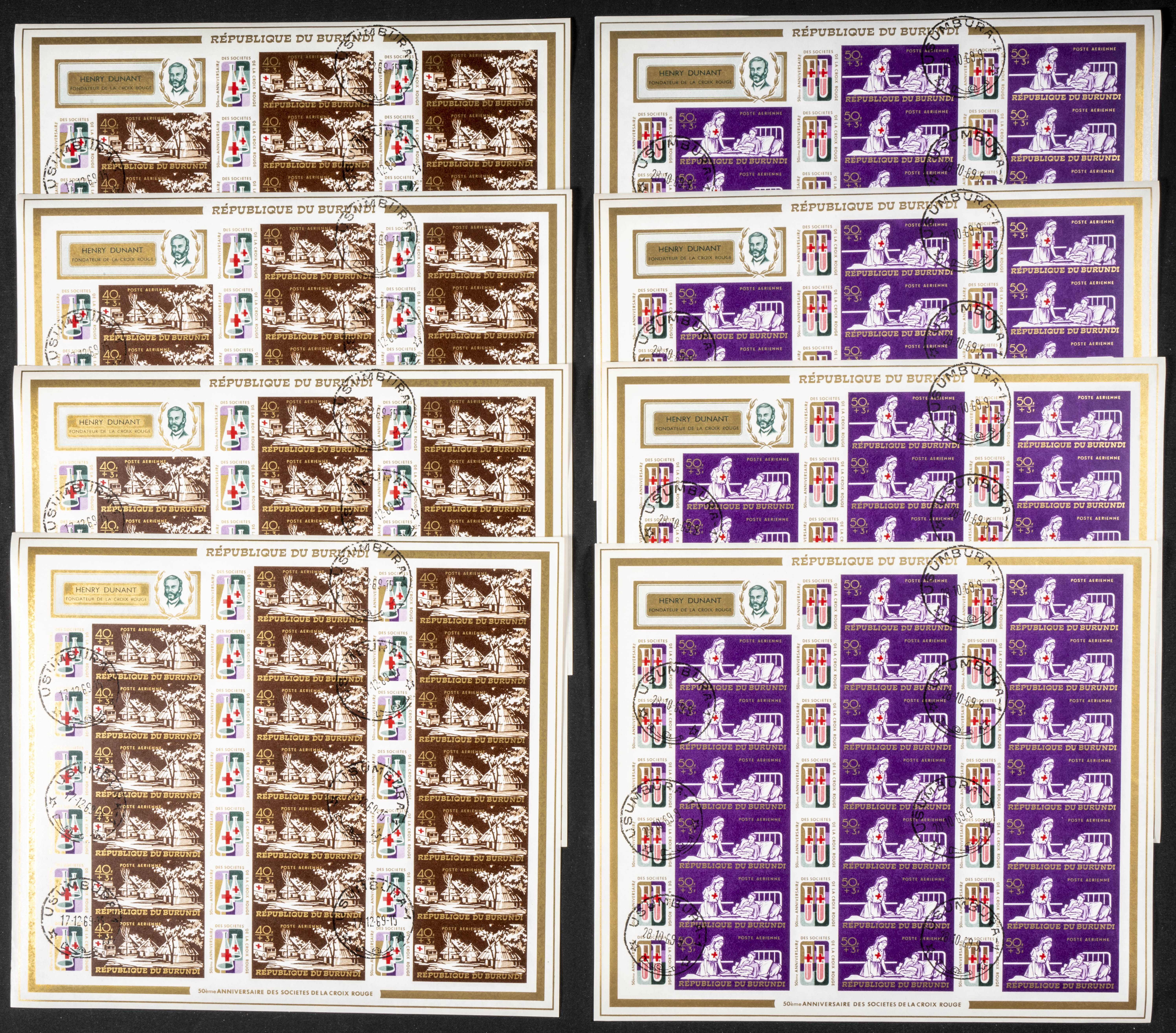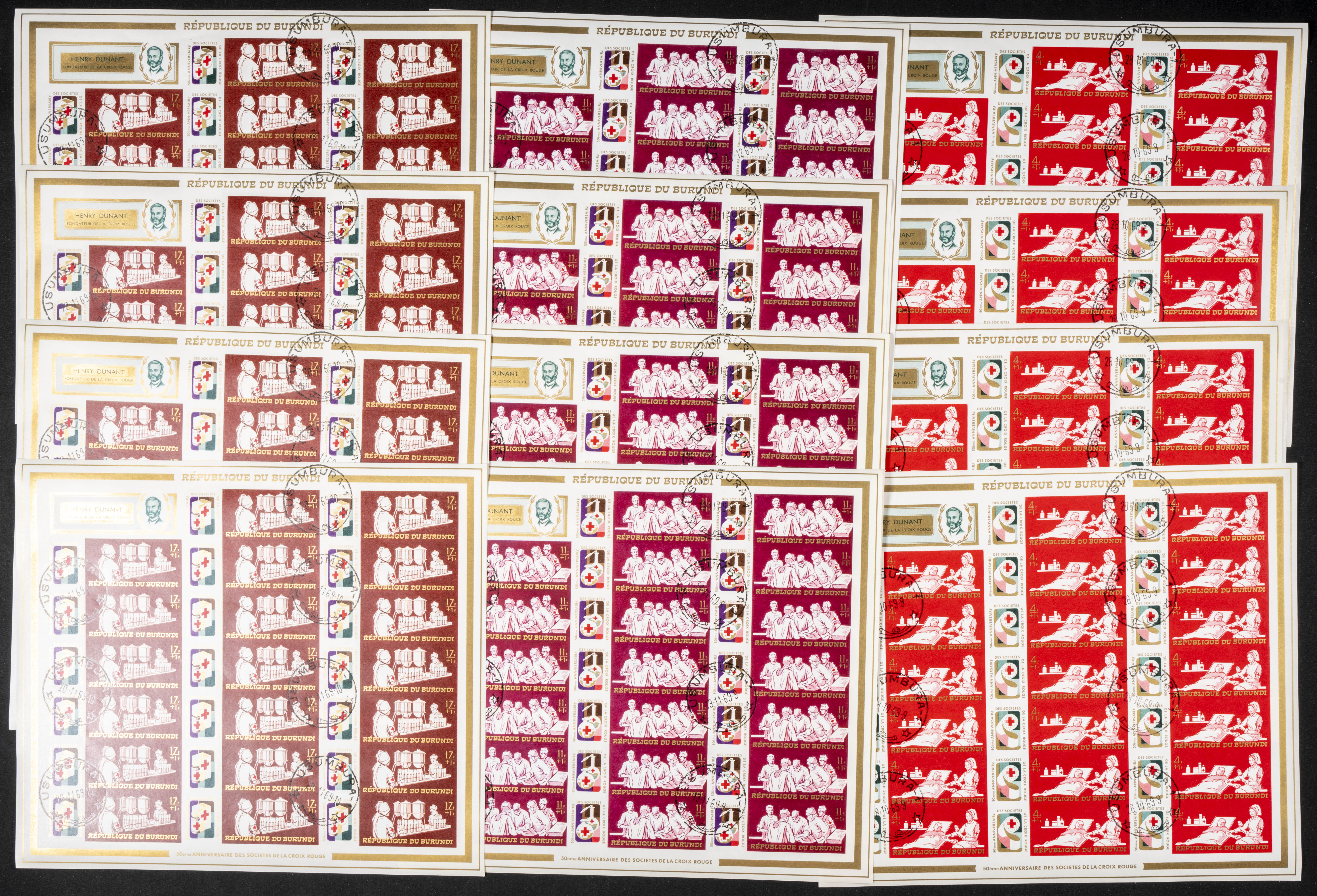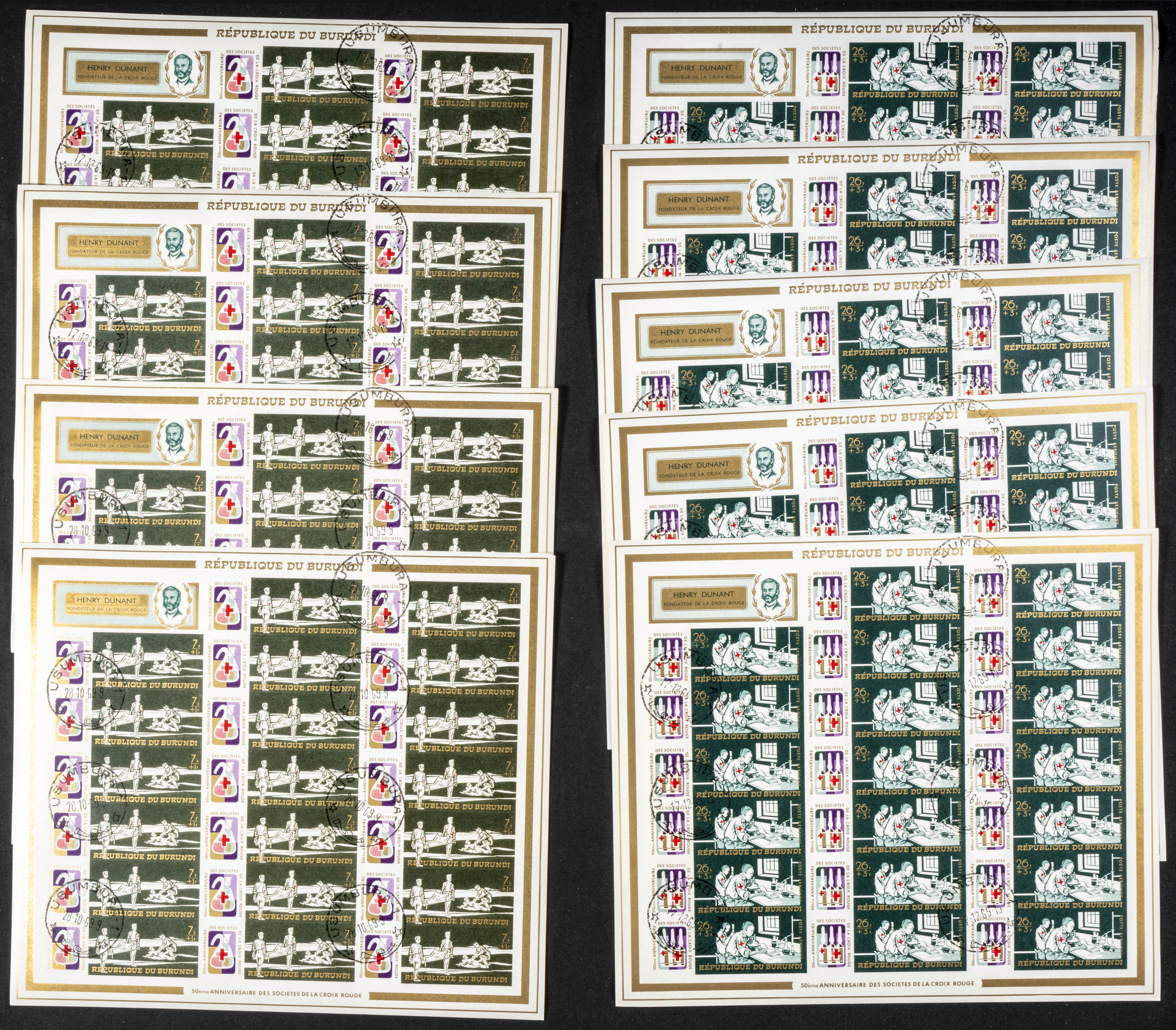 Yvert 322/5+A. 1969. Red Cross. Group of IMPERFORATED sets. TO EXAM.