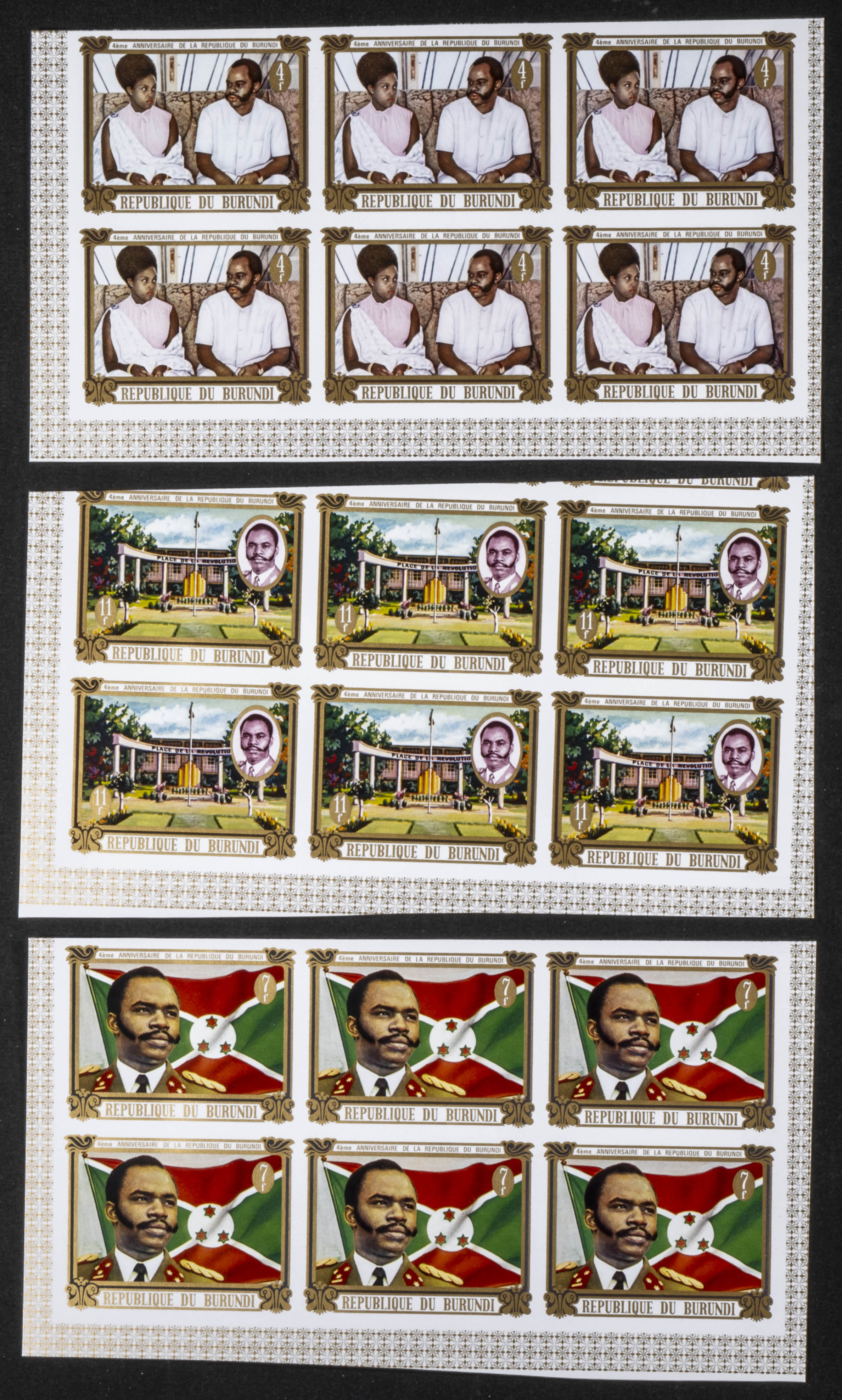 ★★Yvert 423/25. 1970. 4 years republic Burundi. Group of IMPERFORATED sets. TO EXAM.