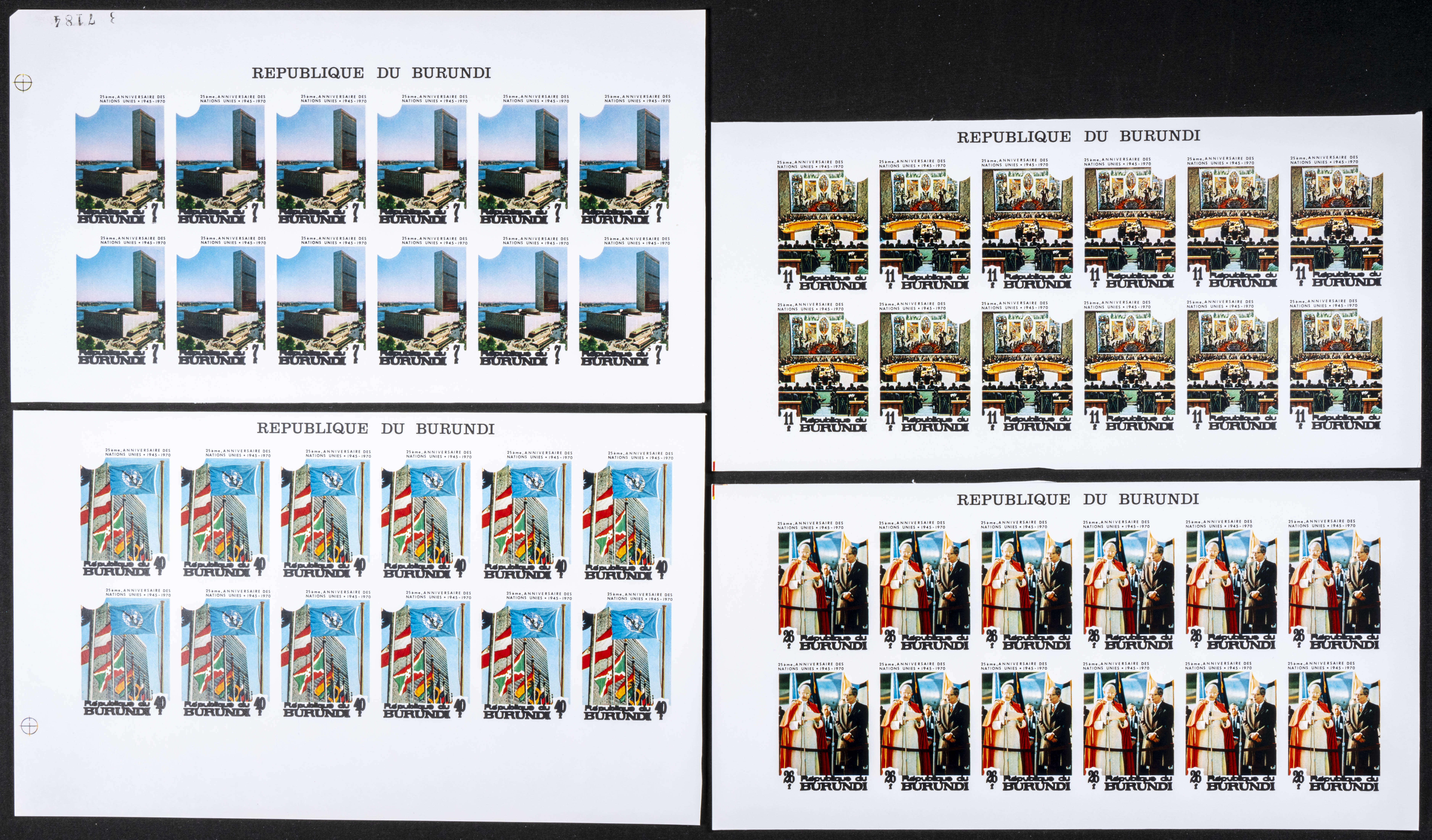 ★★Yvert A178/81. 1970. United Nations. Group of progressive plate proofs of the set. TO EXAM.