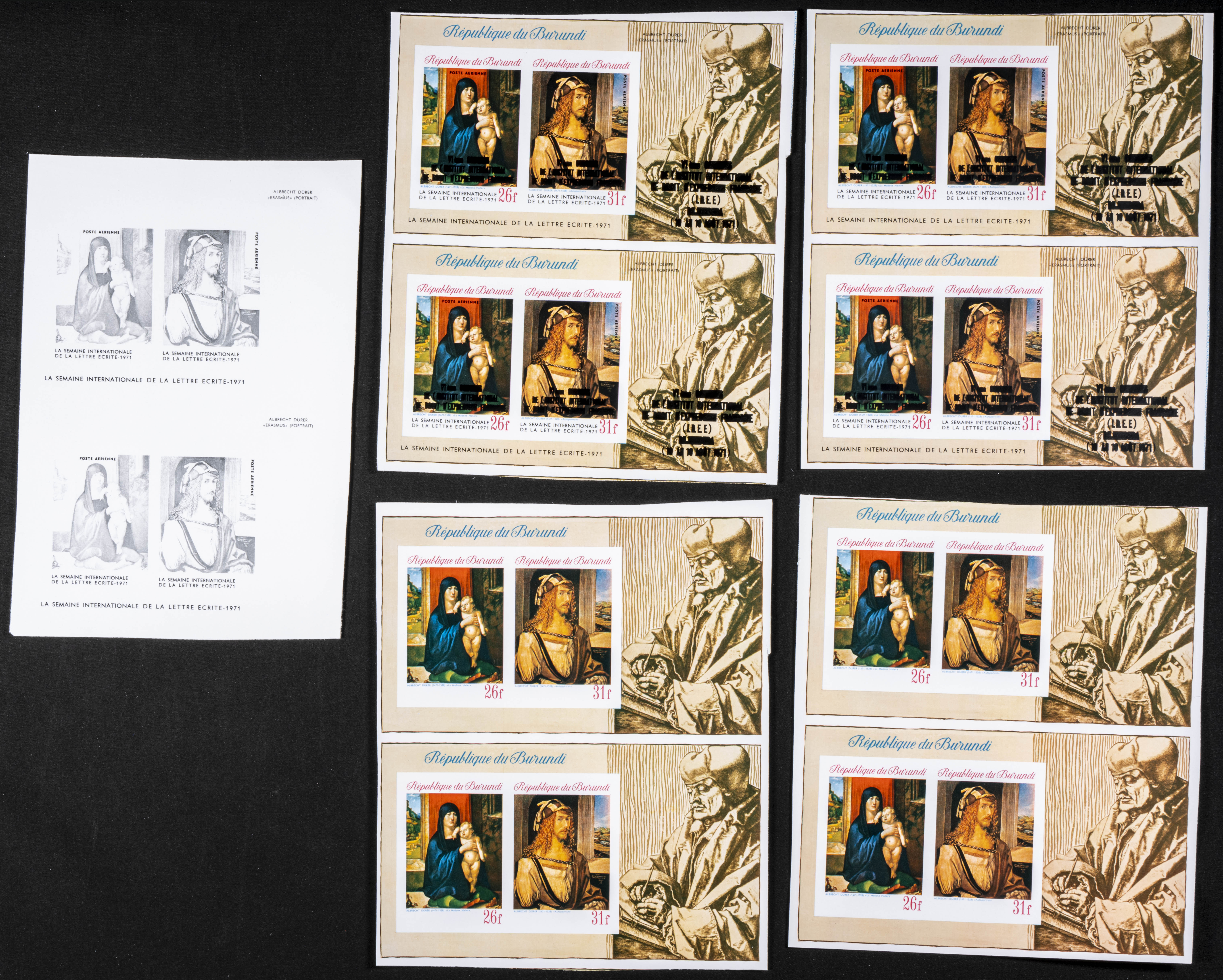 ★★Yvert B47. 1971. Durer. Group of progressive plate proofs of the set. TO EXAM.