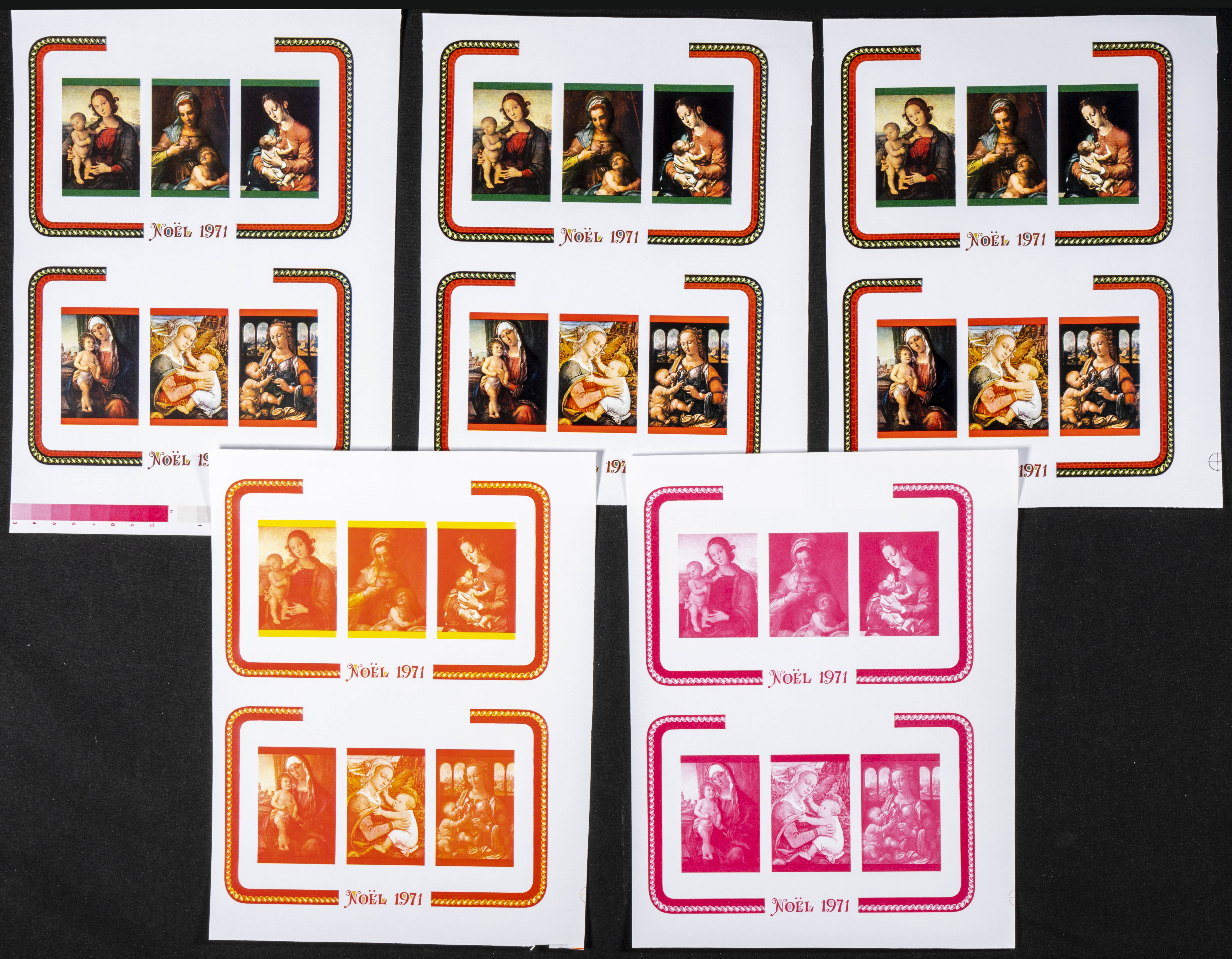 ★★Yvert B49/50. 1971. Christmas. Group of progressive plate proofs of the set. TO EXAM.