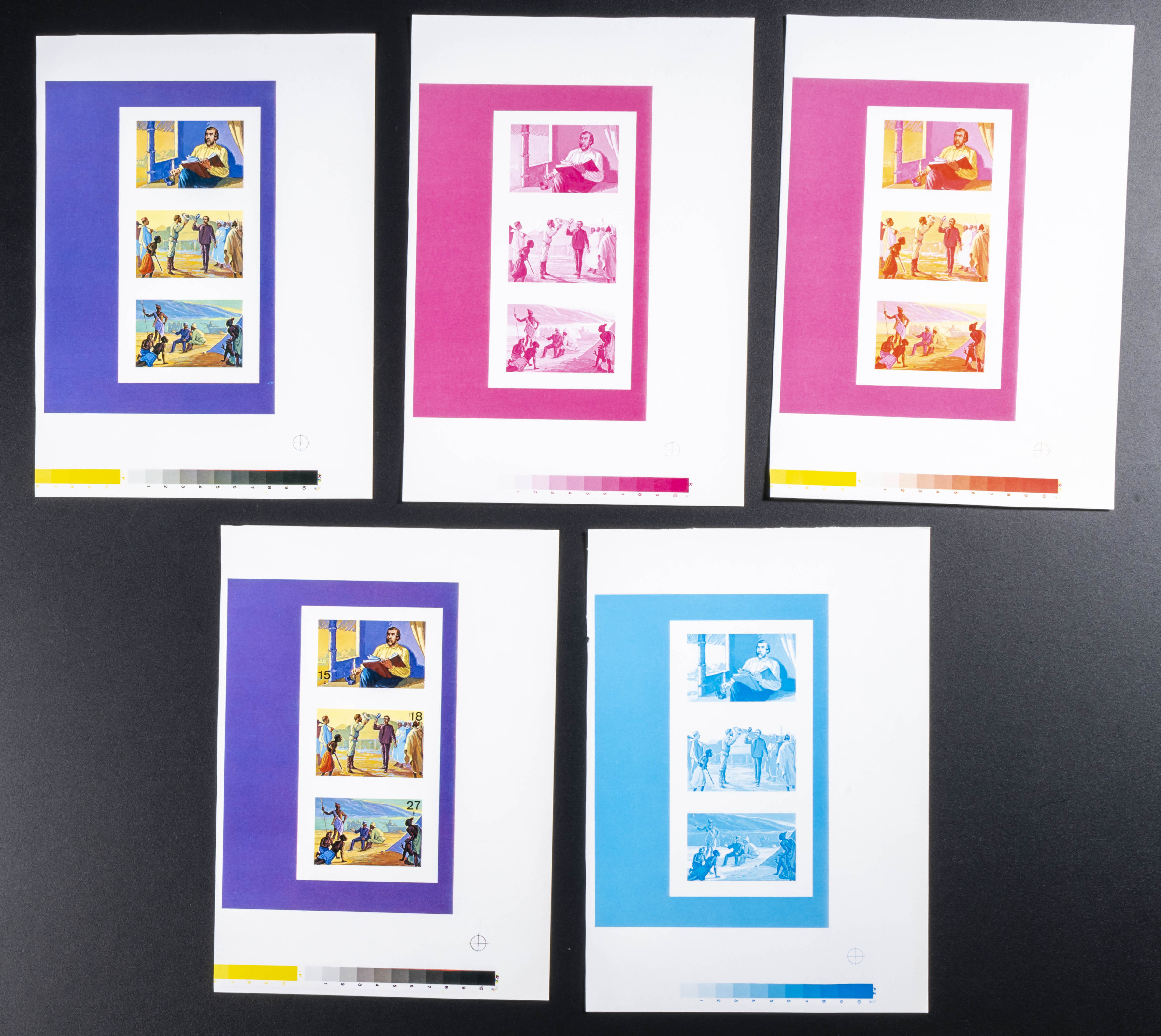 ★★Yvert B66. 1973. Livingstone, Stanley. Group of progressive plate proofs of the set. TO EXAM.