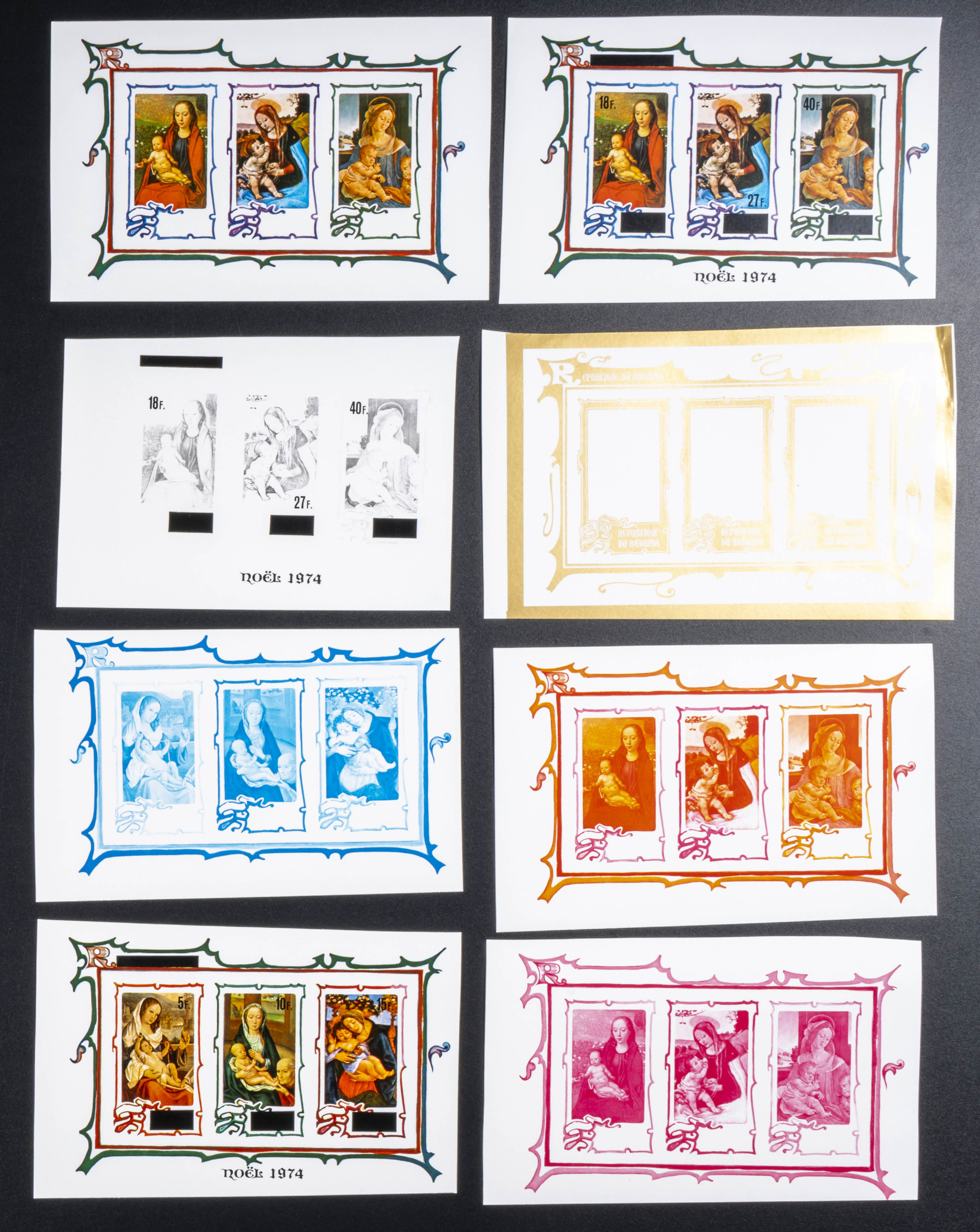 ★★Yvert B80/81. 1974. Christmas. Group of progressive plate proofs of the set. TO EXAM.