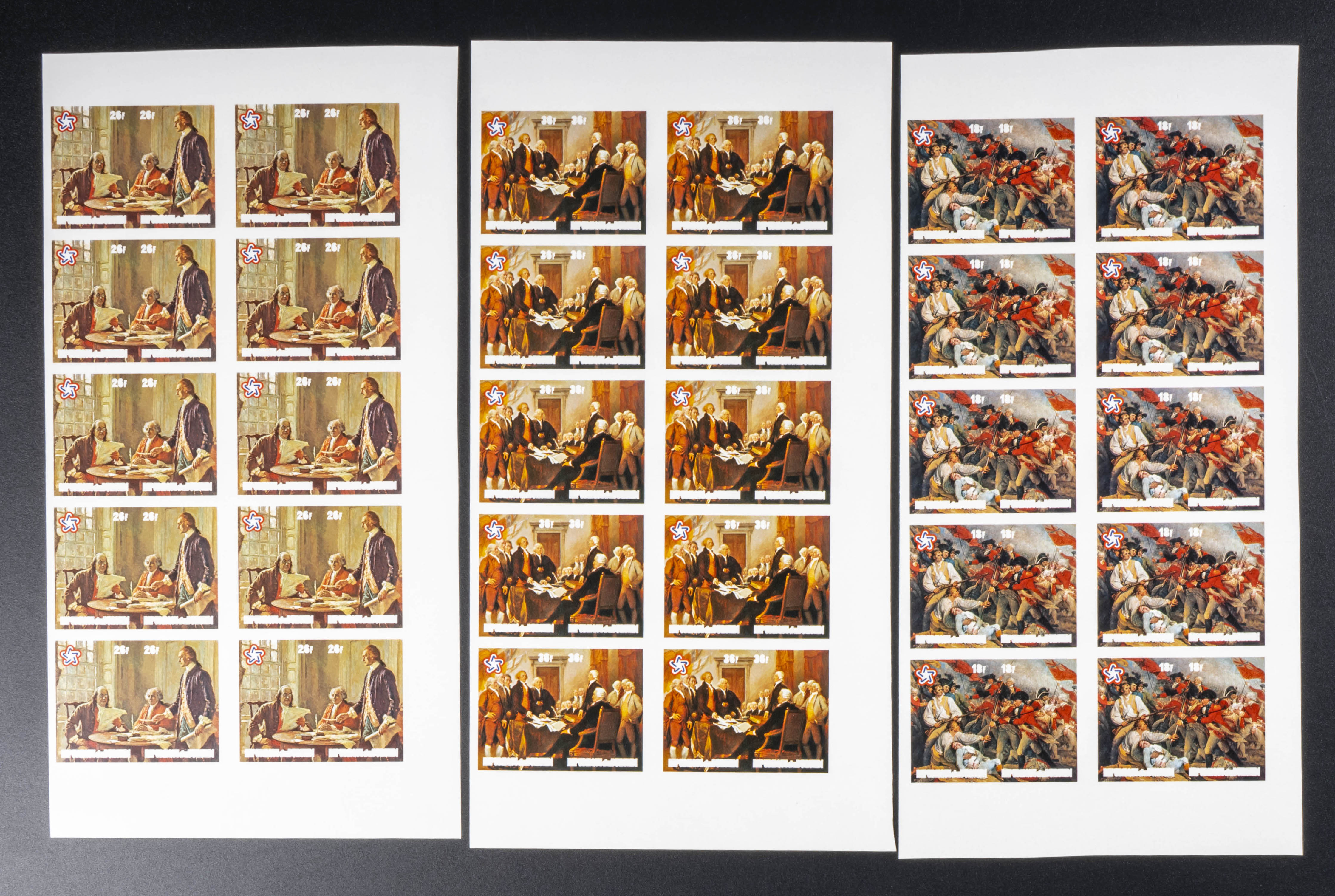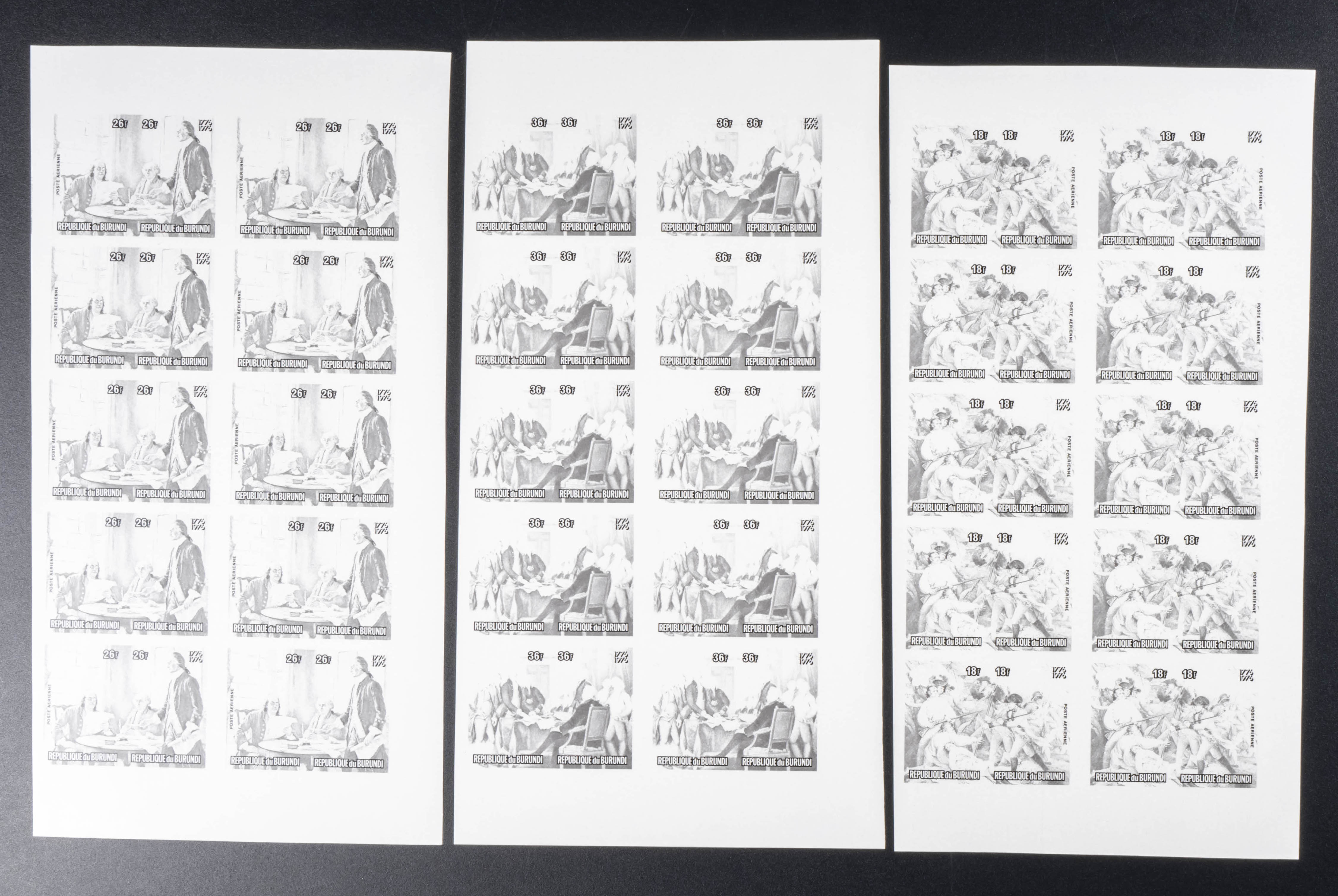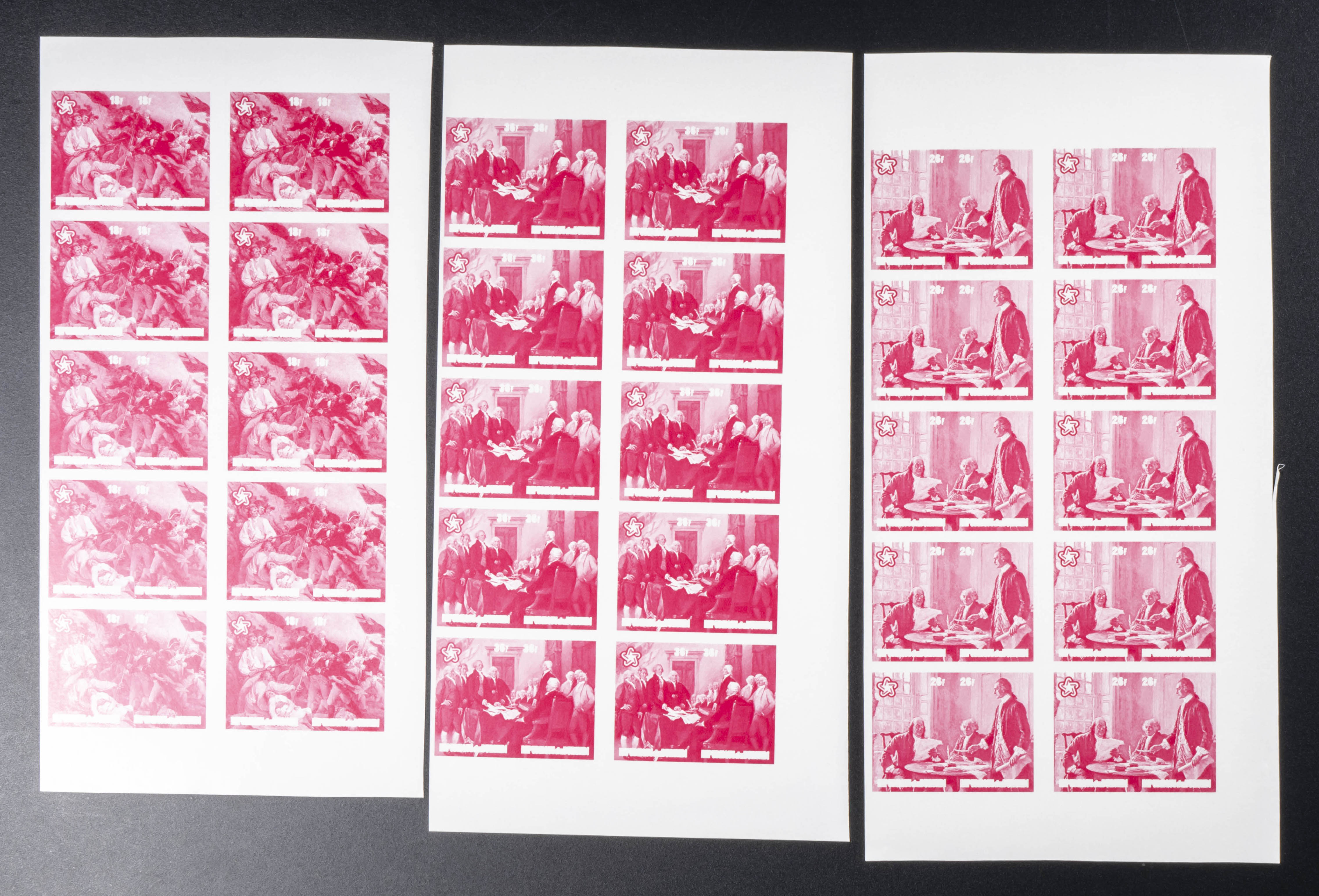 ★★Yvert 1284/89. 1976. US Bicentenary. Group of progressive plate proofs of the set. TO EXAM.
