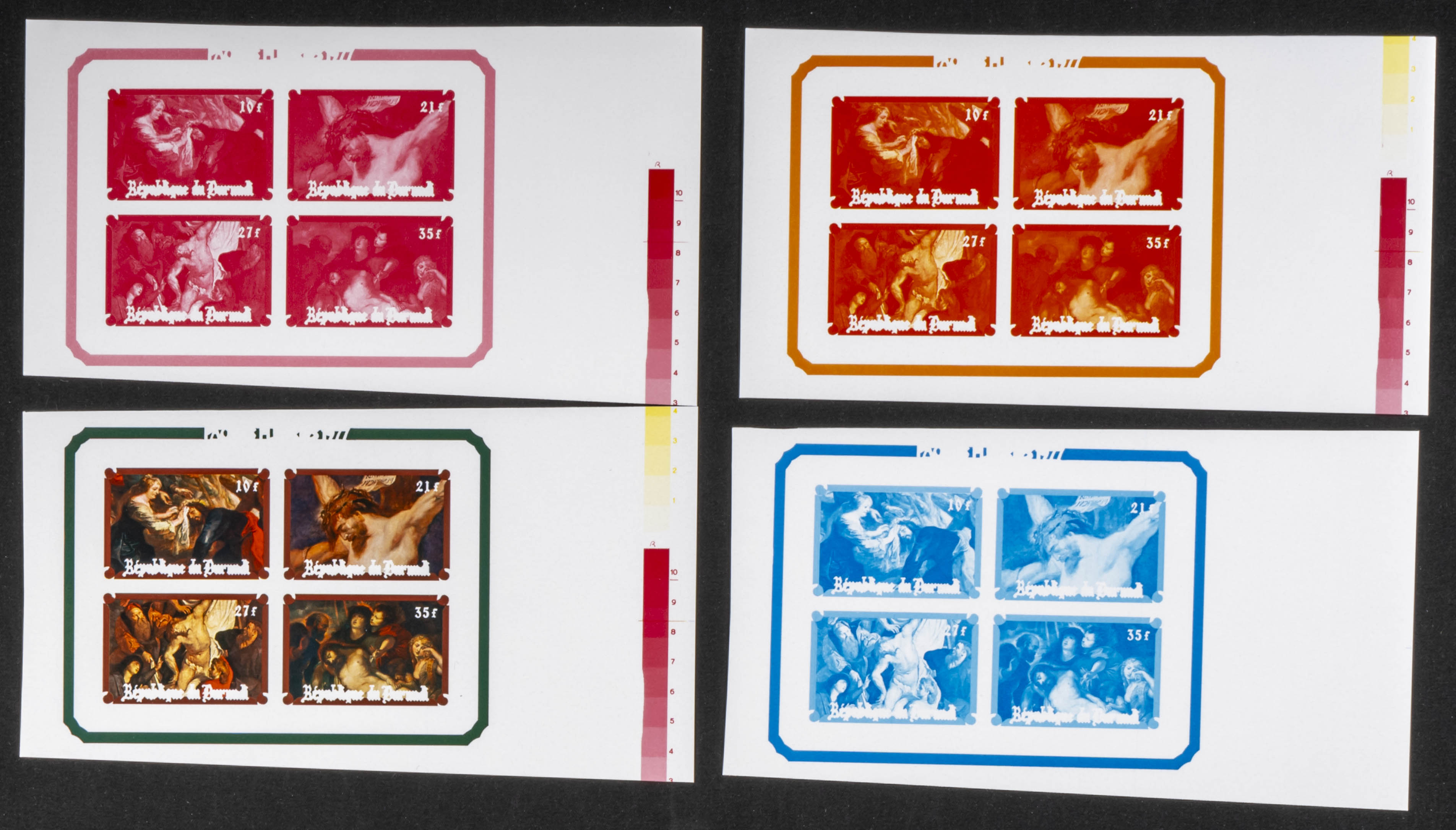 ★★Yvert B97. 1977. Easter. Group of progressive plate proofs of the set. TO EXAM.