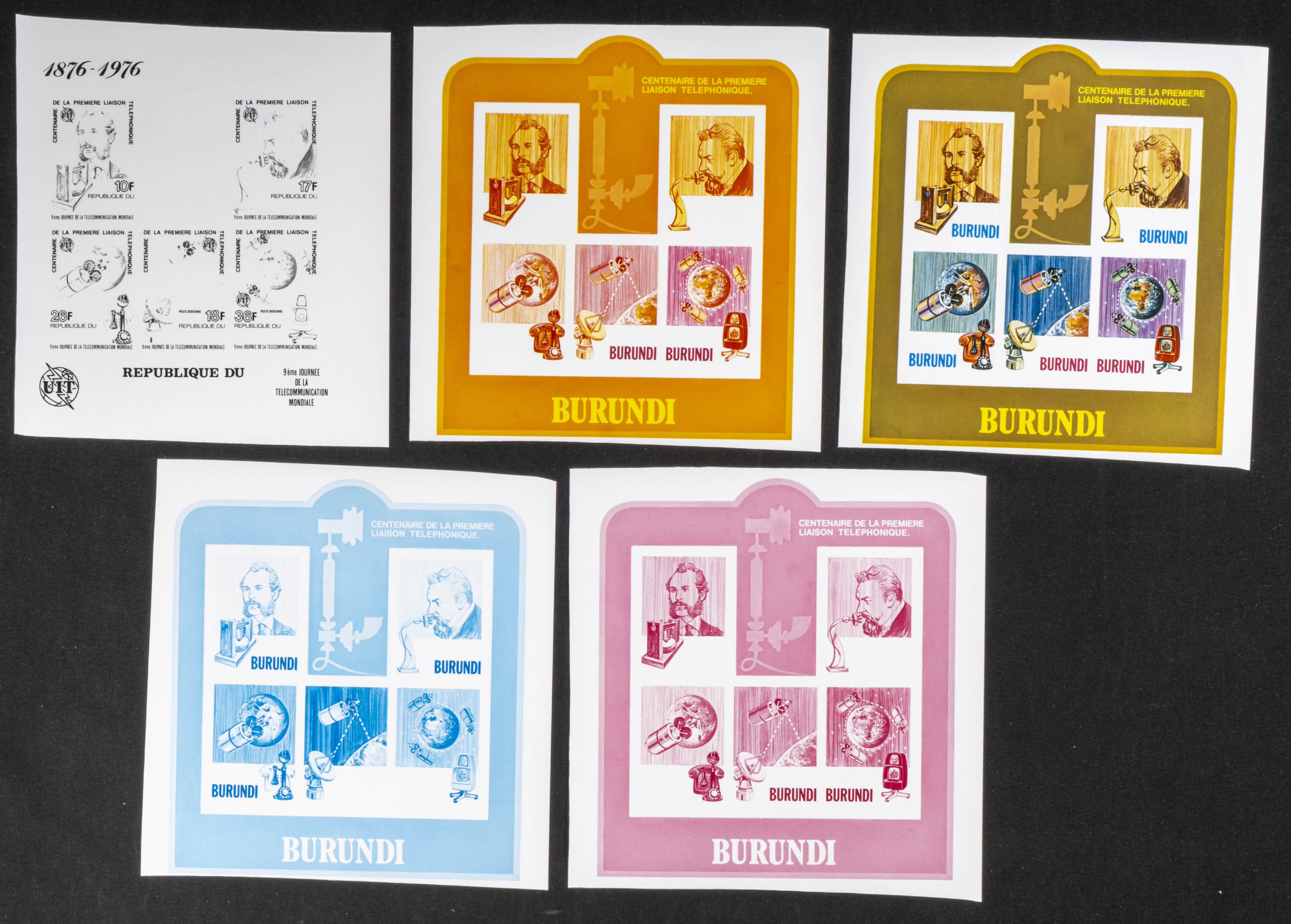 ★★Yvert B98. 1977. Telephone centenary. Group of progressive plate proofs of the set. TO EXAM.