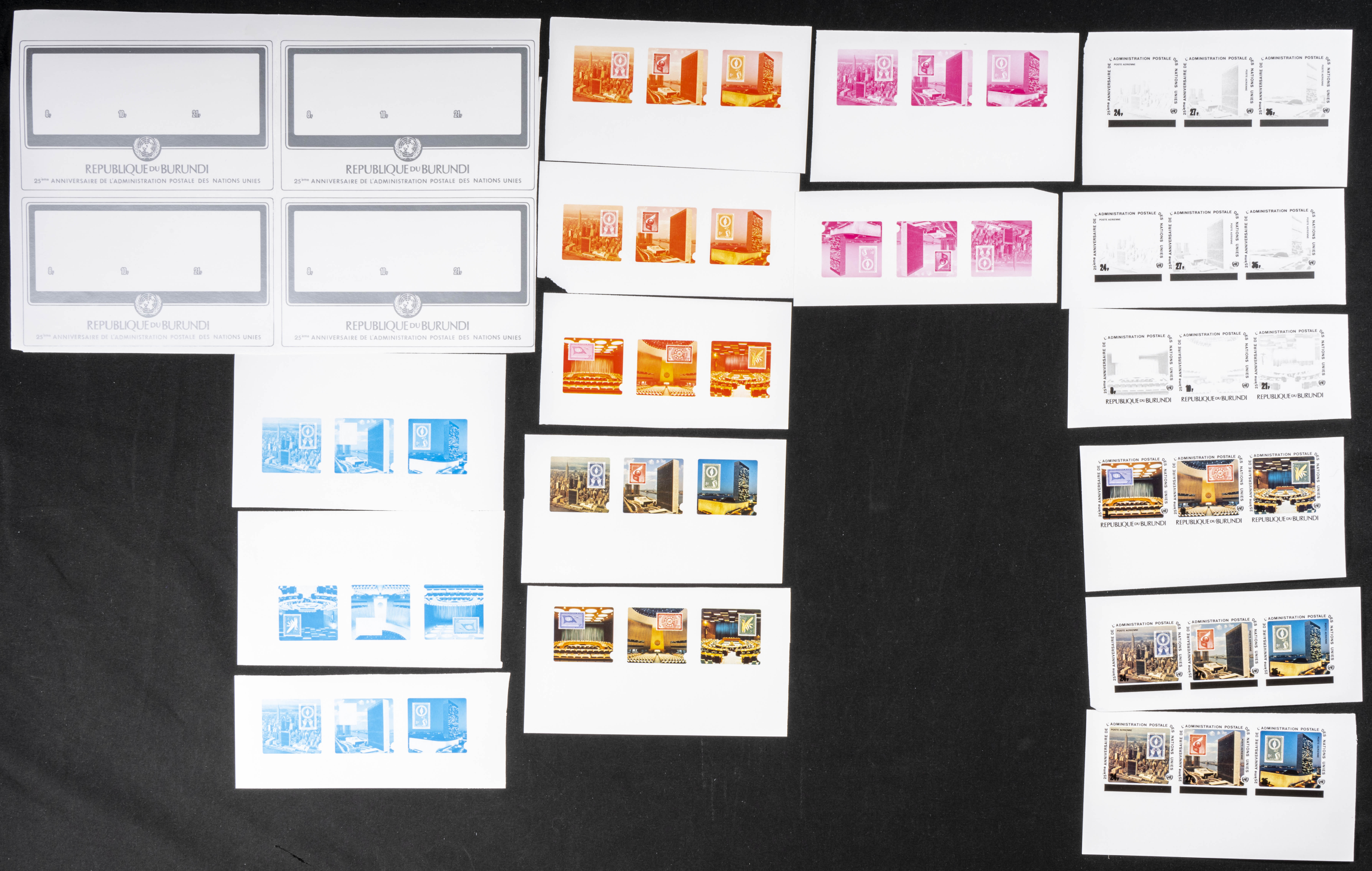 ★★Yvert B99/100. 1977. 25 º Aniversaire U.N.O. post. Group of progressive plate proofs of the set. TO EXAM.