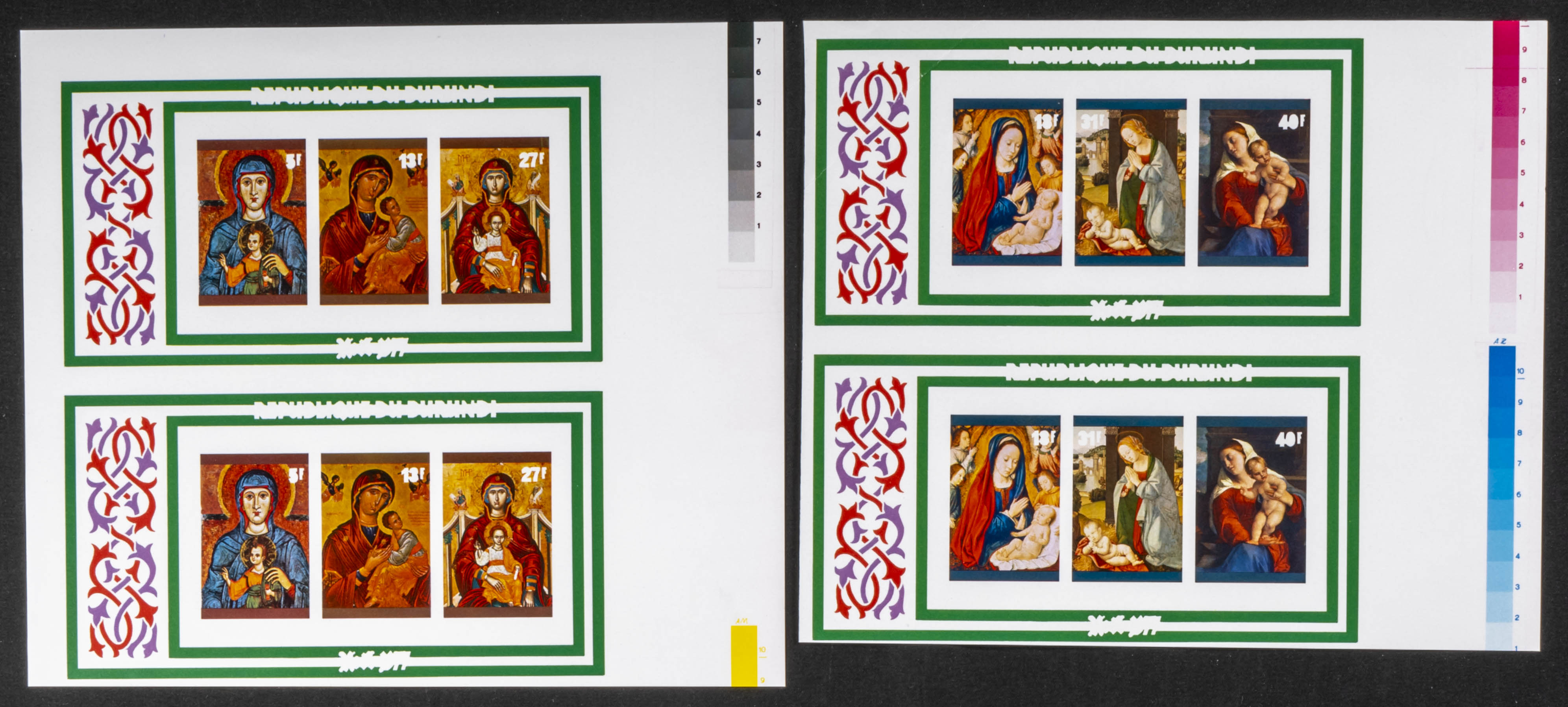 ★★Yvert B103/04. 1977. Christmas. Group of progressive plate proofs of the set. TO EXAM.