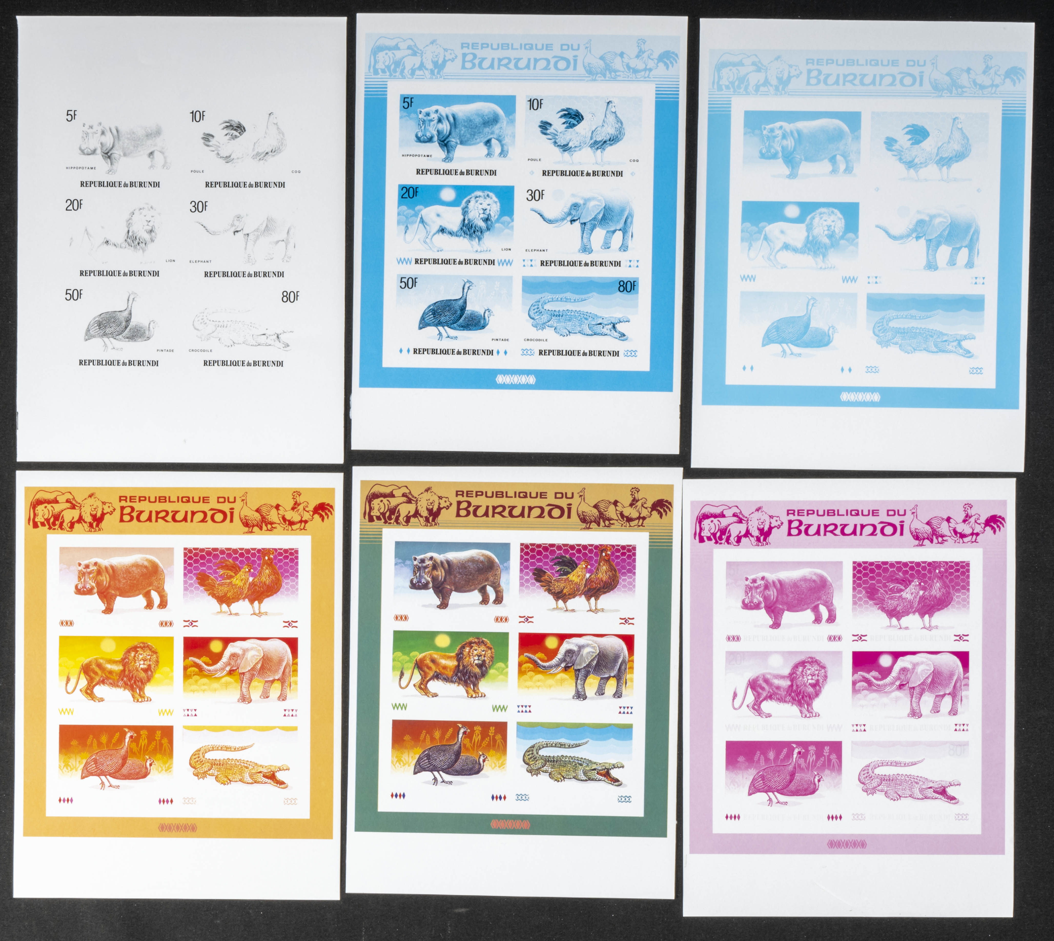 ★★Yvert B123. 1991. Animals. Group of progressive plate proofs of the set. TO EXAM.