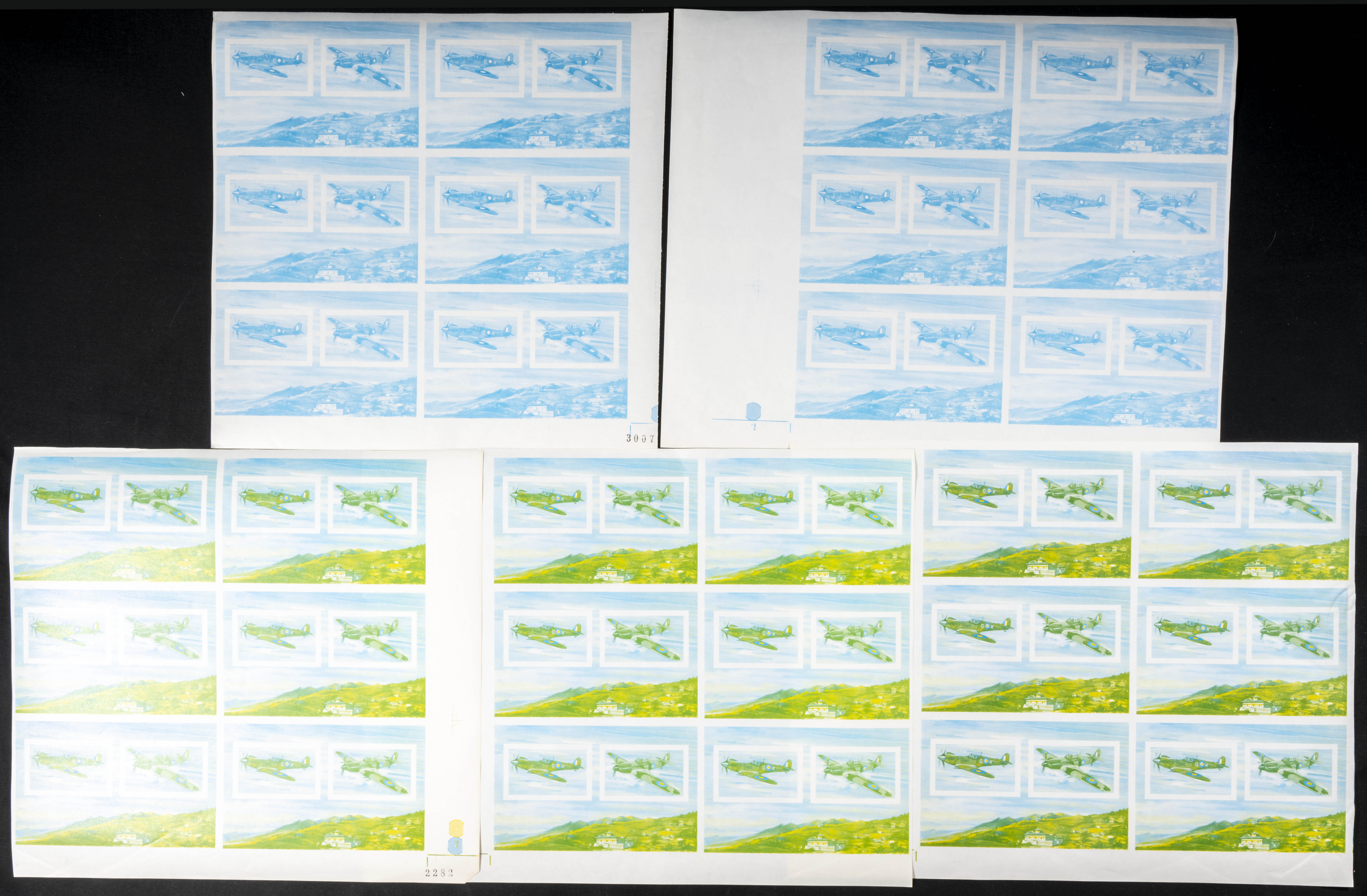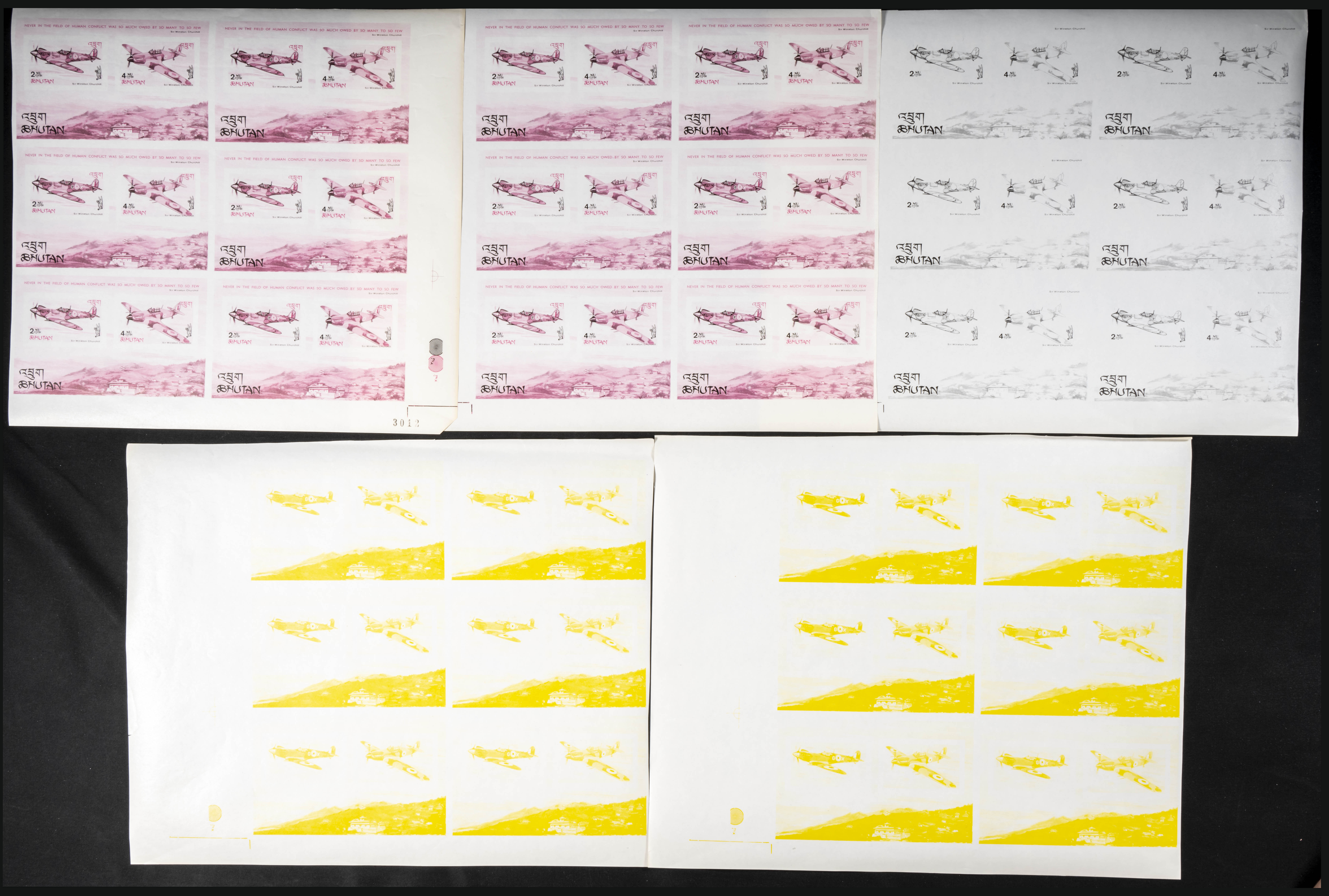 ★★Yvert B7. 1967. Battle of Britain. Group of progressive plate proofs of the set. TO EXAM.