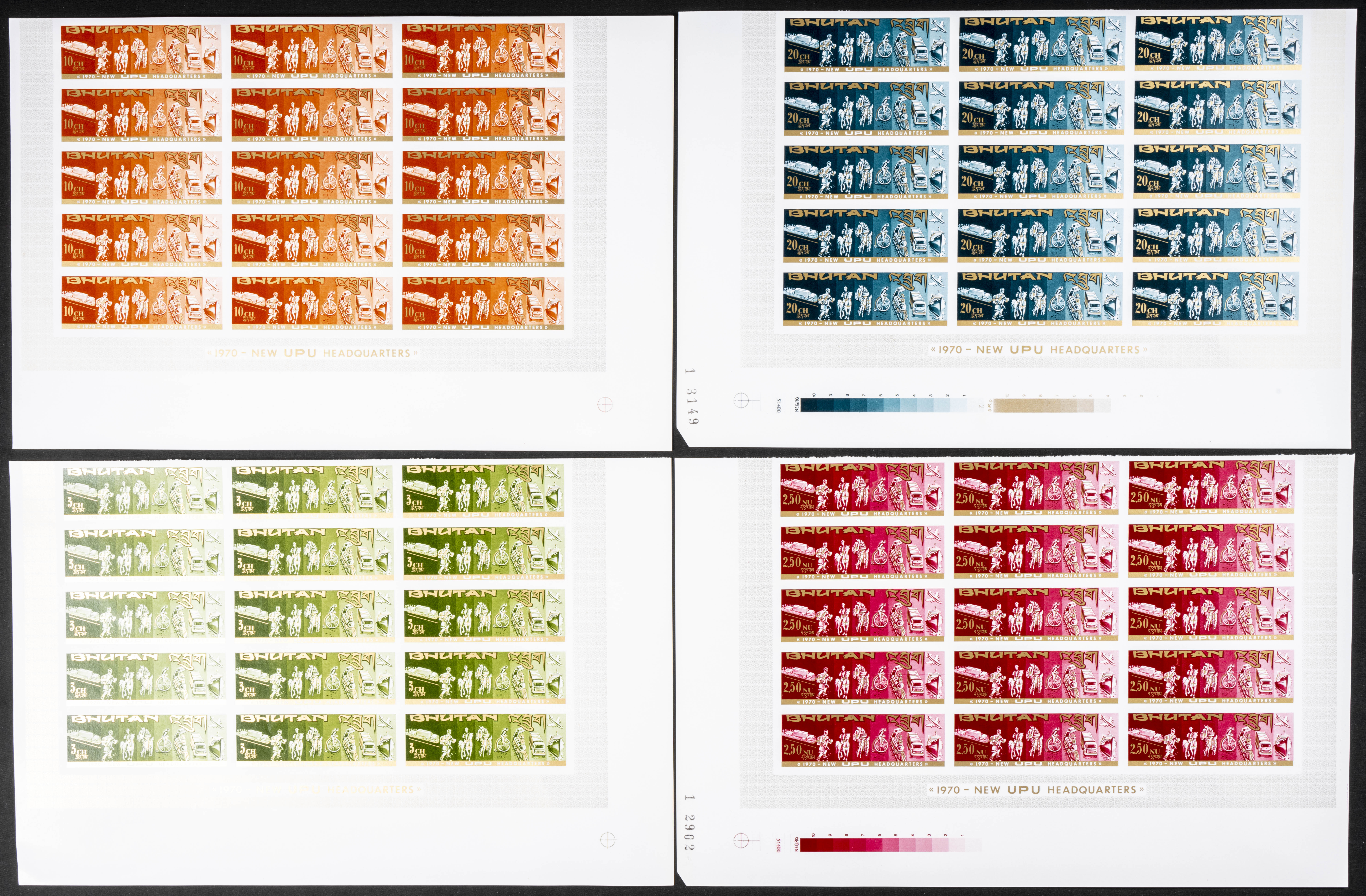 ★★Yvert . 1970. U.P.U. building. Group of IMPERFORATED sets. (Michel: 335/38). TO EXAM.
