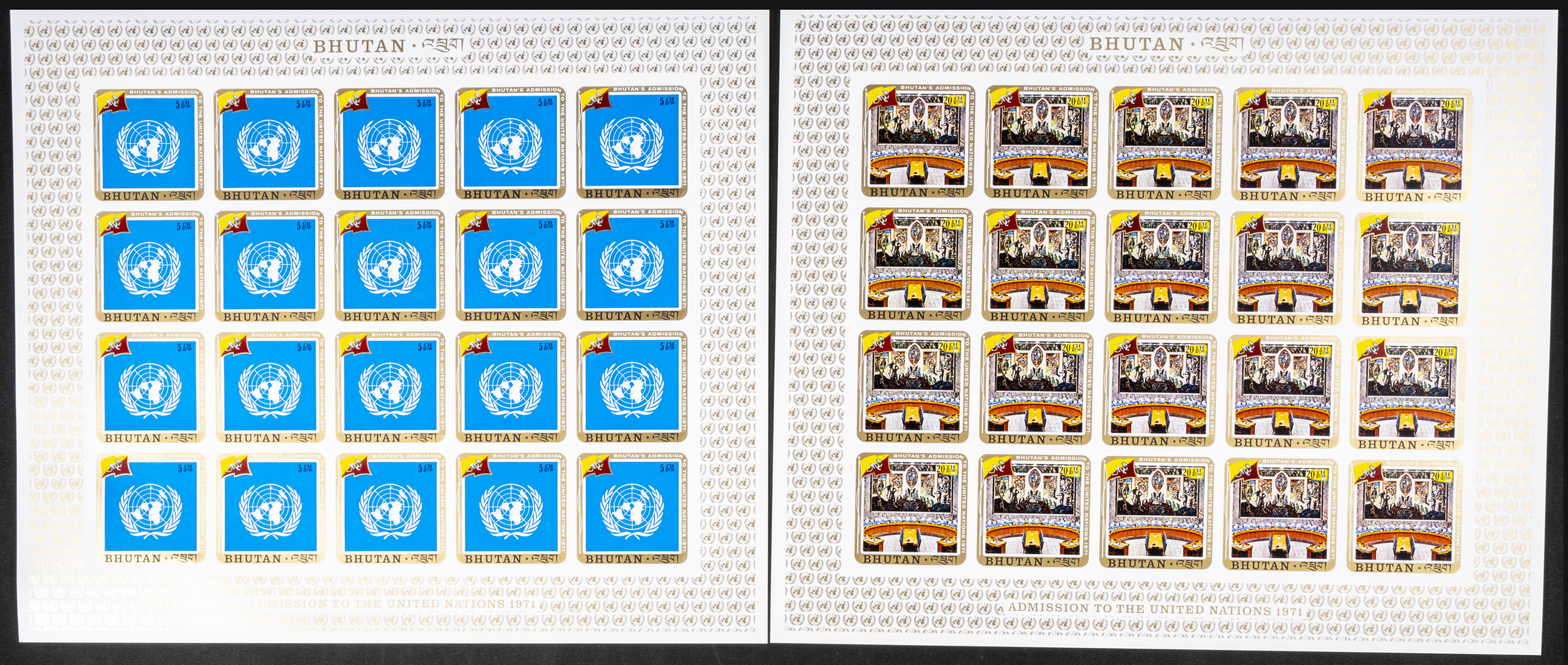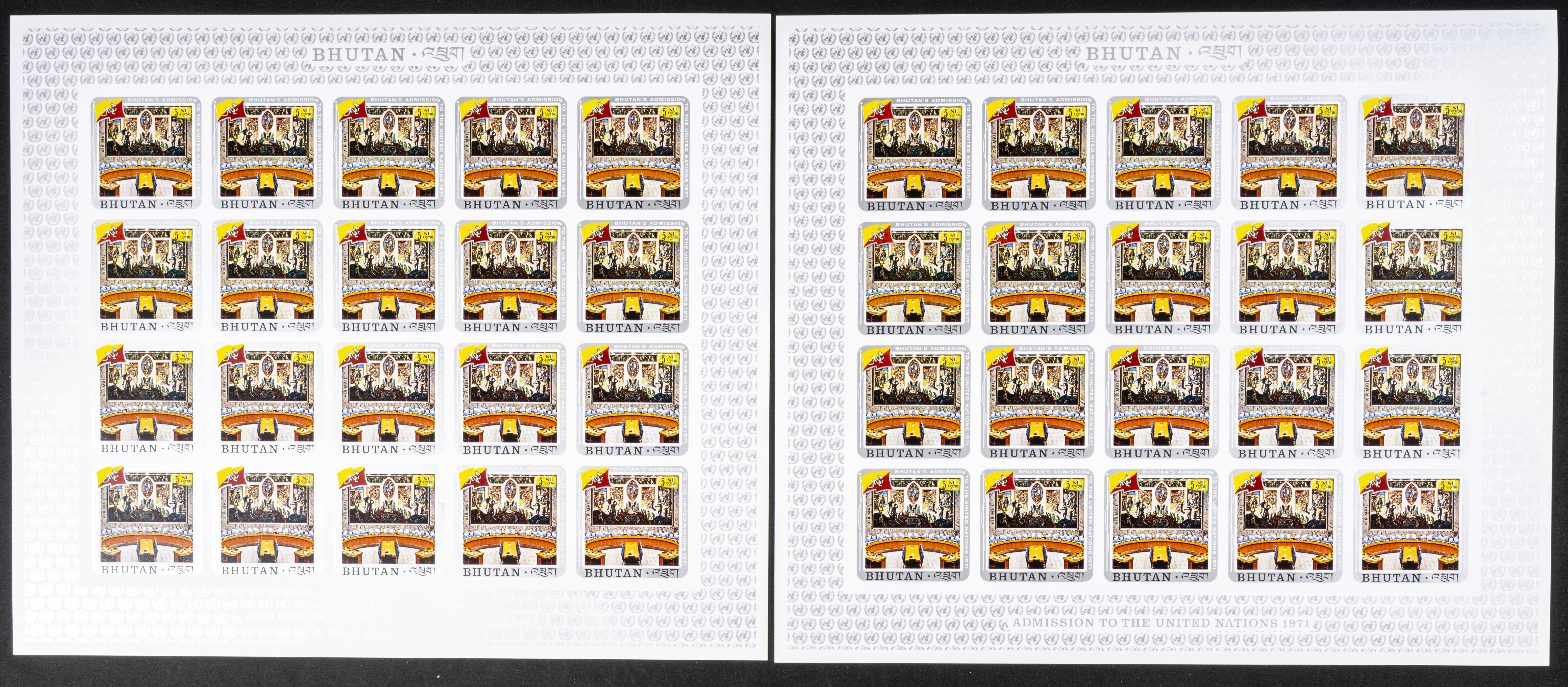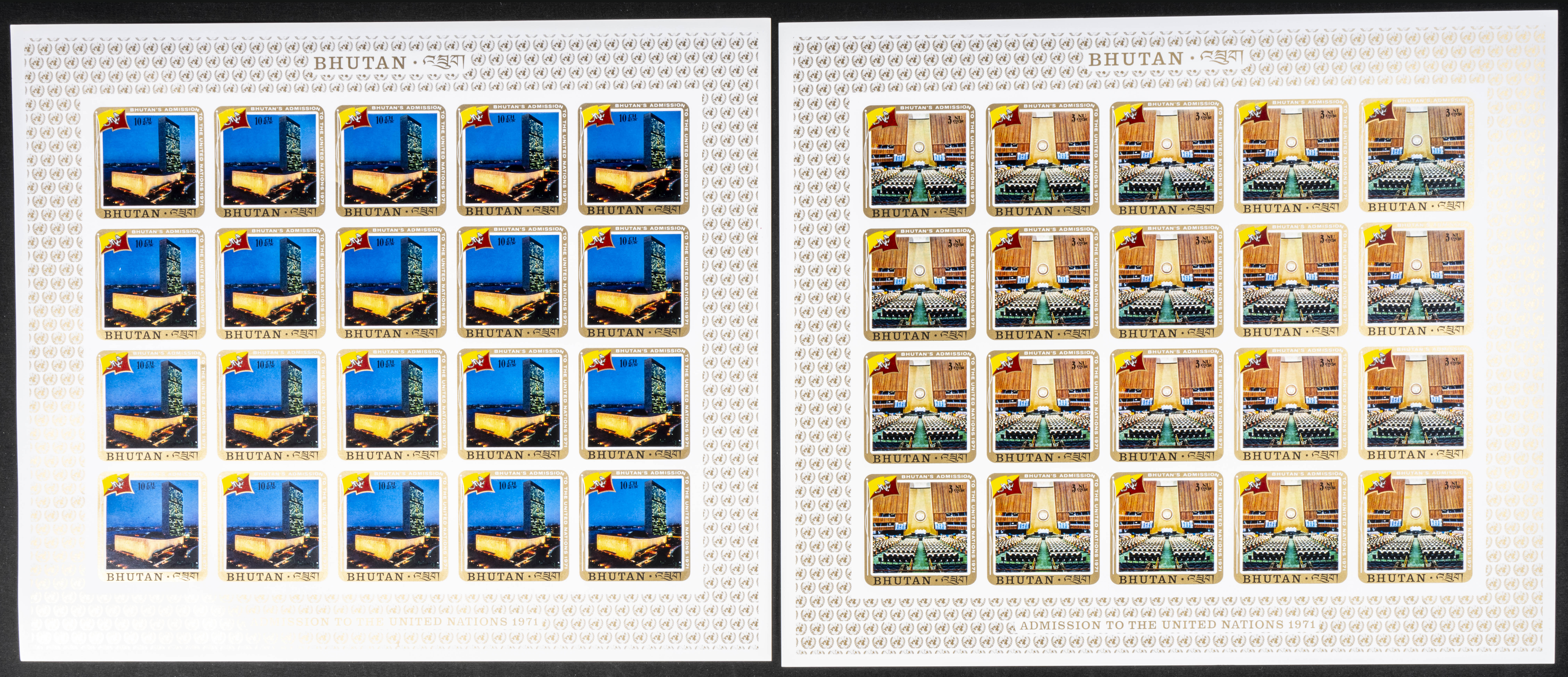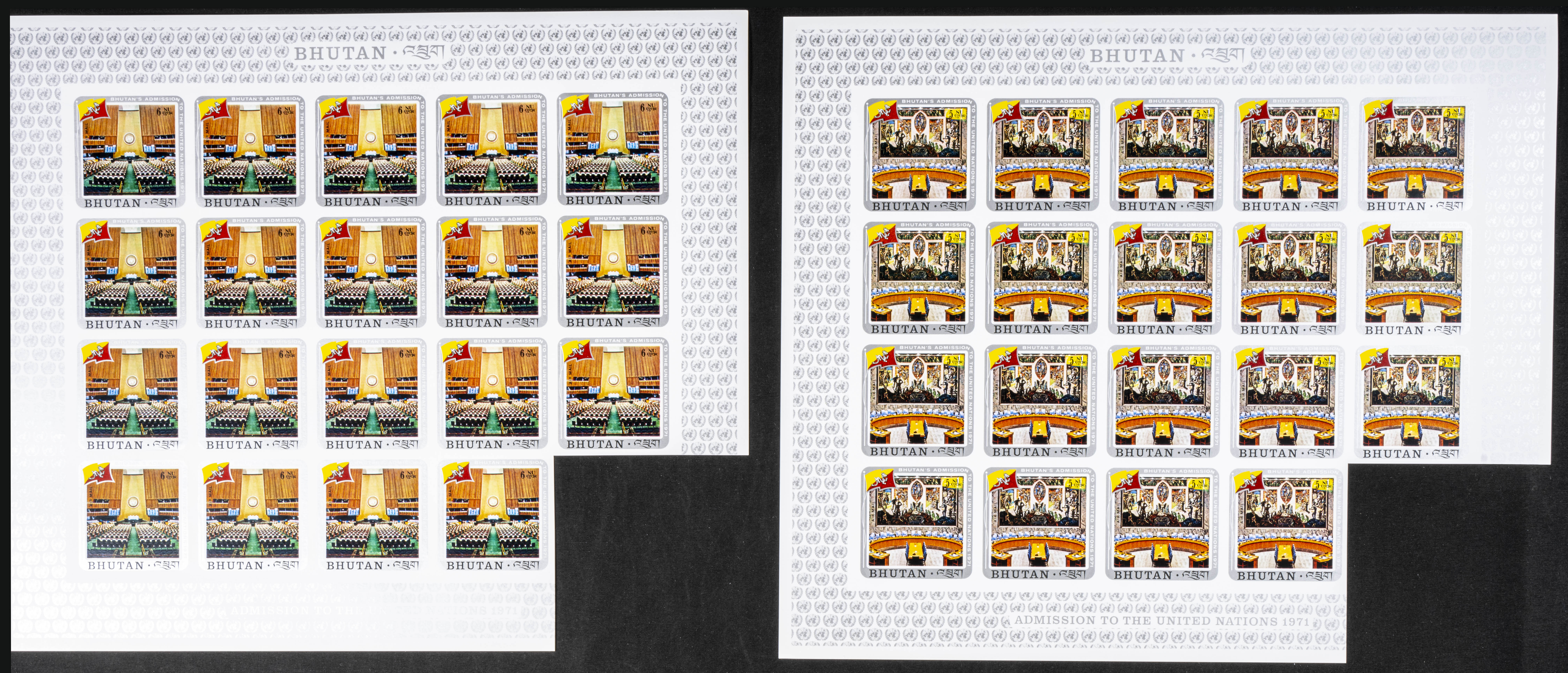 ★★Yvert 314/7+A. 1971. U.N.O. membership. Group of IMPERFORATED sets. TO EXAM.