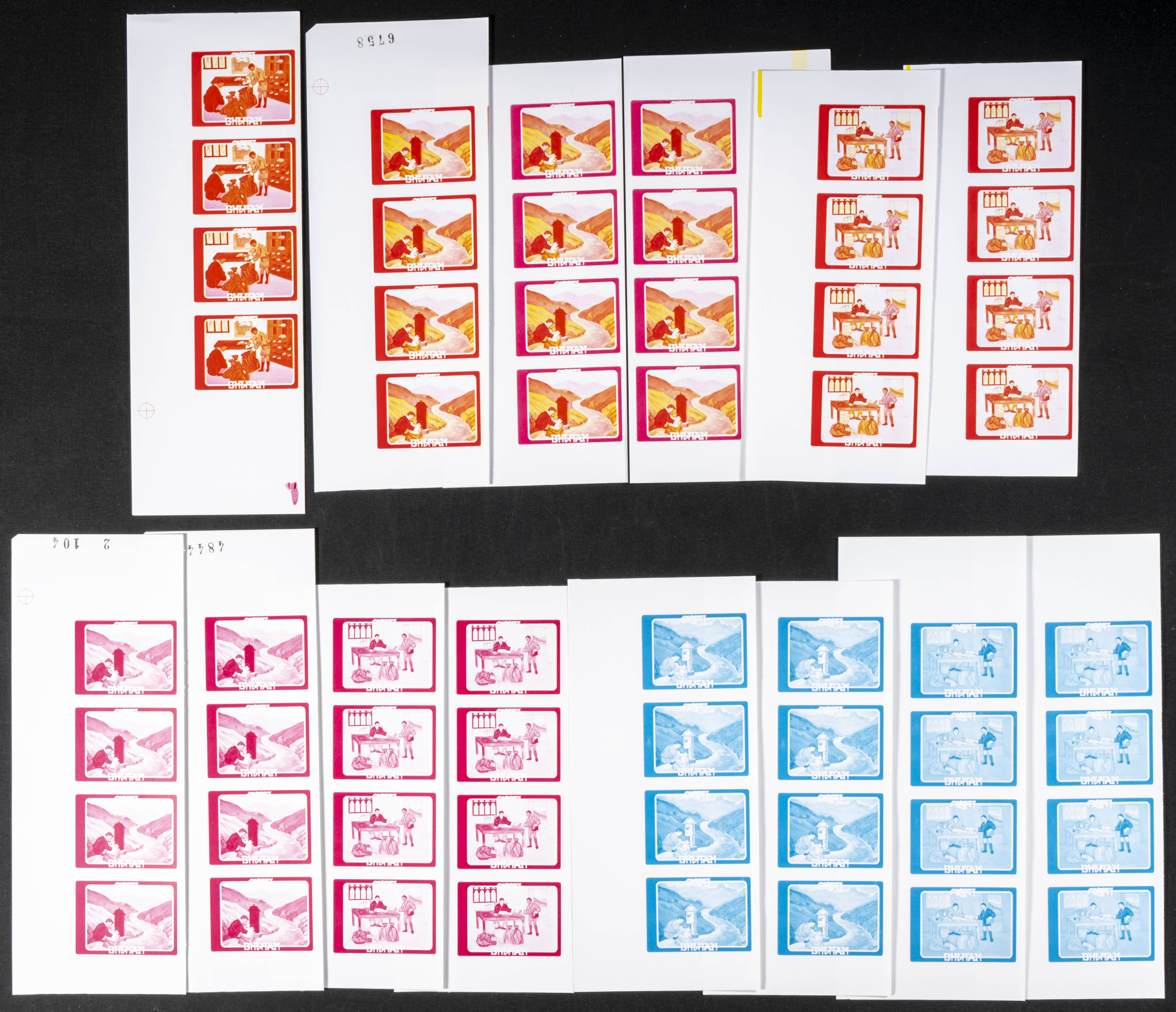 ★★Yvert 427/32+A. 1973. Indipex. Group of progressive plate proofs of the set. TO EXAM.