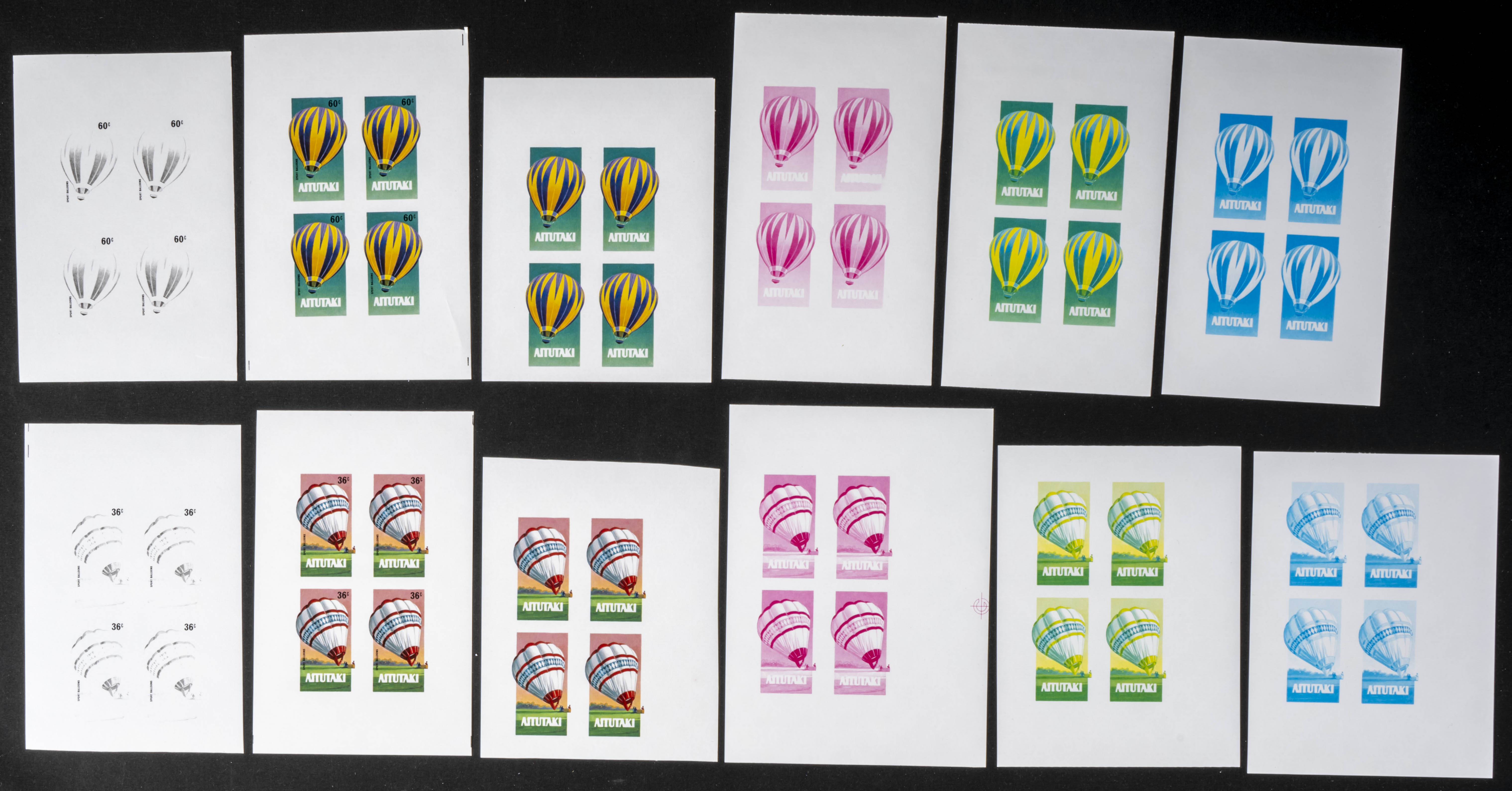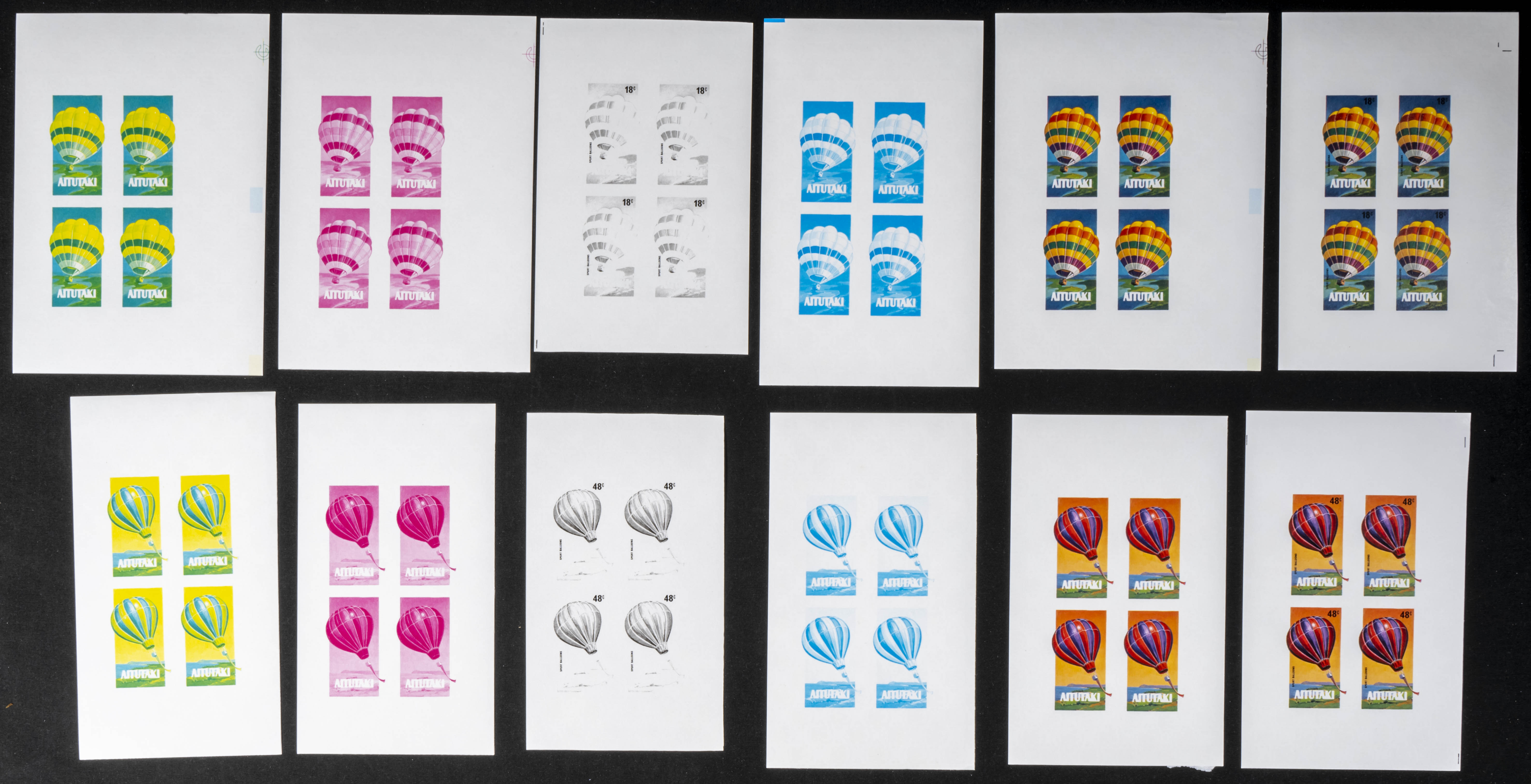 ★★Yvert 351/54. 1983. Aviation bi-centenary, ballooning. Group of progressive plate proofs of the set. TO EXAM.