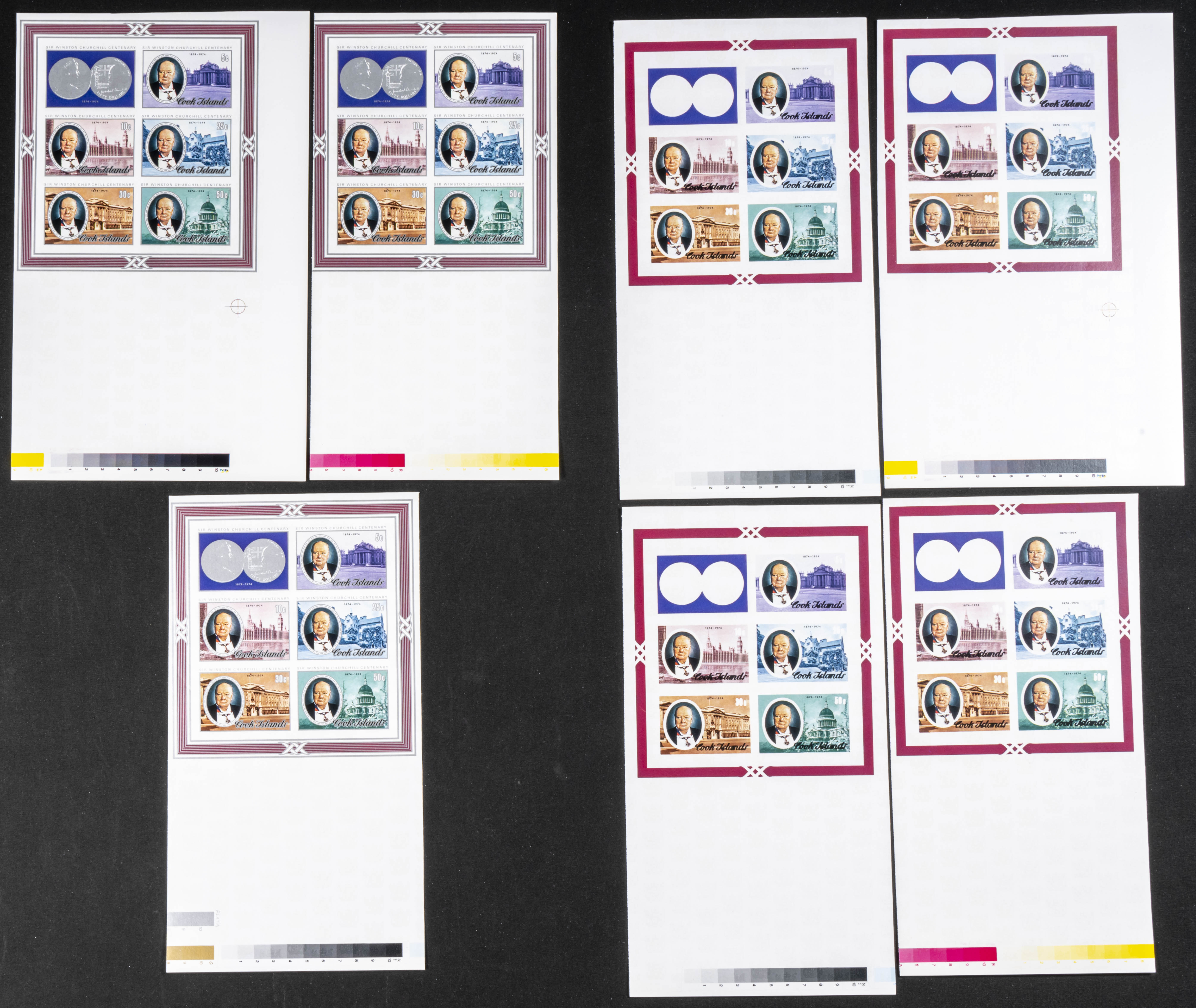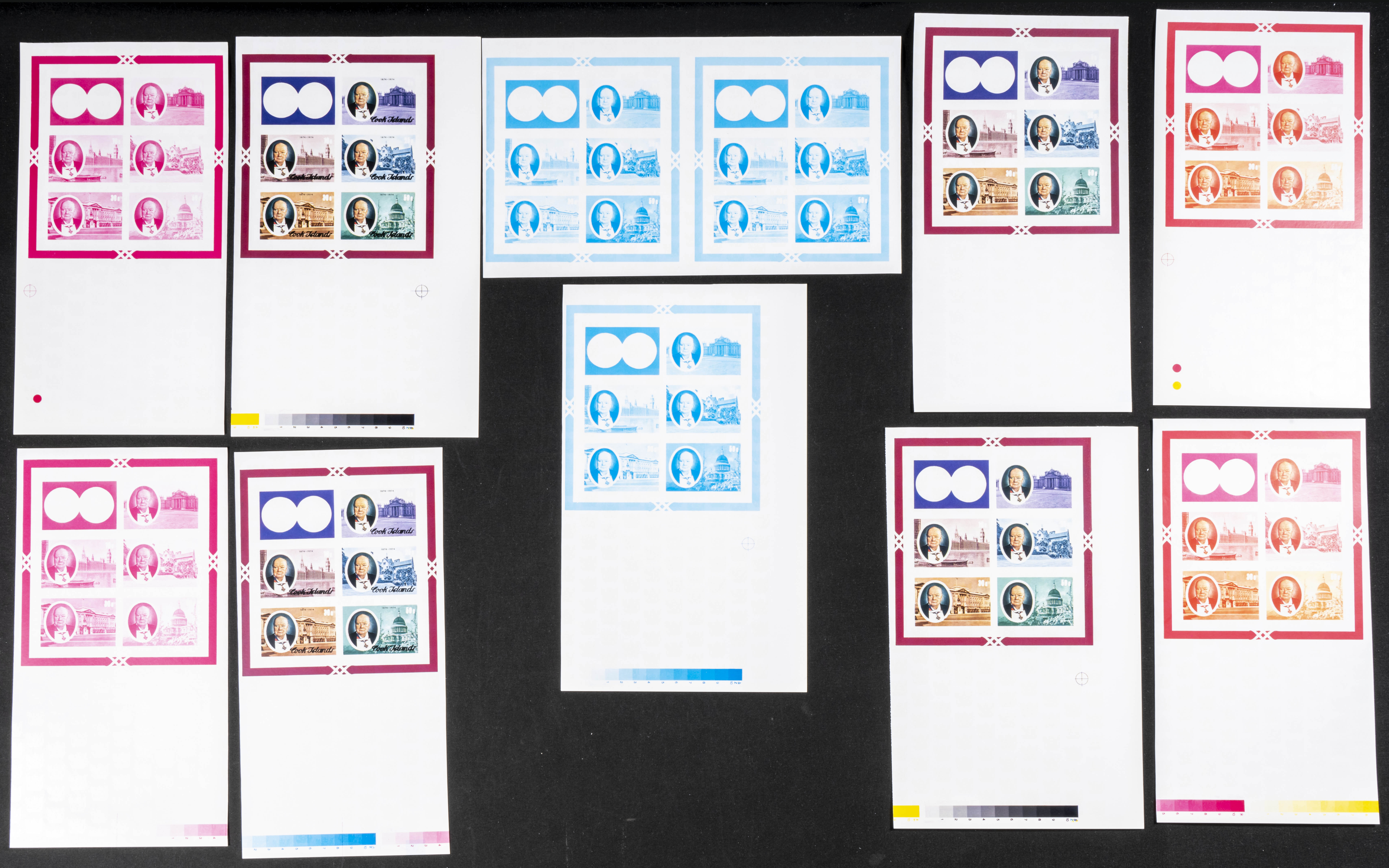 ★★Yvert B40. 1974. Sir Winston Churchill. Group of progressive plate proofs of the set. TO EXAM.