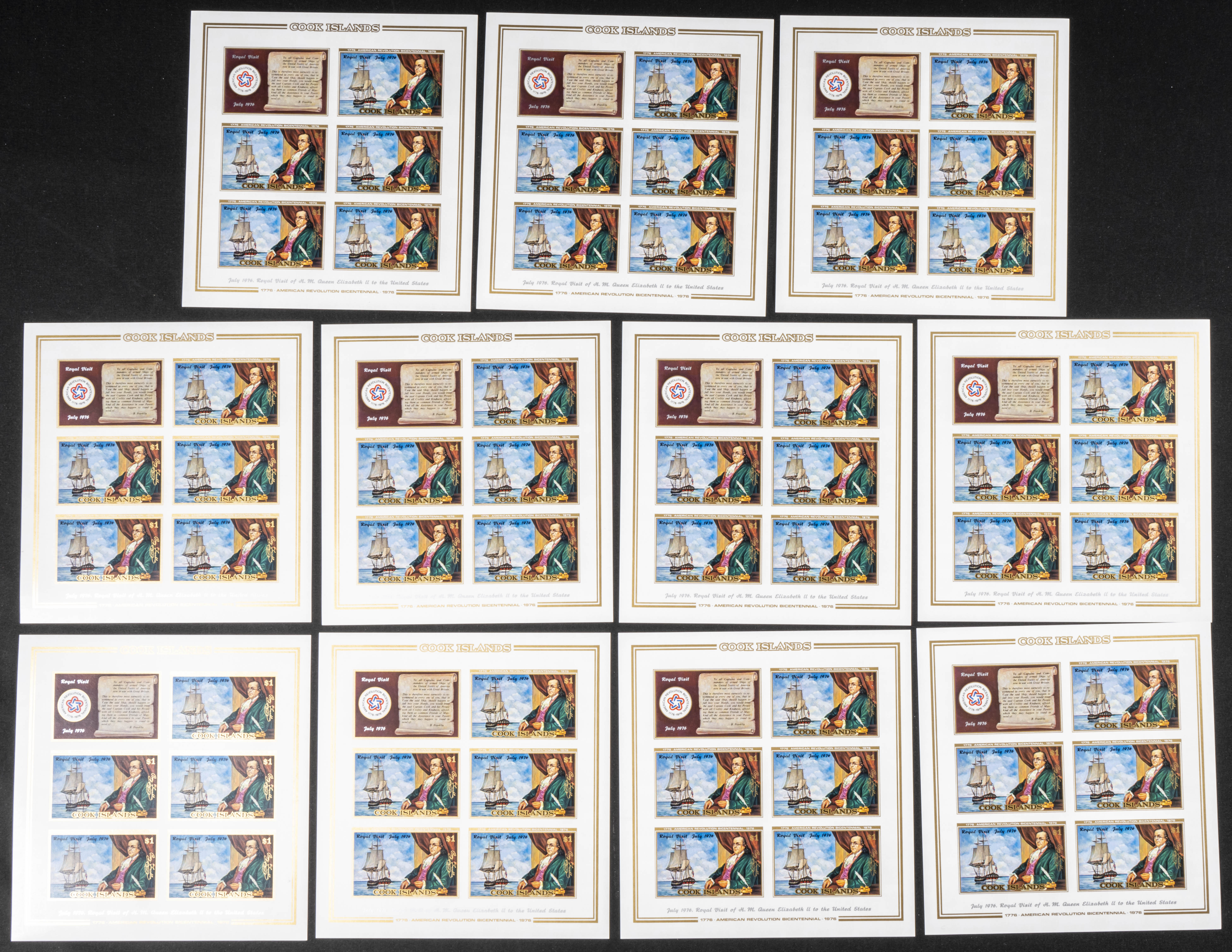 ★★Yvert 436/37. 1976. US bi-centenary. Group of IMPERFORATED sets. TO EXAM.