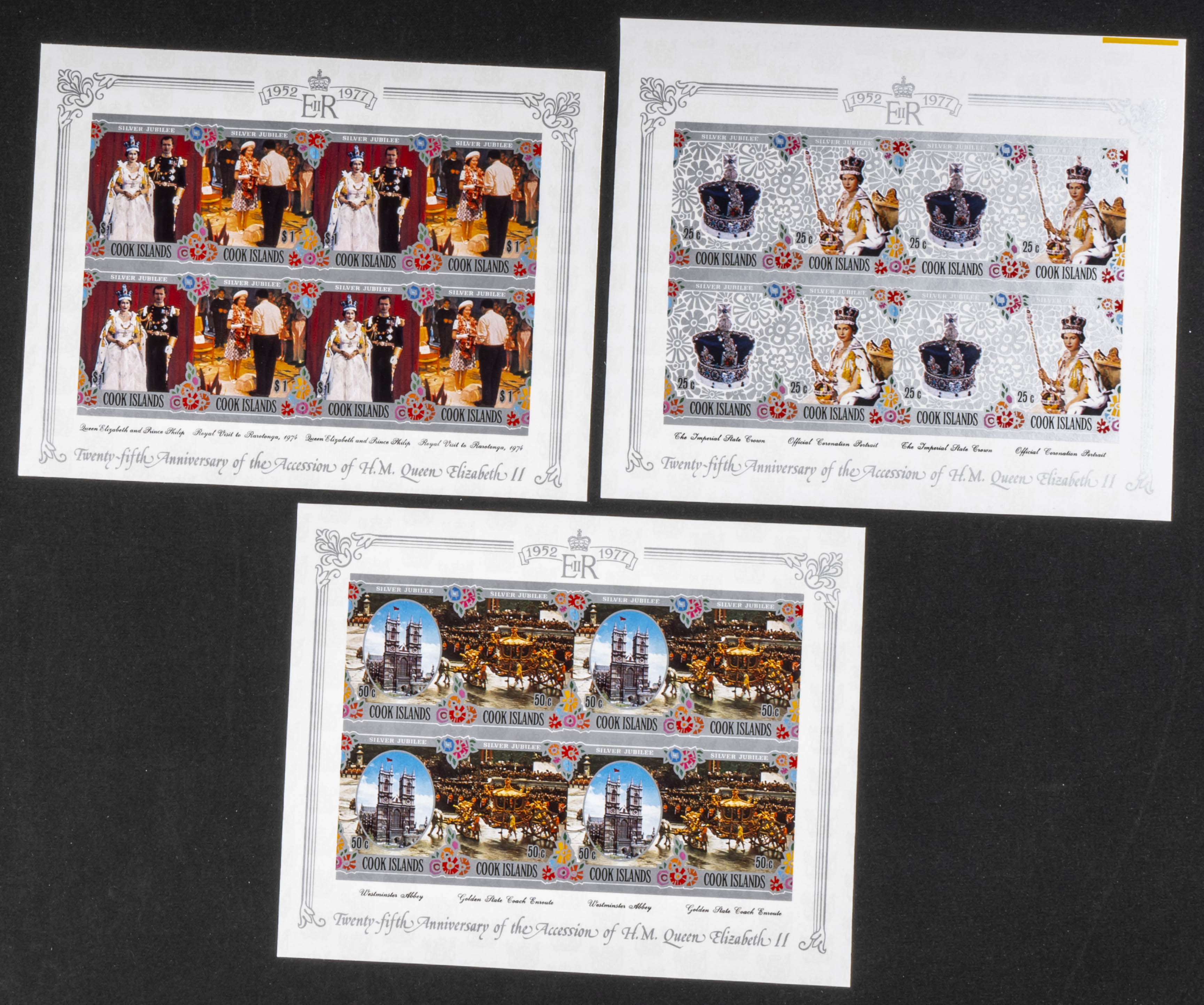 ★★Yvert 454/59. 1977. Silver jubilee. Group of IMPERFORATED sets. TO EXAM.