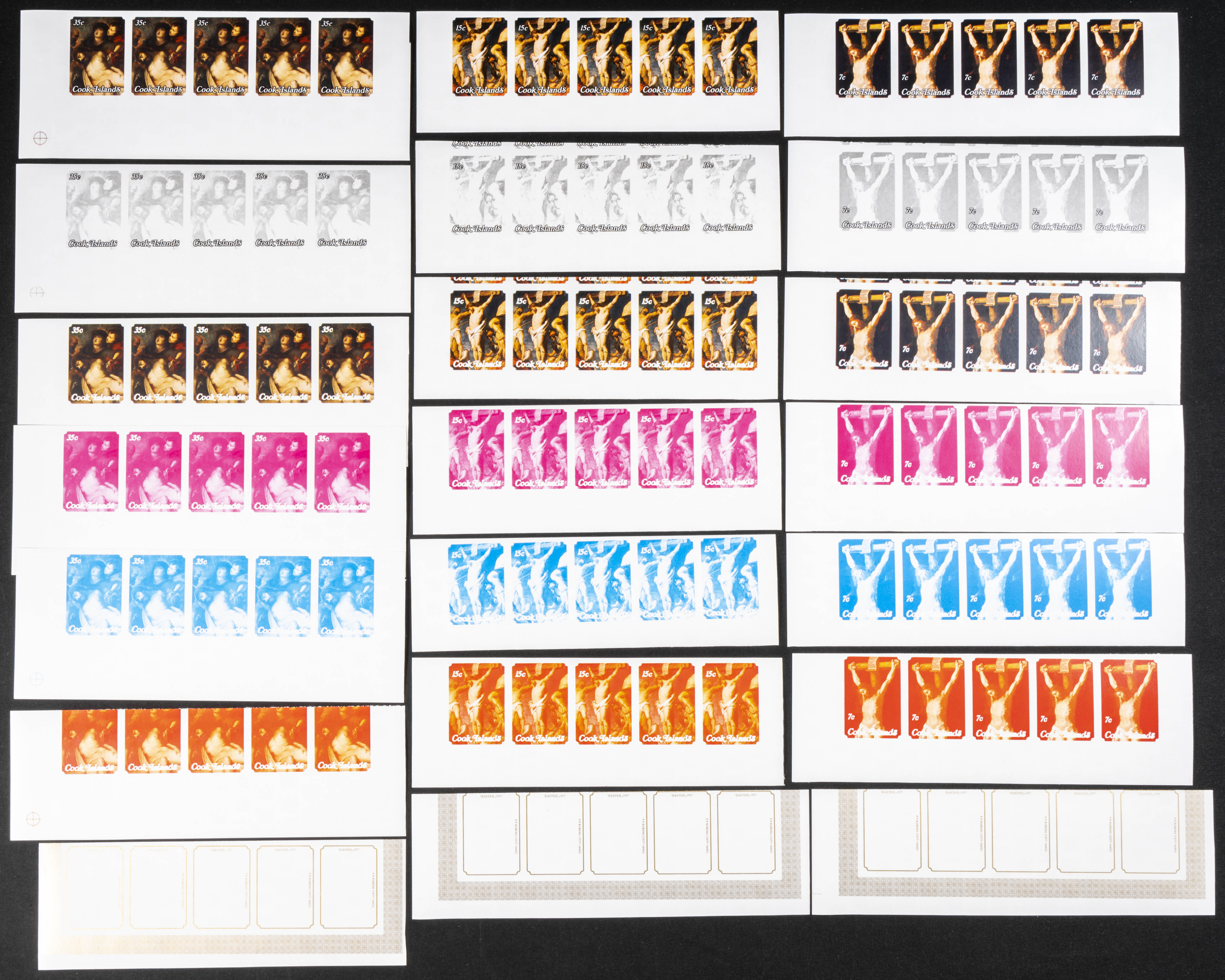 ★★Yvert 460/62. 1977. Easter, Rubens. Group of progressive plate proofs of the set. TO EXAM.
