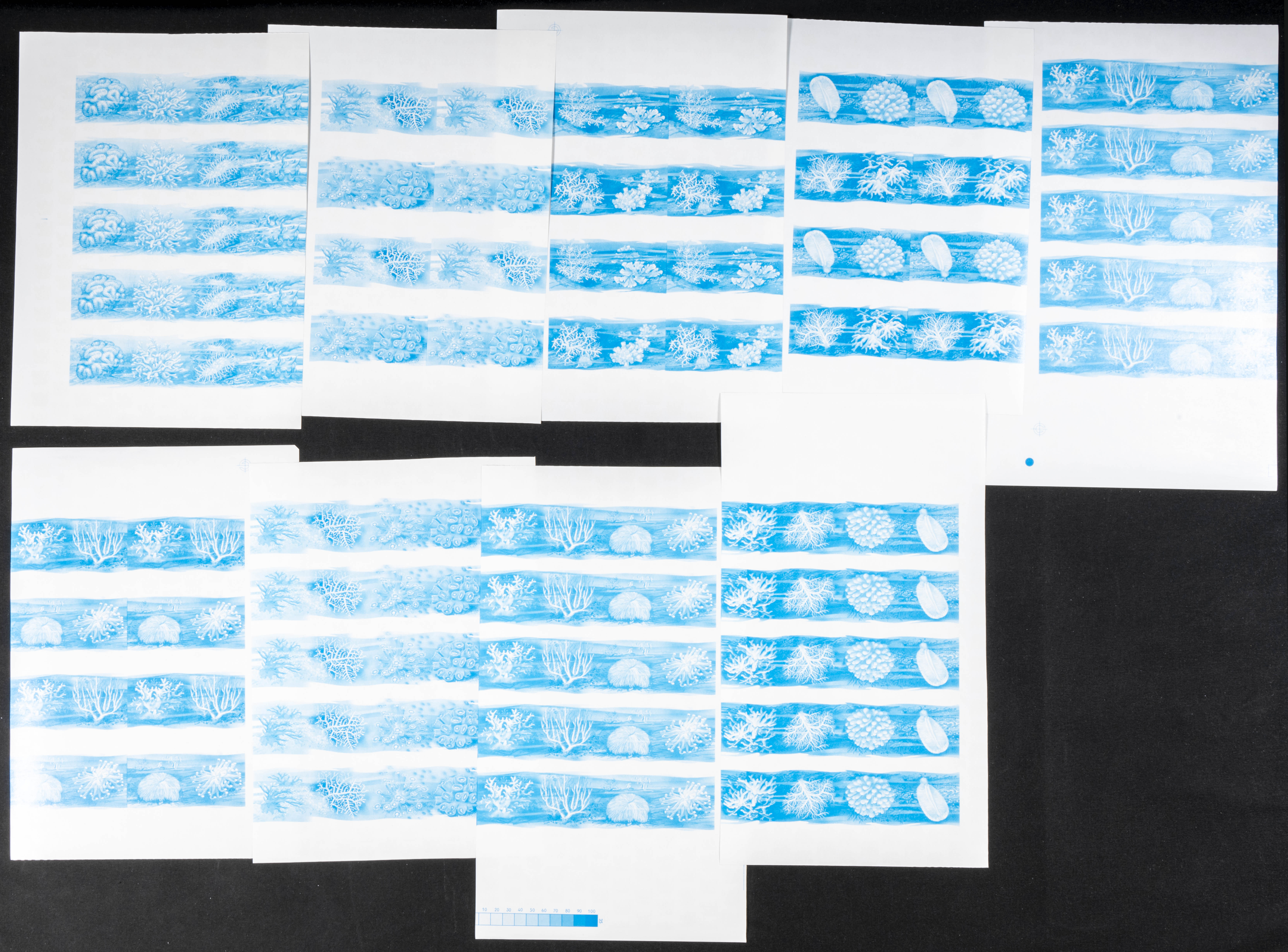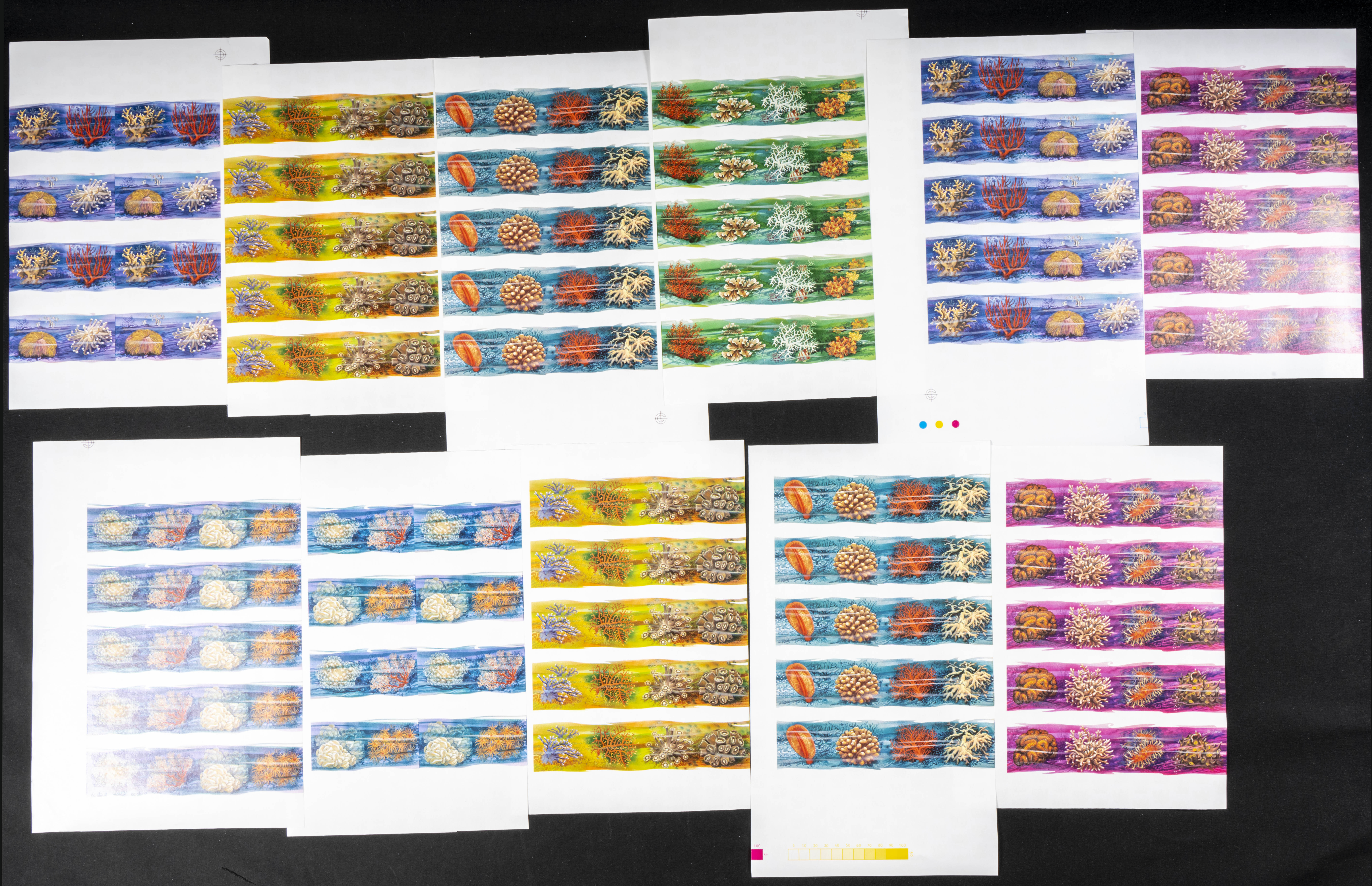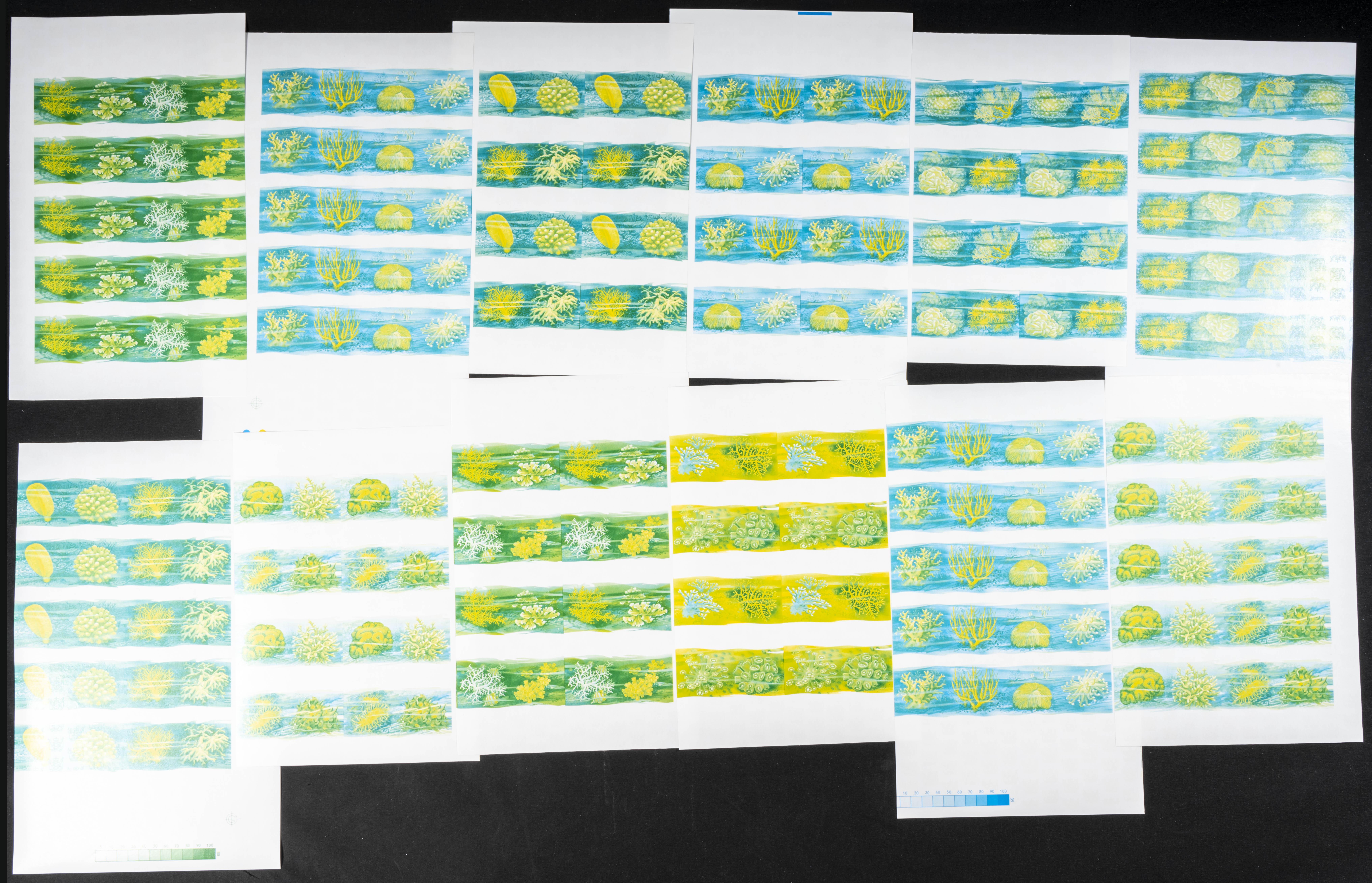 ★★Yvert . 1980. Definitives, corals. Group of progressive plate proofs of the set. (Michel: 691/67). TO EXAM.