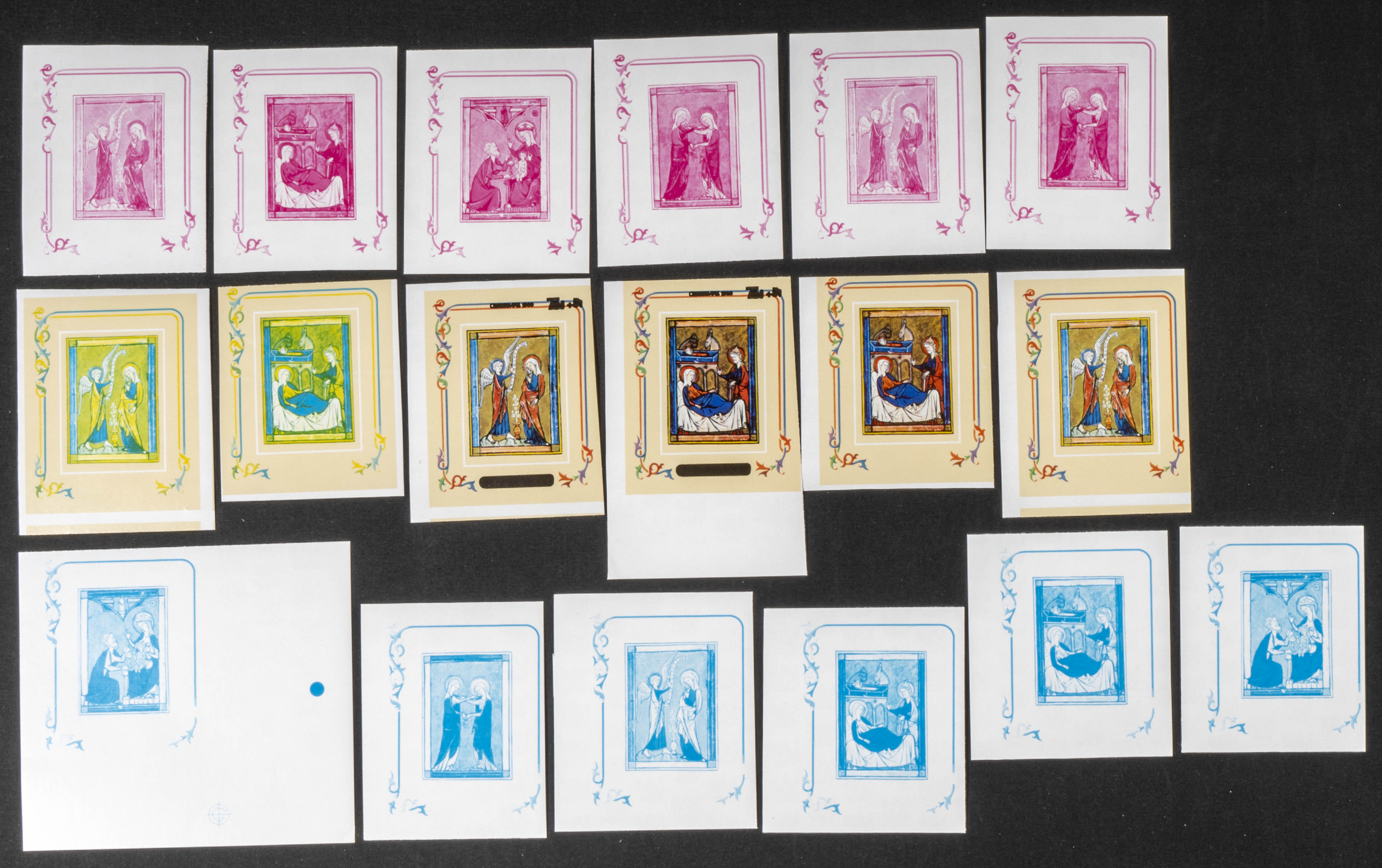 ★★Yvert B107/10. 1980. Christmas. Group of progressive plate proofs of the set. TO EXAM.