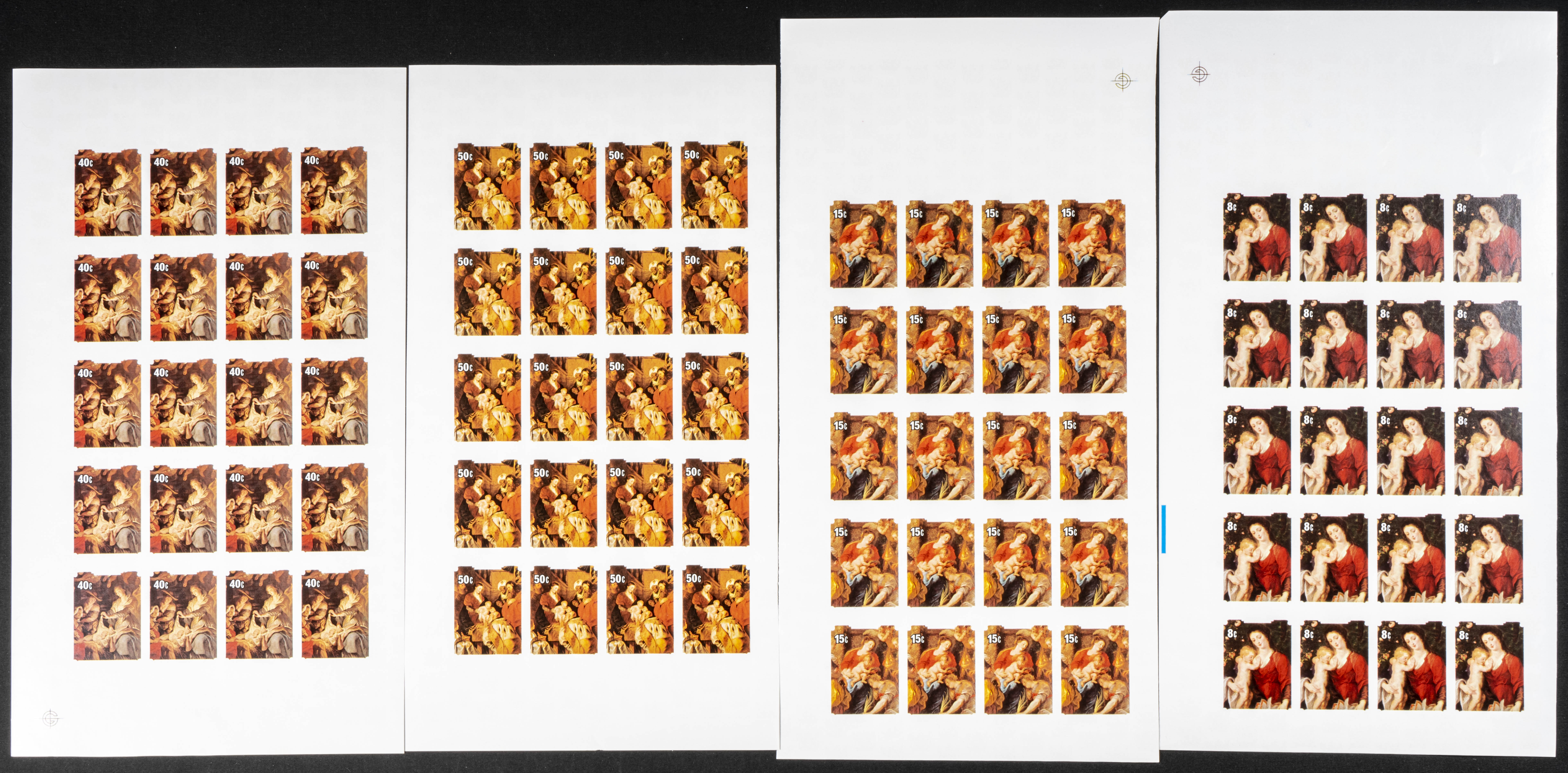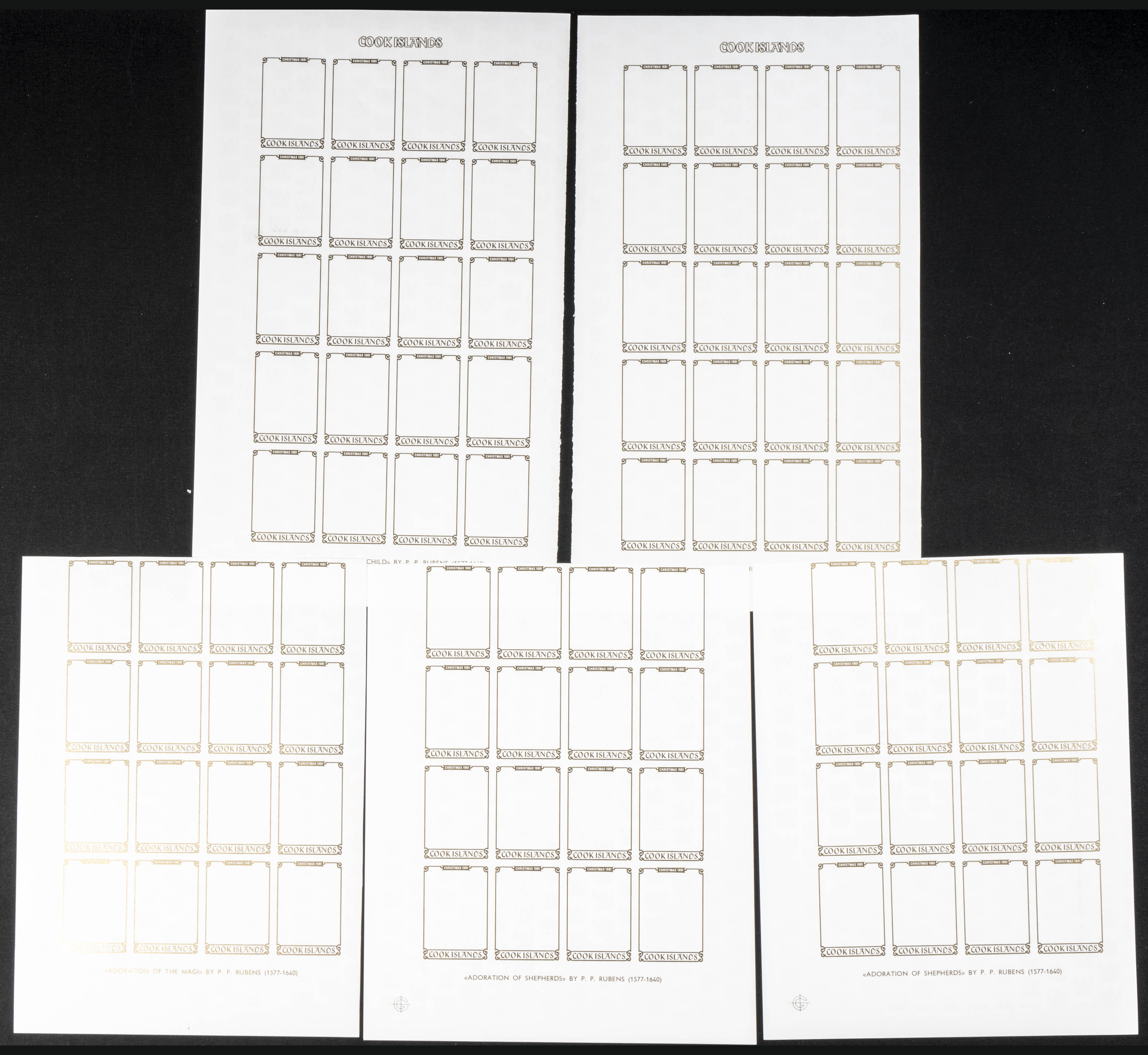 ★★Yvert 661/64. 1981. Christmas, Rubens. Group of progressive plate proofs of the set. TO EXAM.